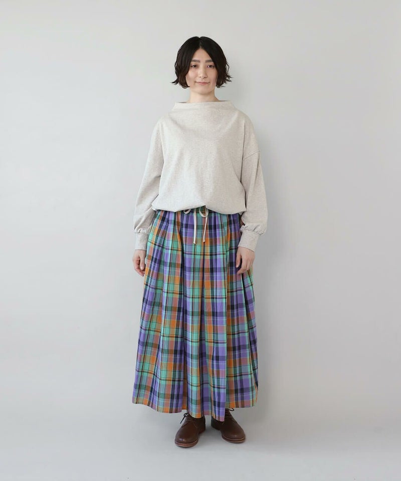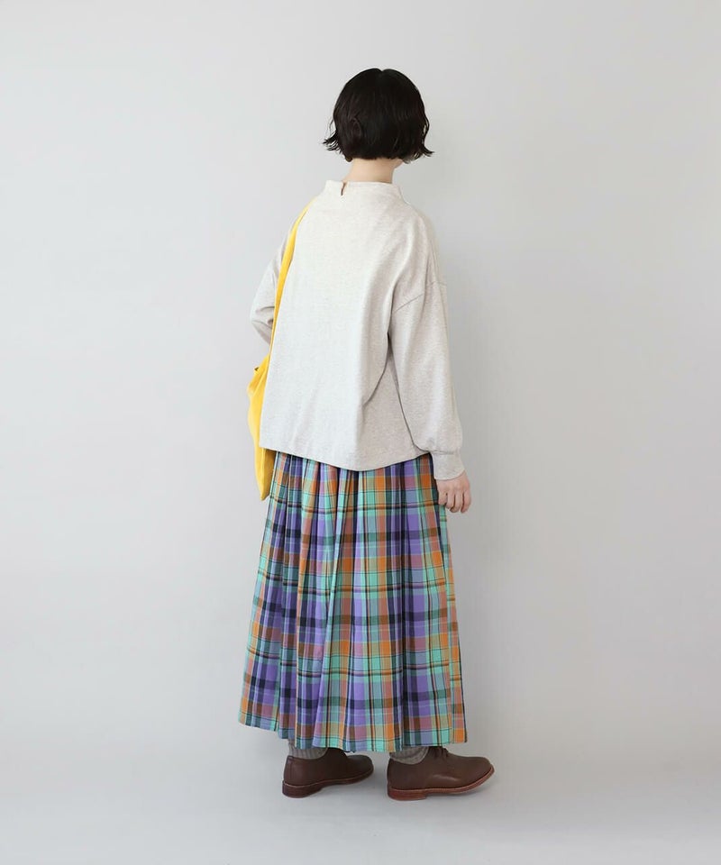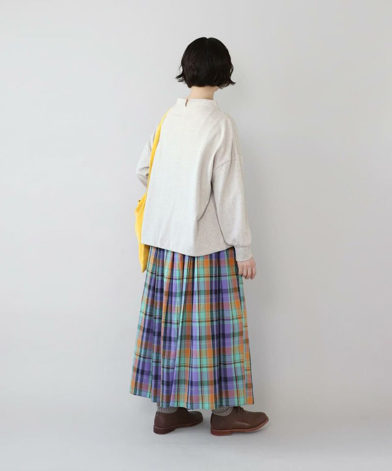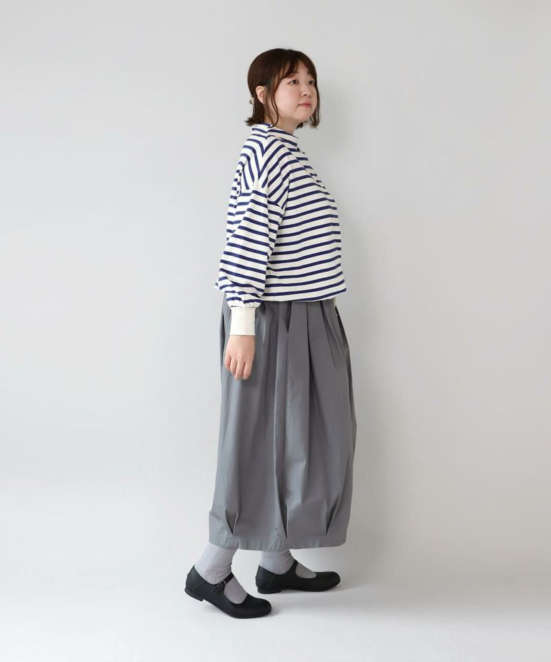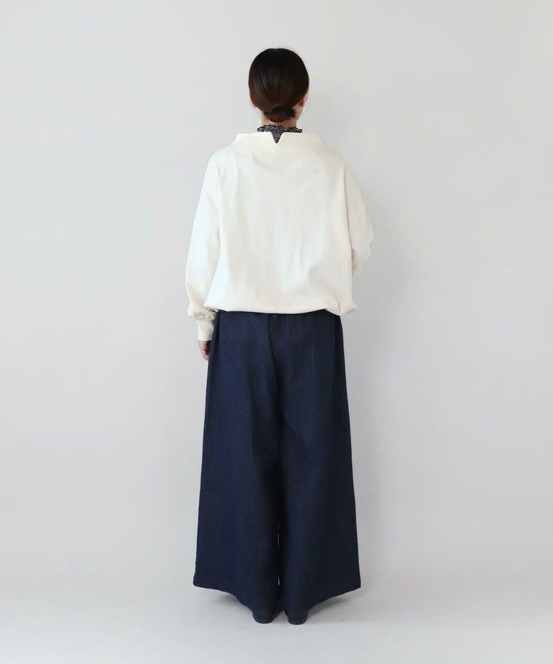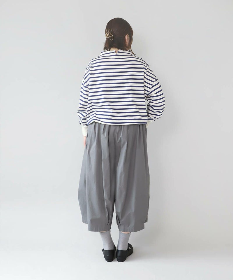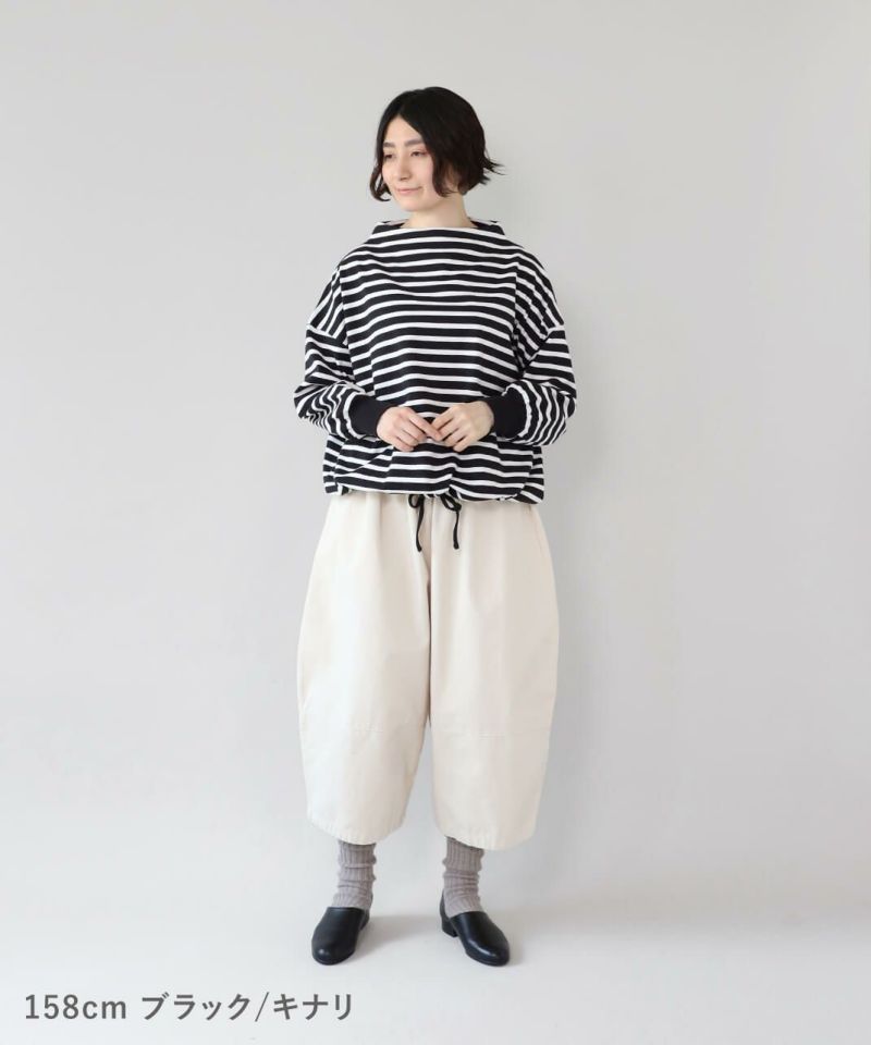 しっかりとした厚みで柔らかな肌触りのコットンを使用したプルオーバーです。 裾にぐるりと紐が入っているので、自分好みのバルーンシルエットに出来る楽しい1着です。ボトルネックには後ろにスリットが入ったおしゃれなデザイン。袖先はリブ切替えのため、まくしあげることも可能です。ワイドな身頃とドロップショルダーでゆったりとした着心地。そのままの着用はもちろんですが、ワンピースとの重ね着にもおすすめです。