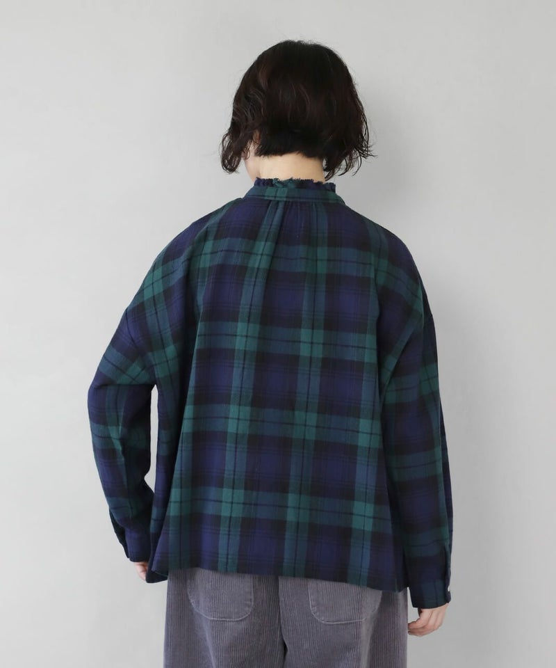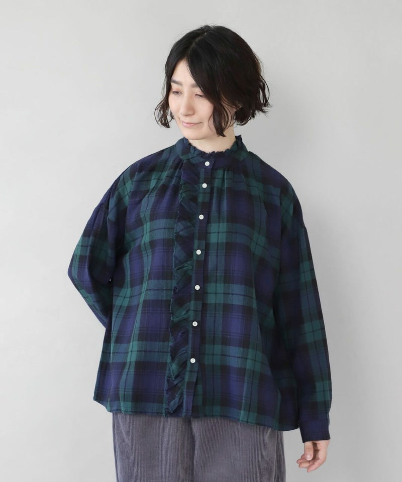 軽くて柔らかい起毛したコットンリネン素材を使用したチェックフリルブラウスです。