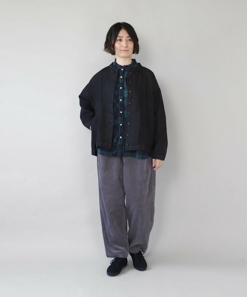 起毛したコットンリネンの生地は自然な風合いと優しい肌ざわりで秋冬の装いに温かみをプラスしてくれます。