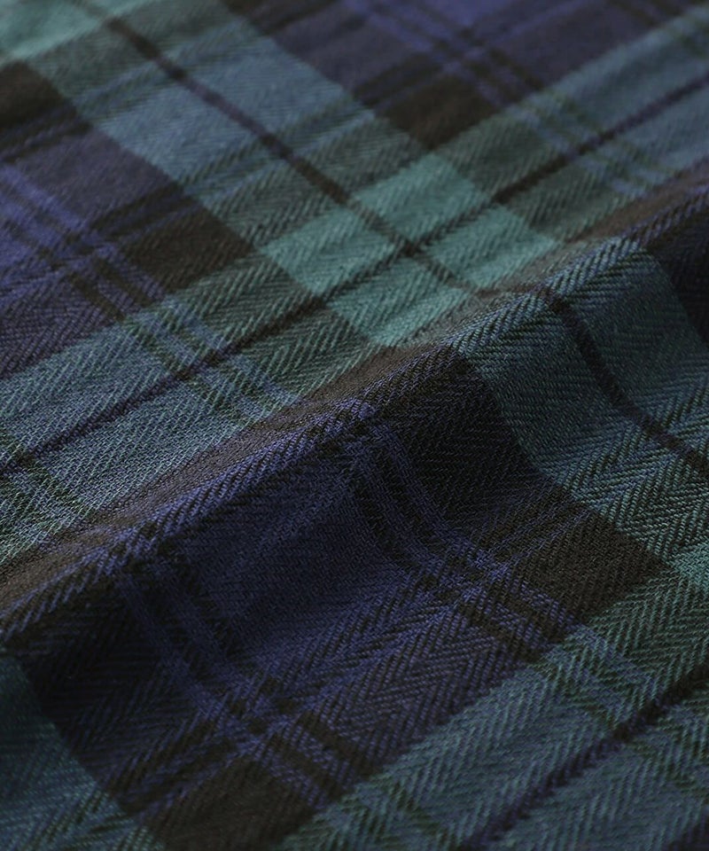 目を惹く大きめのチェック柄がコーディネートのアクセントになります。