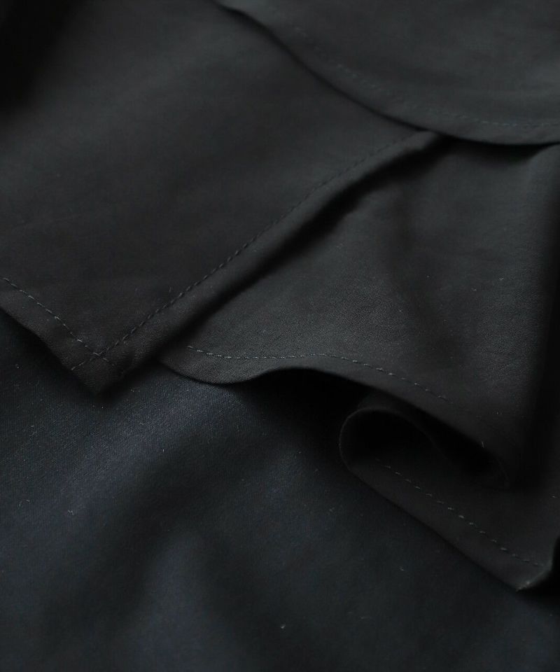 毛羽が少ないコンパクト糸を使用し、目の詰まったさらさらとなめらかなコットン生地を使用したフリルカットソーです。 胸元の大胆な2段のフリルが目を惹き、コーディネートのアクセントになります。カーディガンやジャケットスタイルにおすすめです。前後着用の2WAY仕様なので、フリルを背中に一味違ったスタイルを楽しめます。