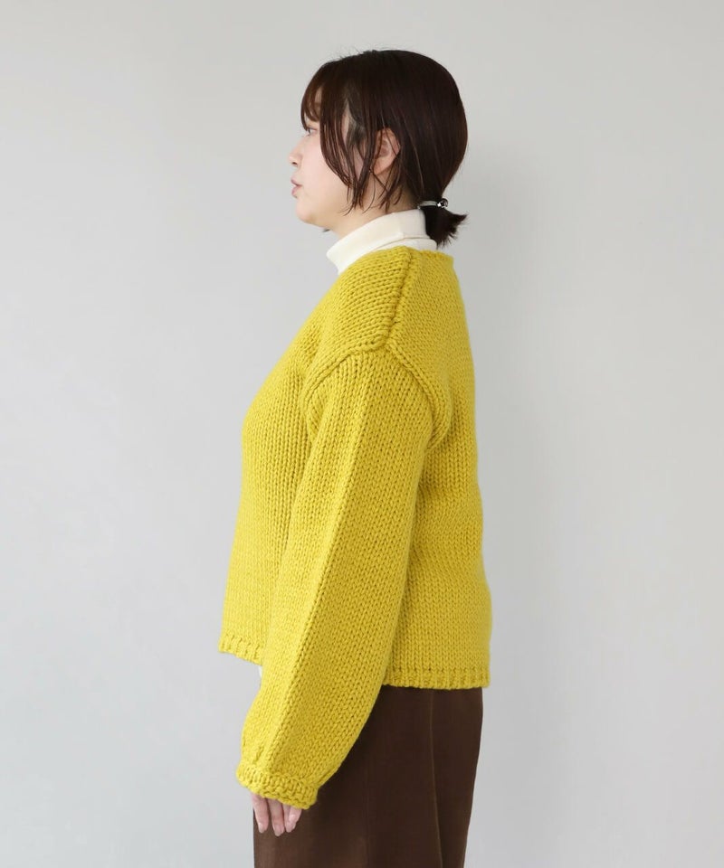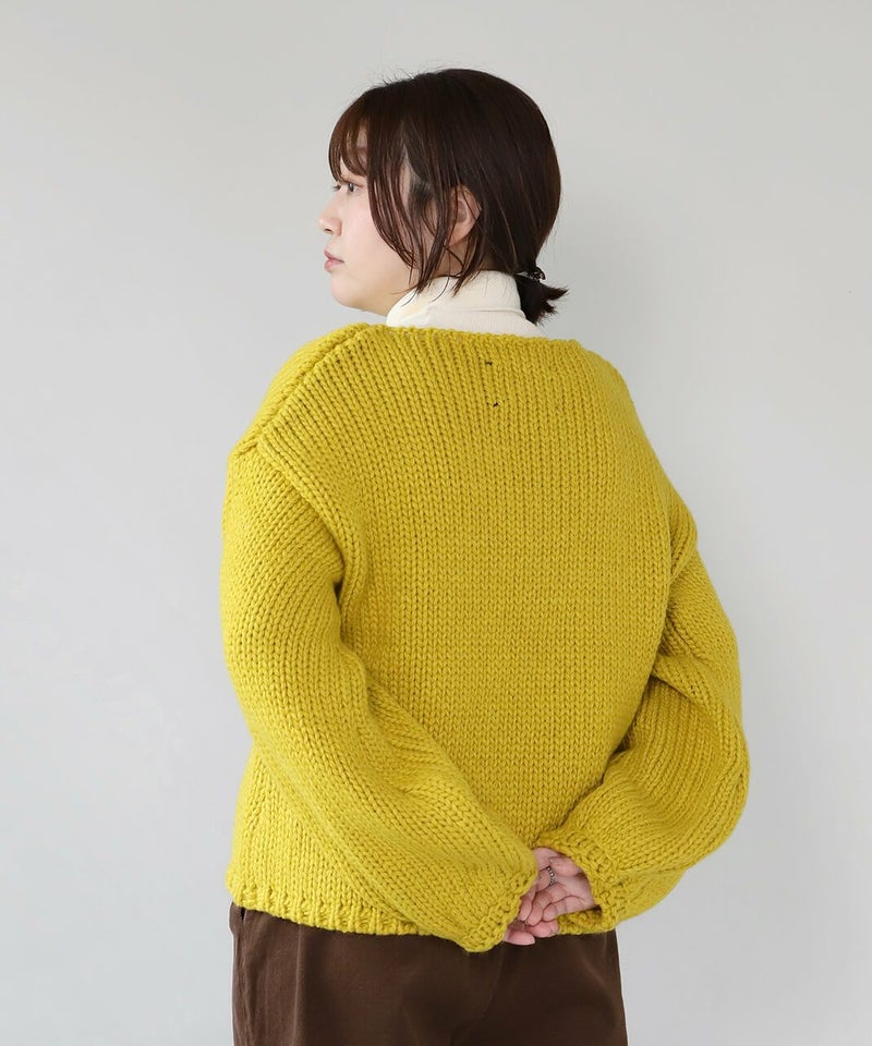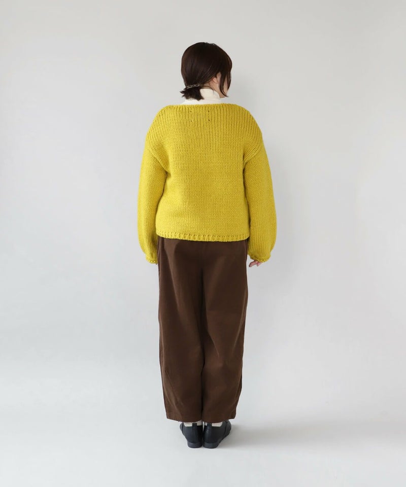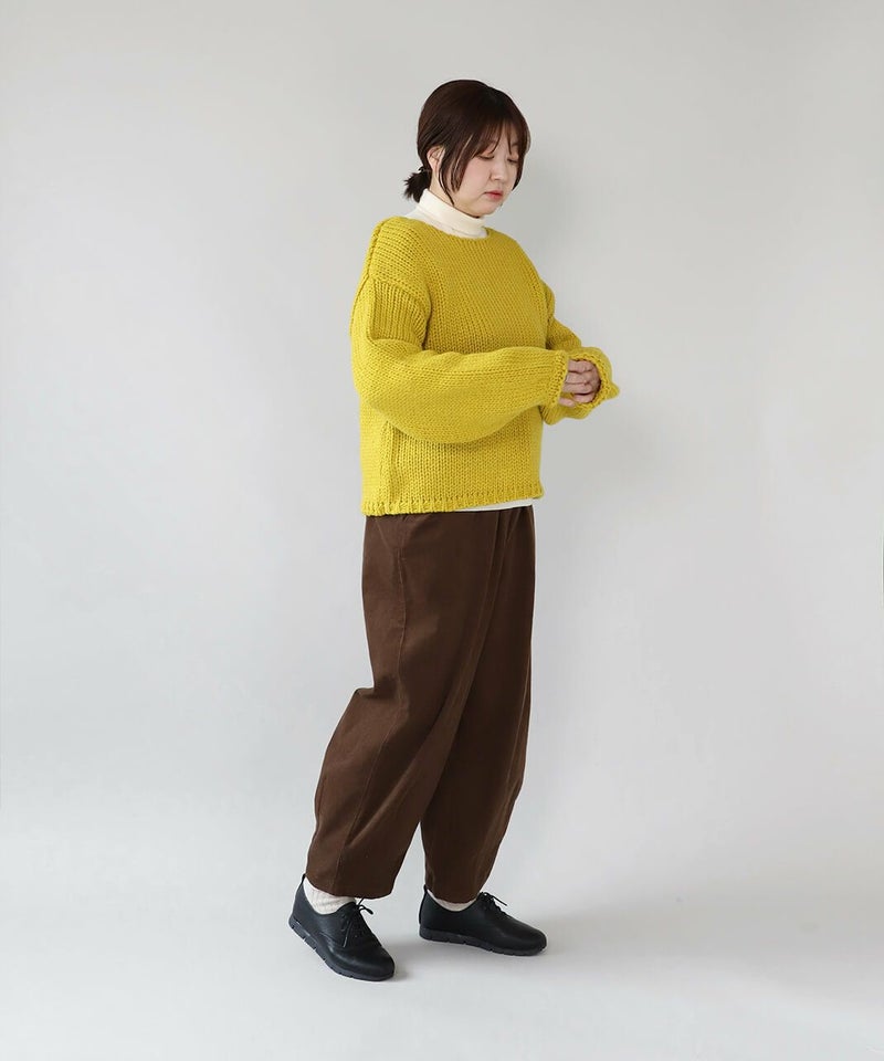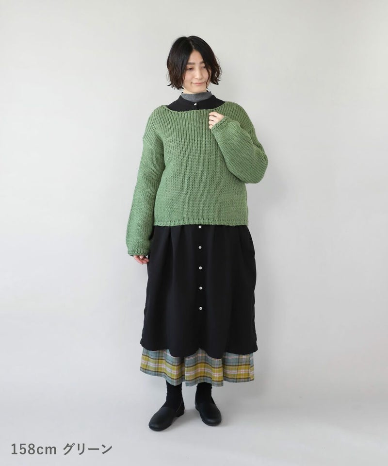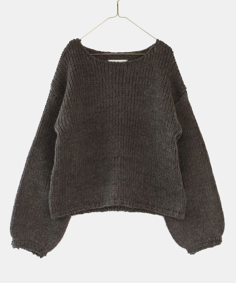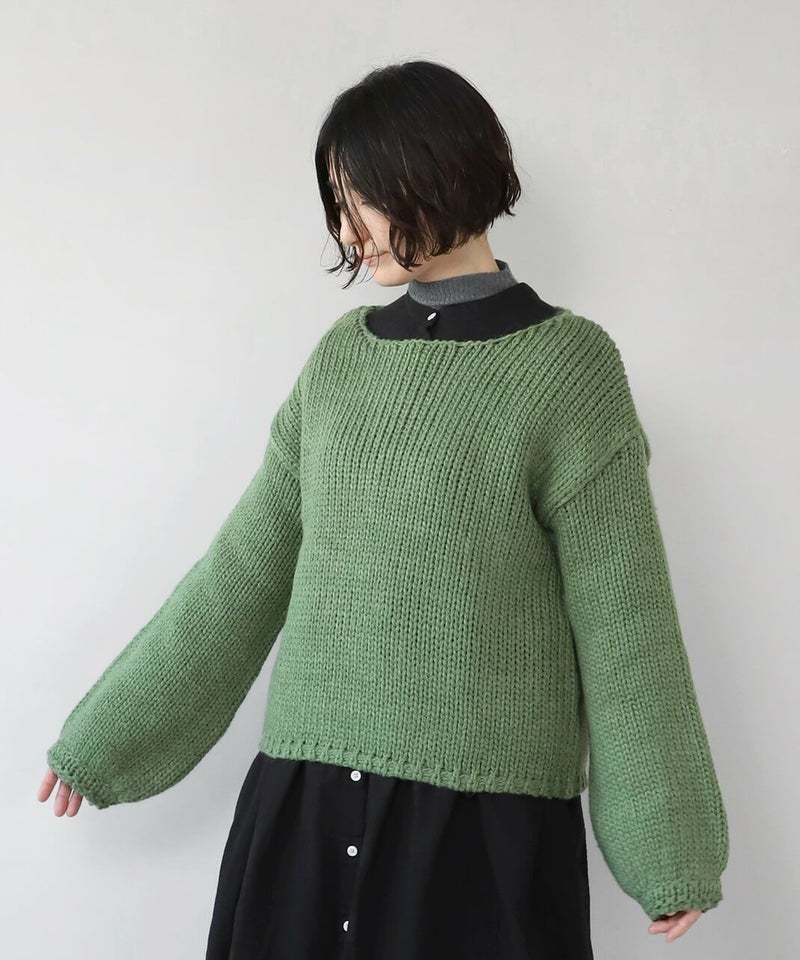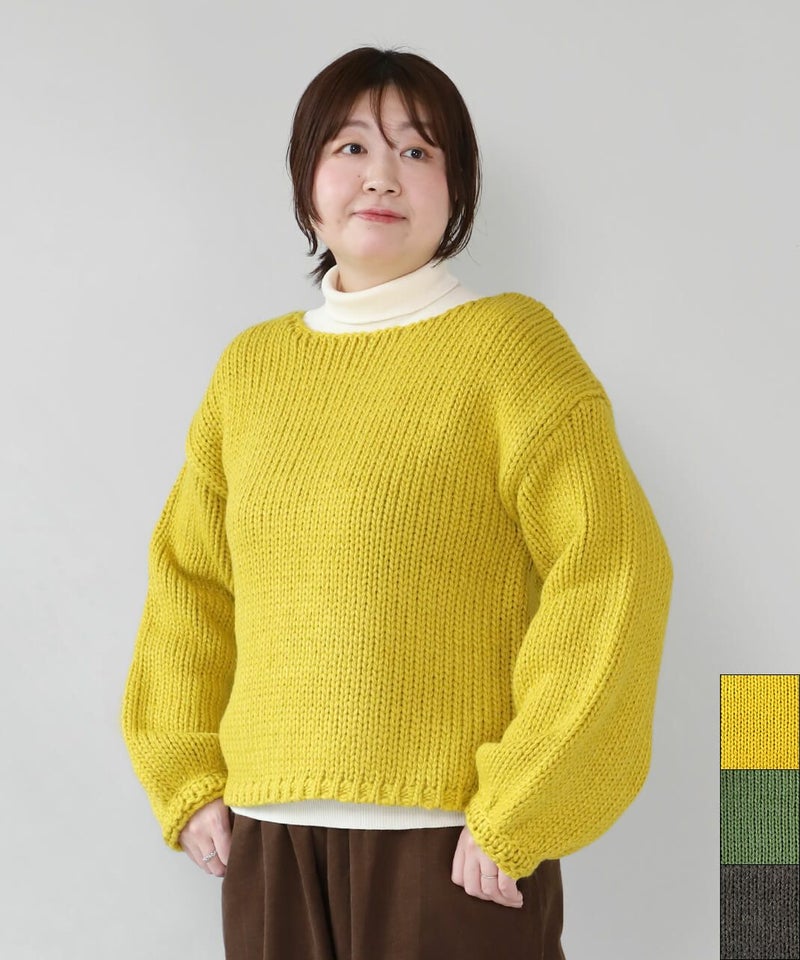 保温性のあるふんわりとした質感のアクリルウールバルキー素材を使用したローゲージニットプルオーバーです。 ハンドメイドをイメージしたざっくり感がかわいいローゲージニット。首の後ろのタグステッチがさりげないアクセントになっています。 すっきりと見える広めのボートネックは、タートルカットソーやブラウス、ワンピースなど幅広いインナーとのコーディネートが楽しめます。 冬の空気に彩りをプラスしてくれる発色の良い色展開もポイントです。