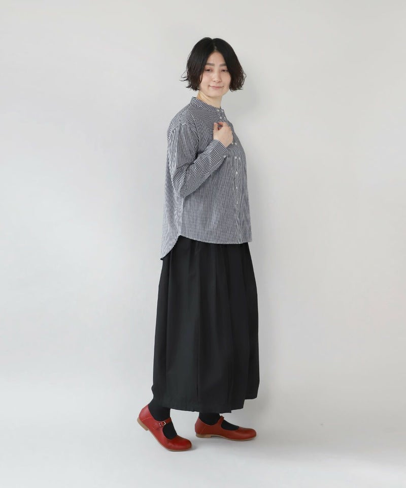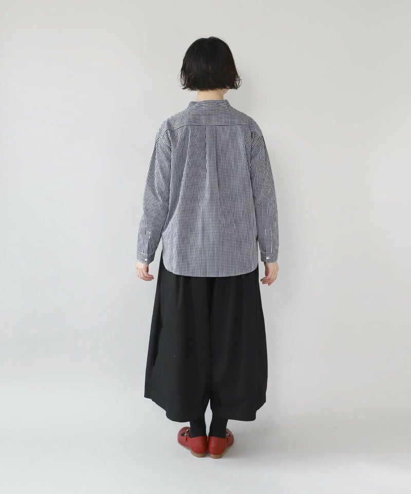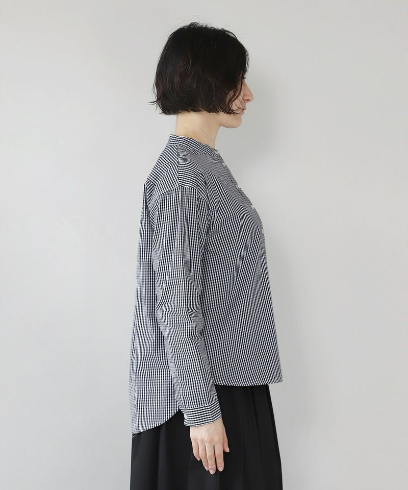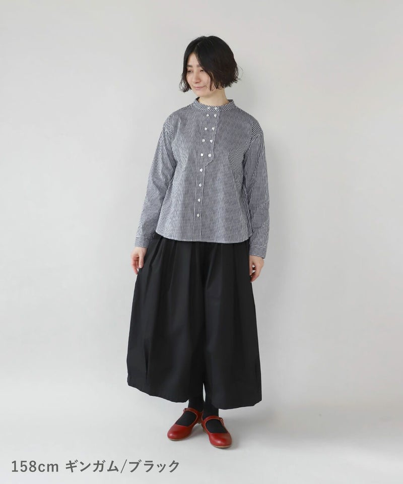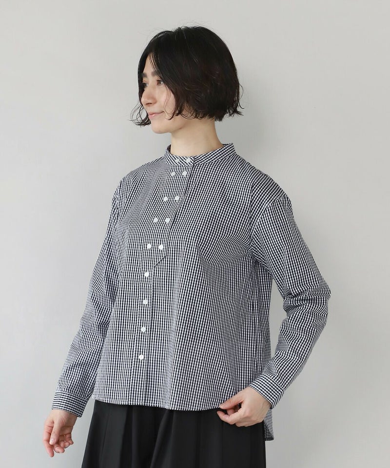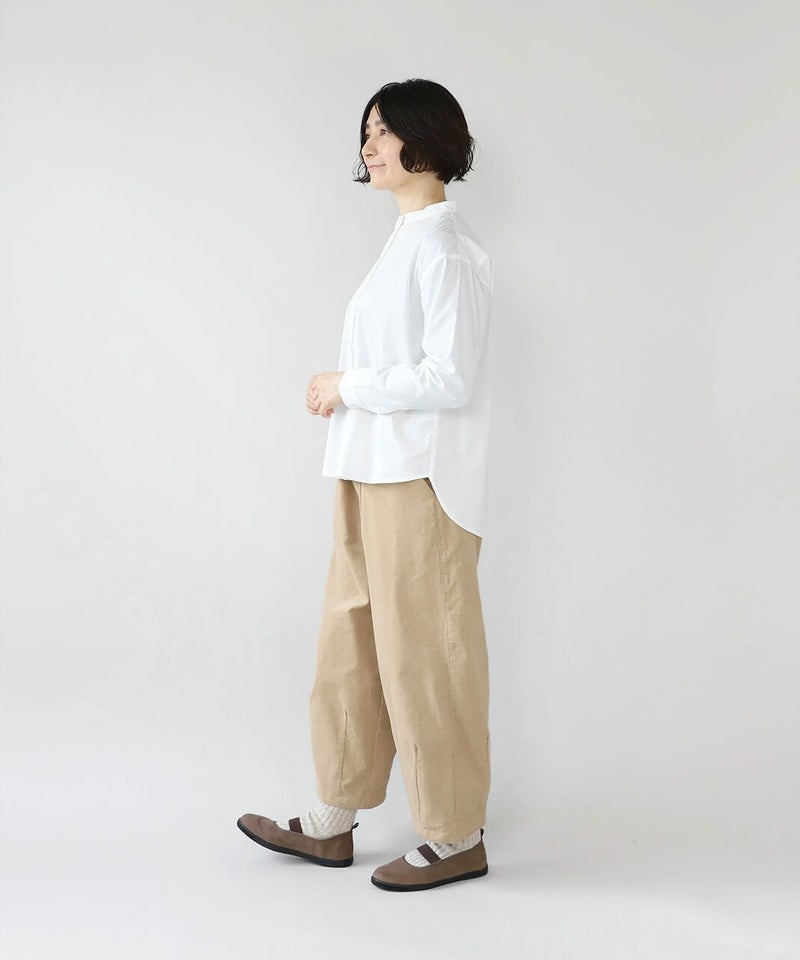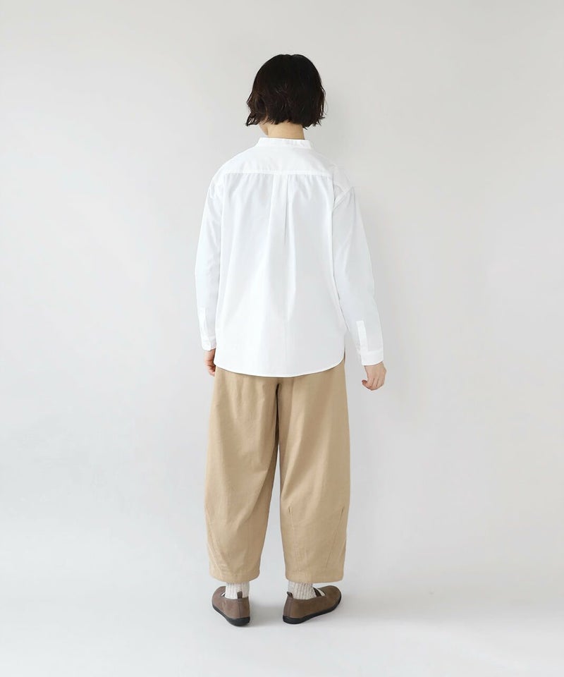 すっきりとしたバンドカラーが清潔感のある雰囲気は、きれいめなスタイルにもおすすめです。