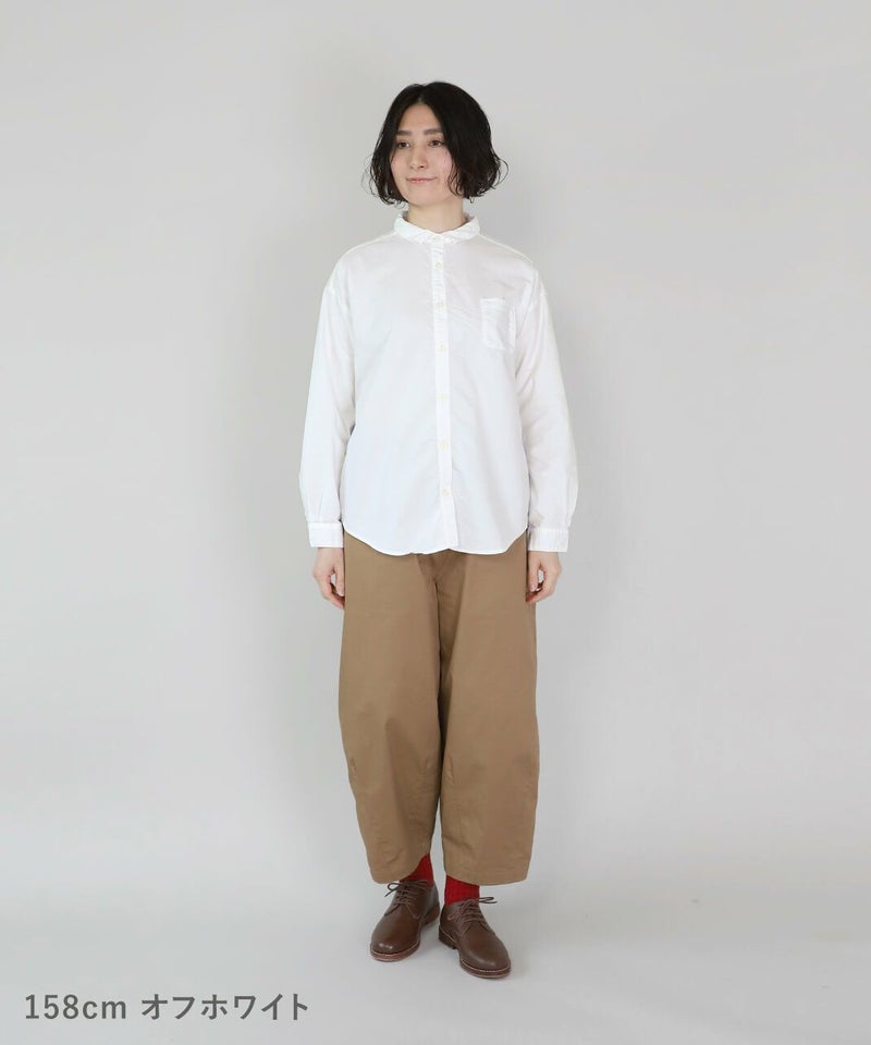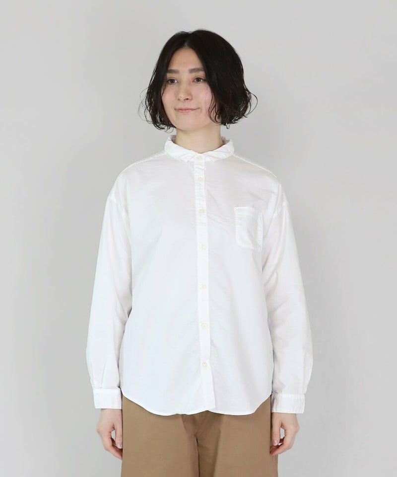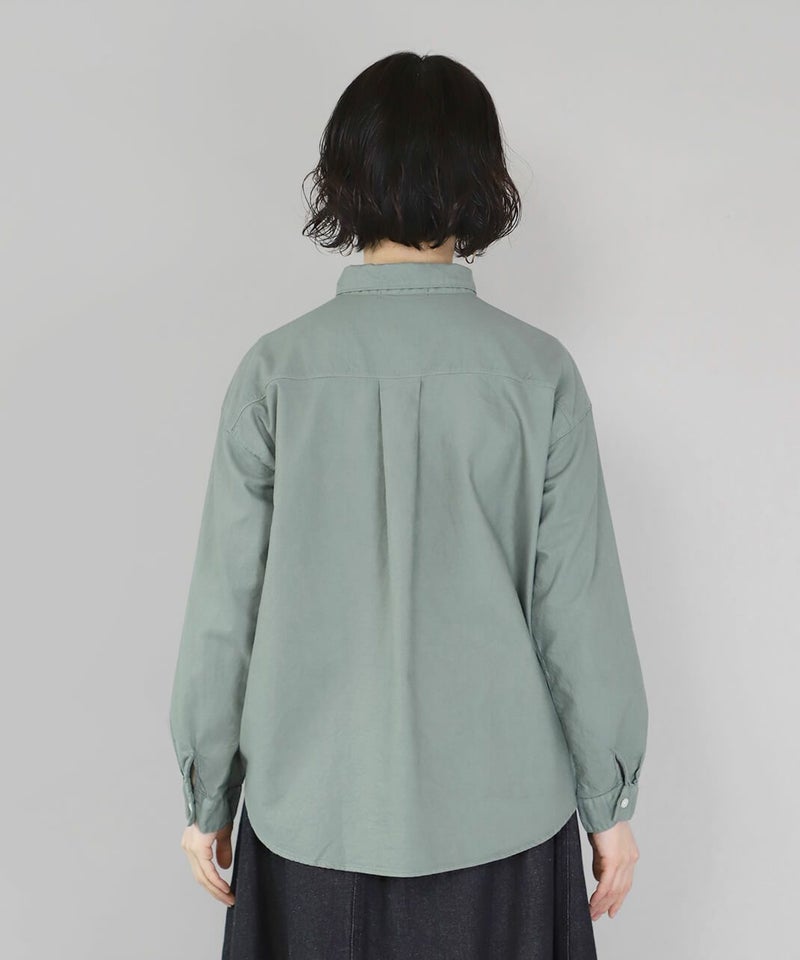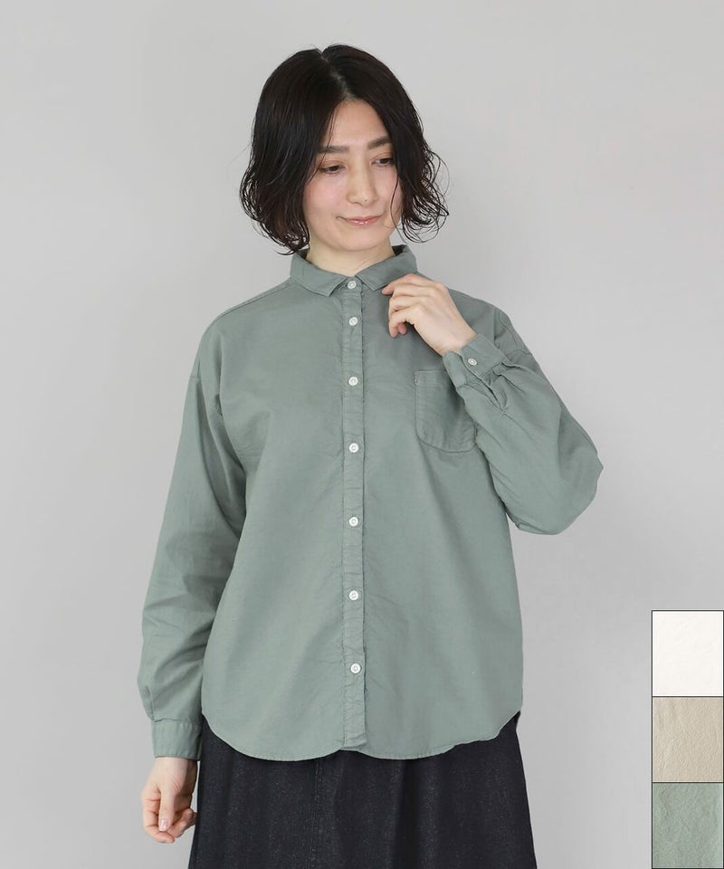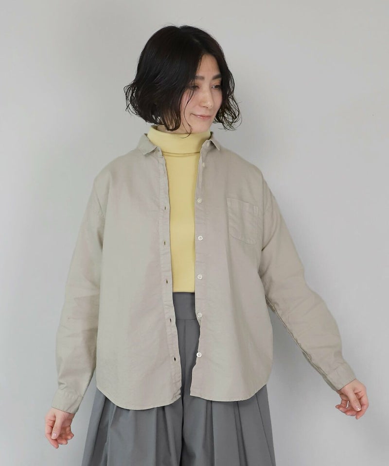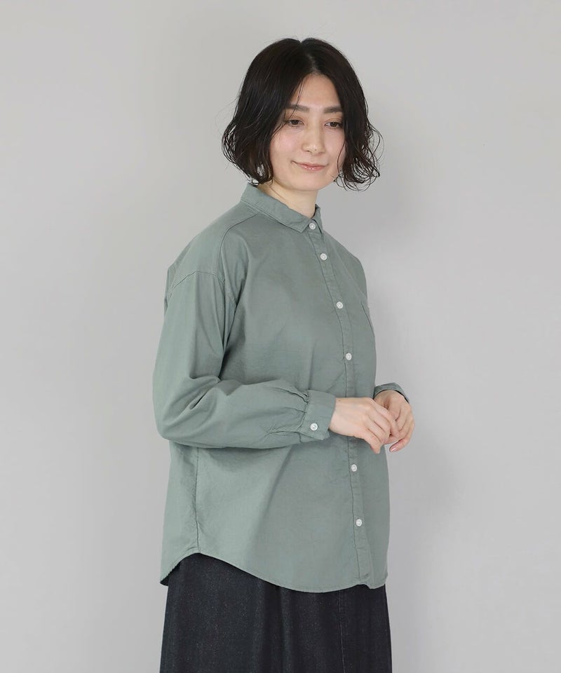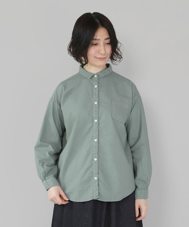 製品染めをした丈夫で柔らかなオックス素材のシャツです。コンパクトな襟に普段よりもワイドな身頃で作られた1着。1枚での着用はもちろん、重ね着もしやすく軽く羽織れるシャツとしても活躍します。毎日着たくなるような定番デザインです。