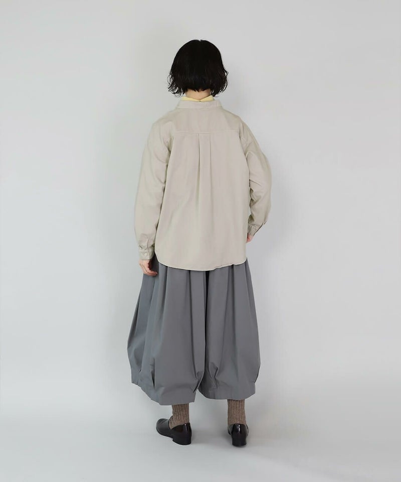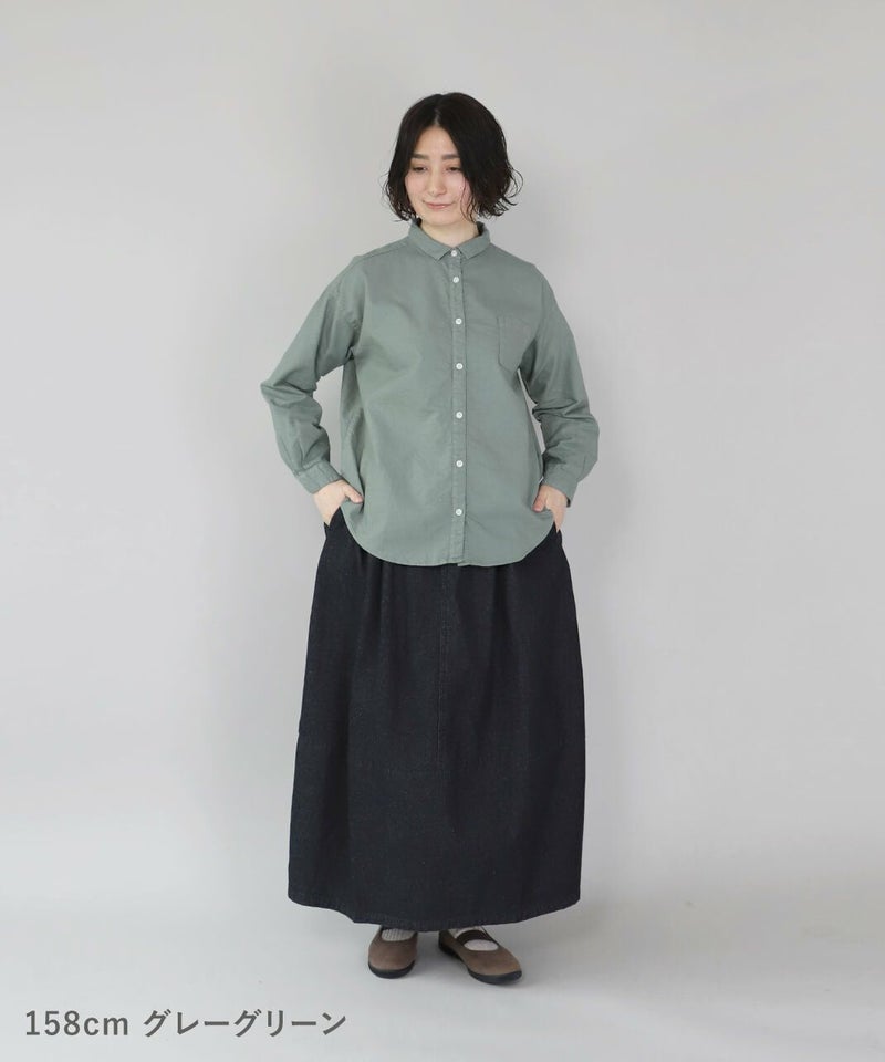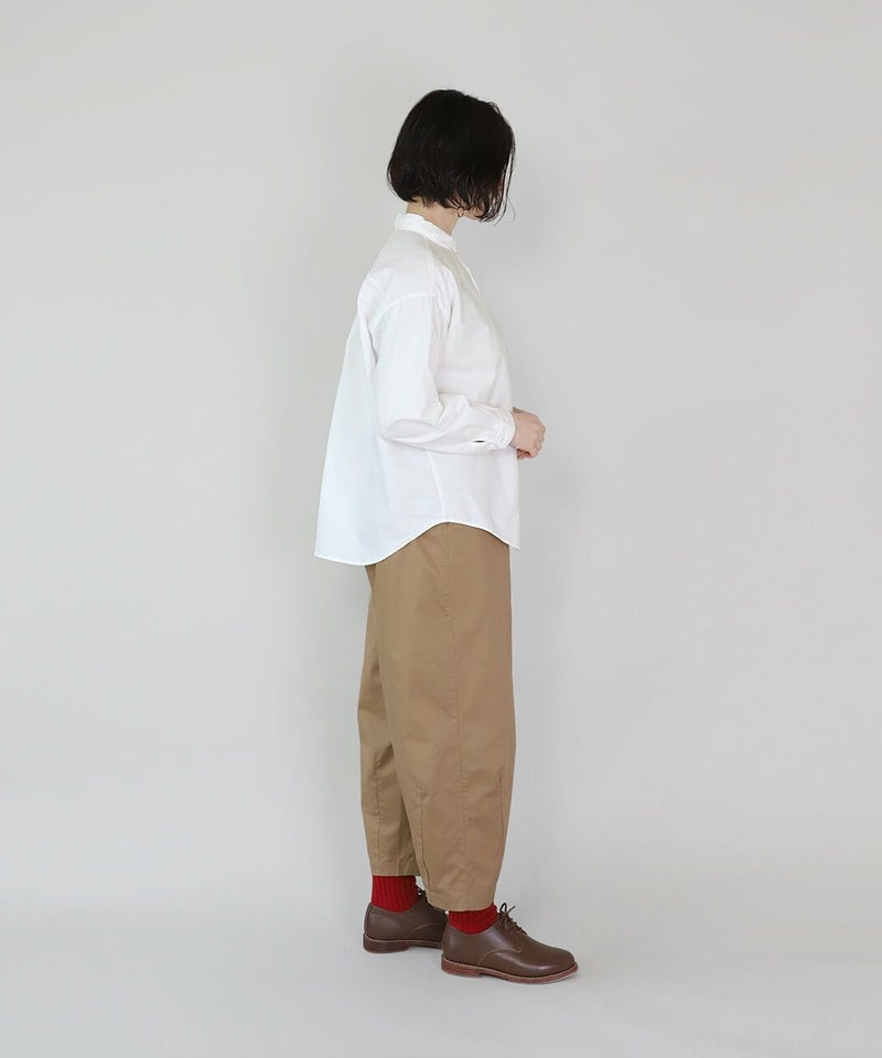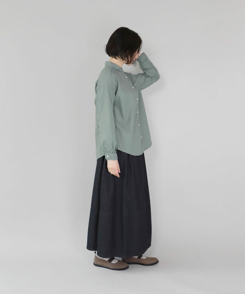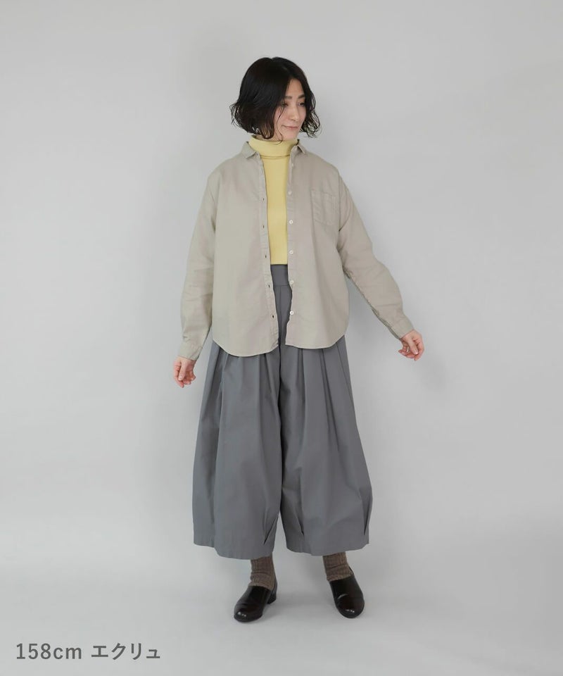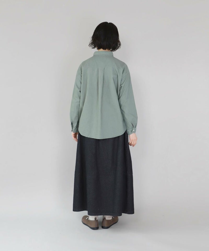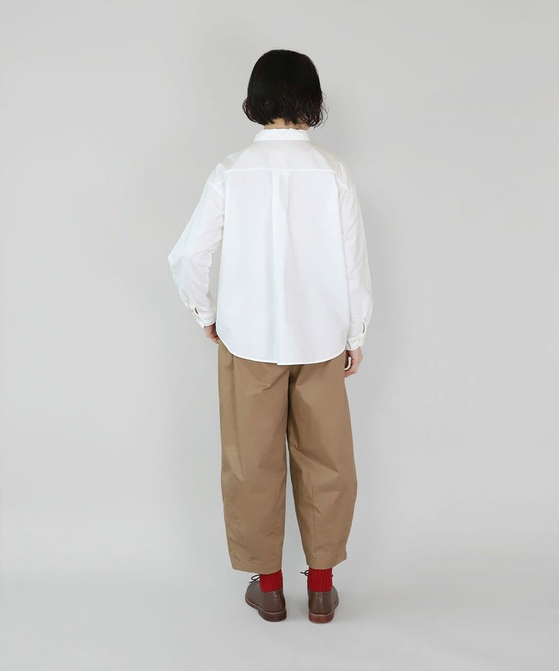 製品染めをした丈夫で柔らかなオックス素材のシャツです。コンパクトな襟に普段よりもワイドな身頃で作られた1着。1枚での着用はもちろん、重ね着もしやすく軽く羽織れるシャツとしても活躍します。毎日着たくなるような定番デザインです。
