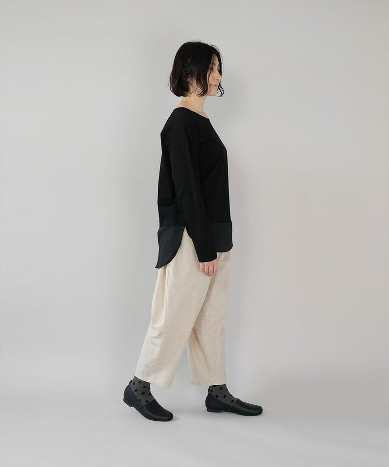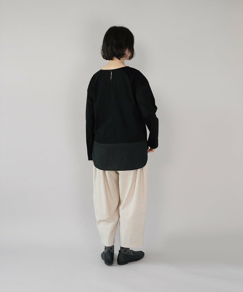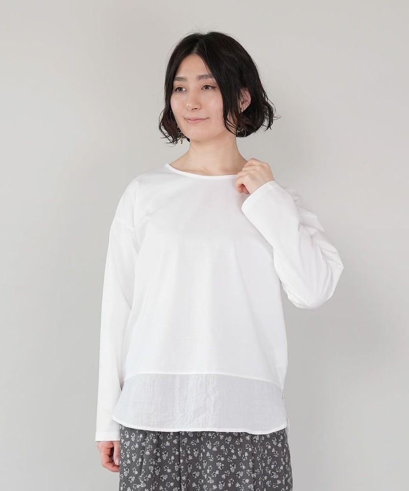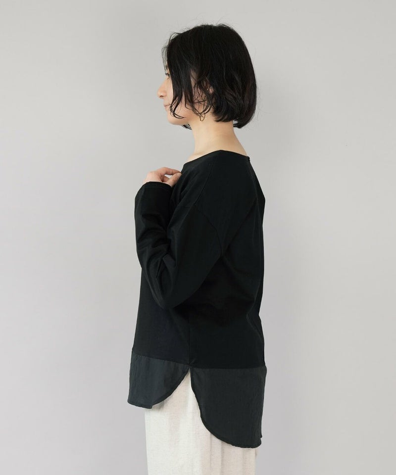 異なる質感の素材を組み合わせたカットソーです。