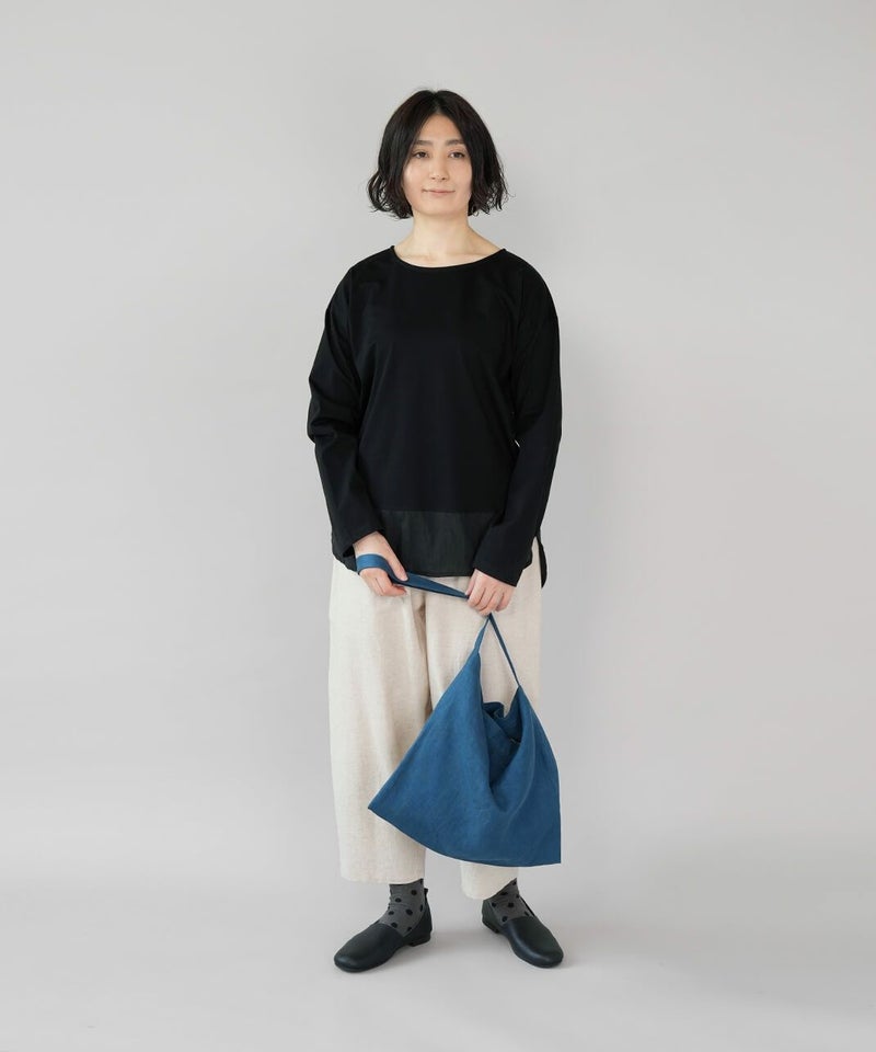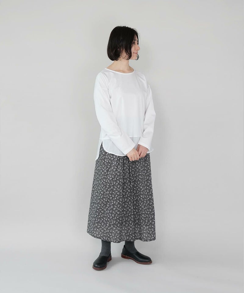 広めのボートネックに程よいゆとりのあるシルエットの1着。