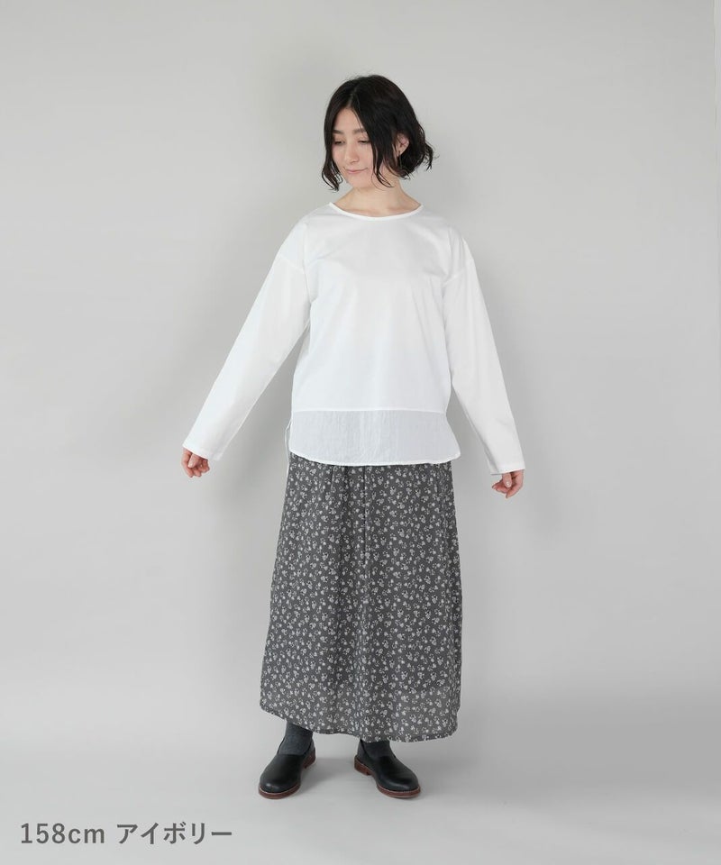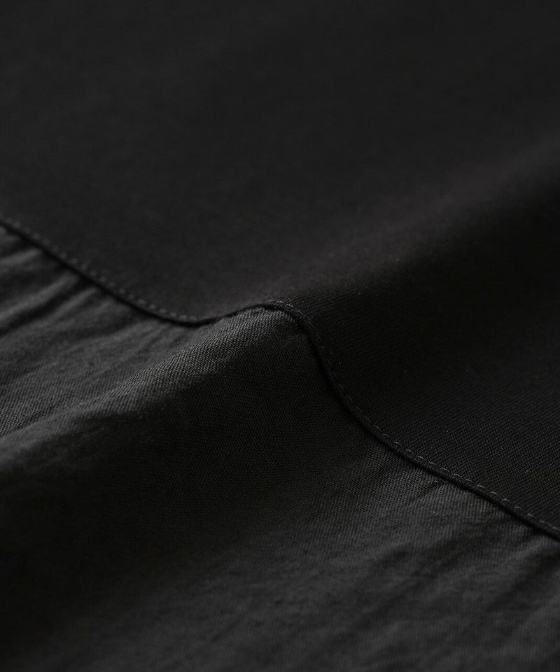ほのかに光沢感のあるさらりとした天竺とシワ加工のポリエステル素材の生地を組み合わせています。