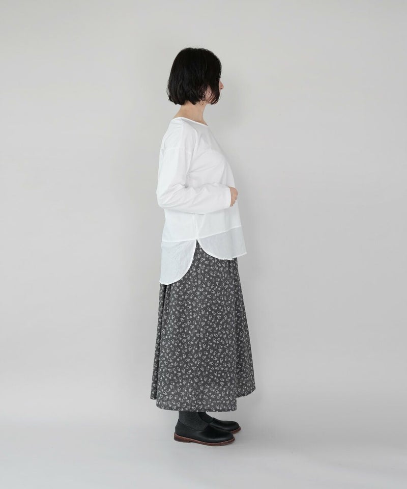 裾部分を異素材で切り替え、重ね着をしているようなデザインに仕立てました。