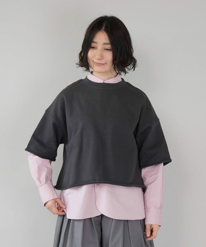 やわらかい裏毛スウェット素材を使用した、5分袖のプルオーバーです。