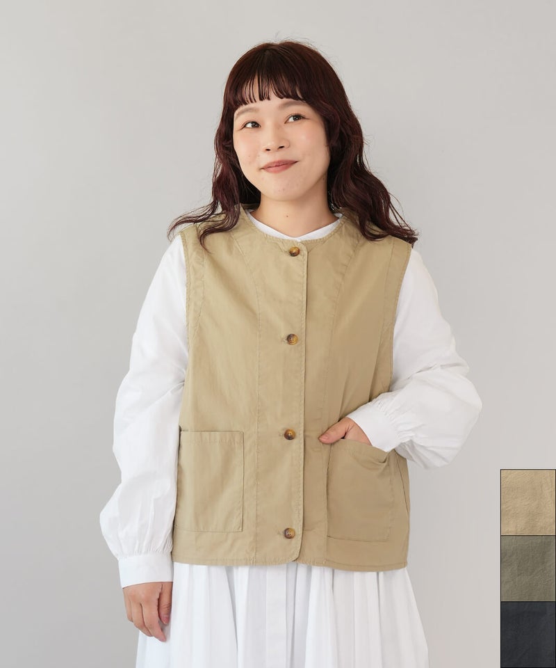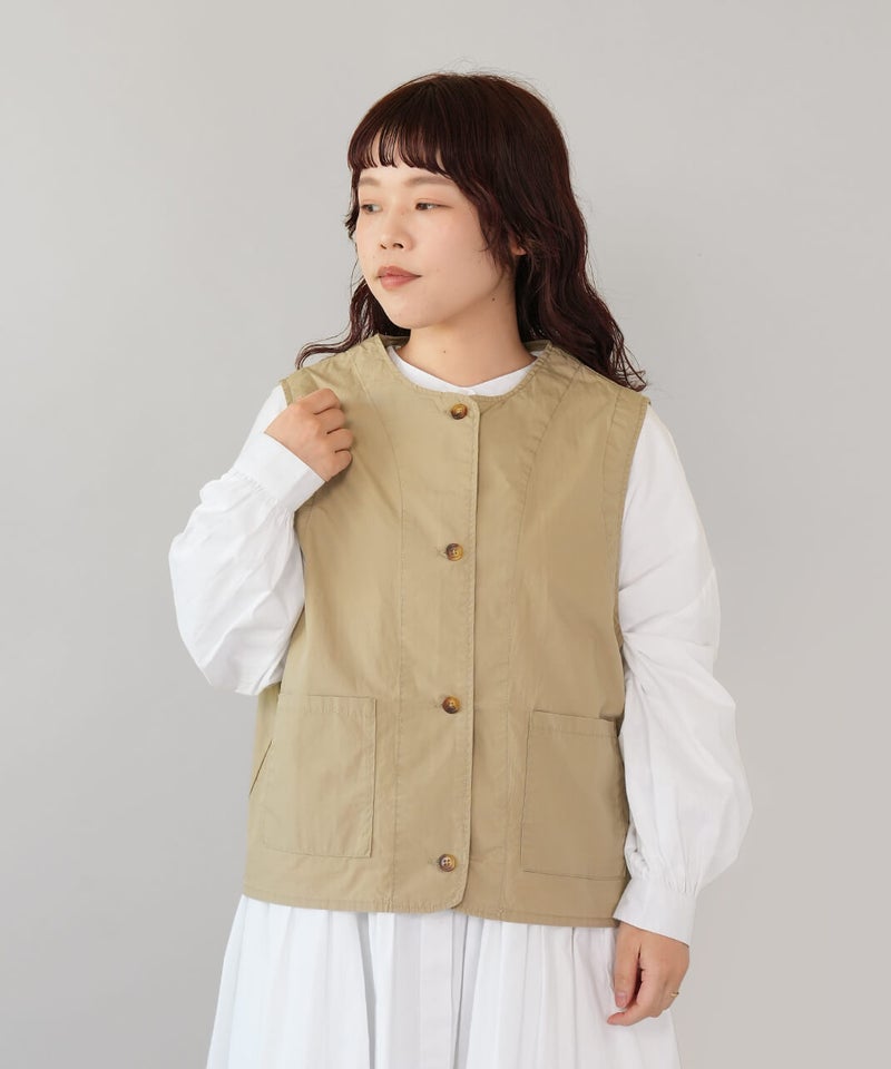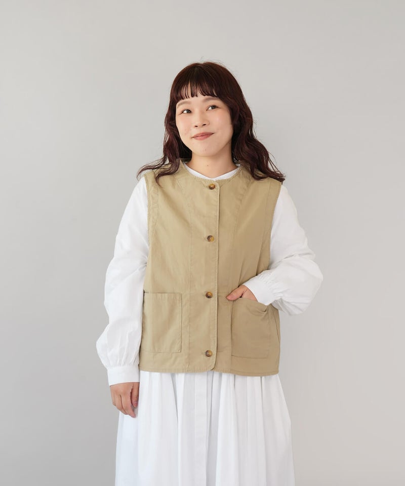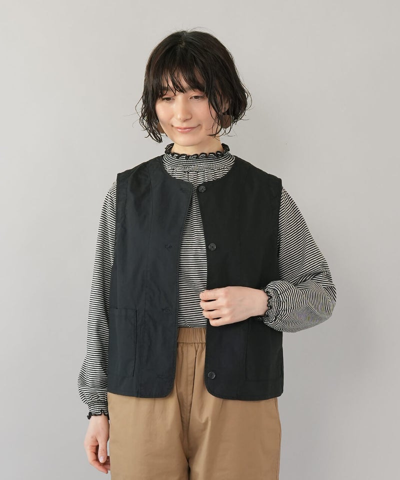 ワークテイストのノーカラーベスト。