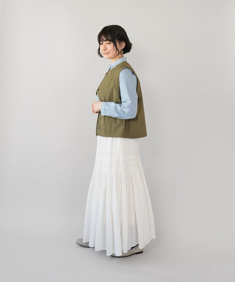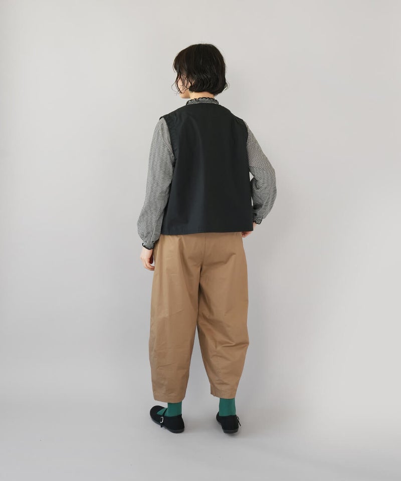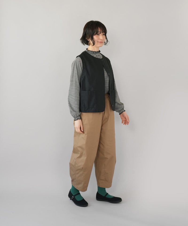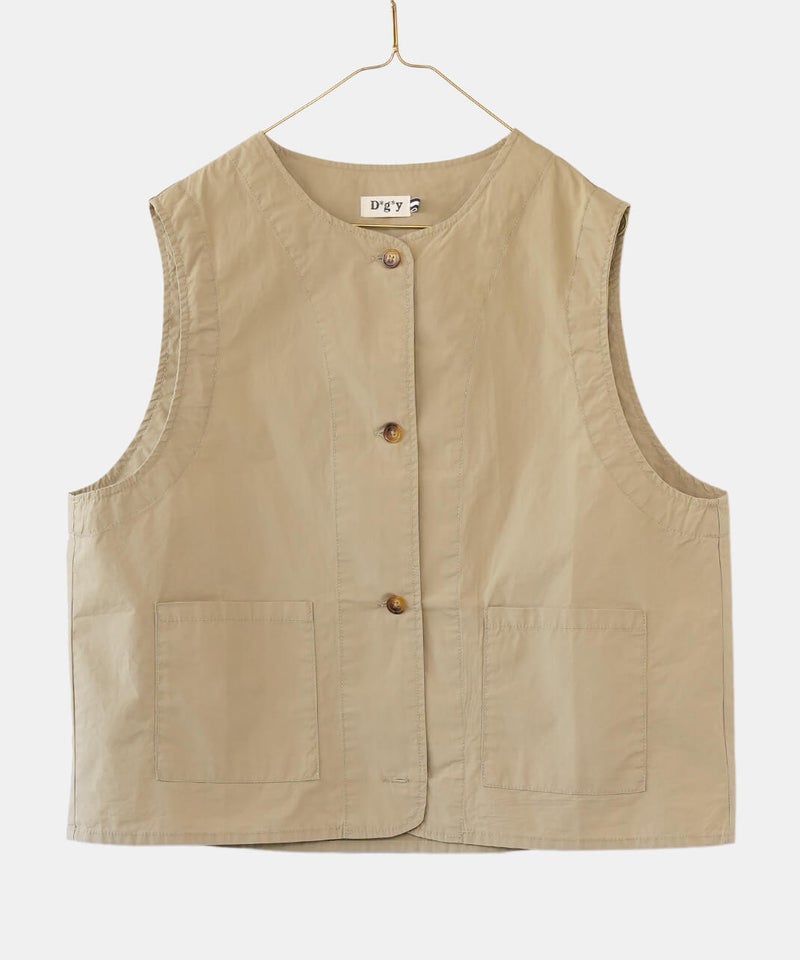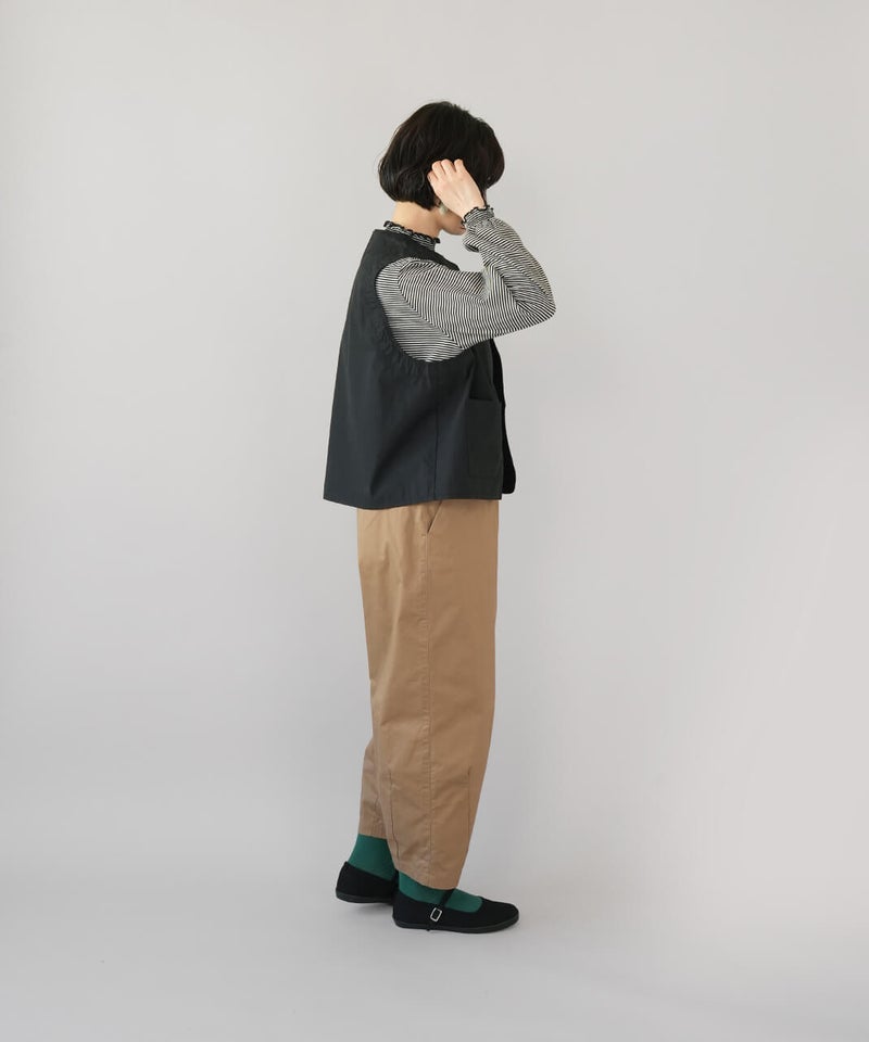 ワークテイストのノーカラーベスト。