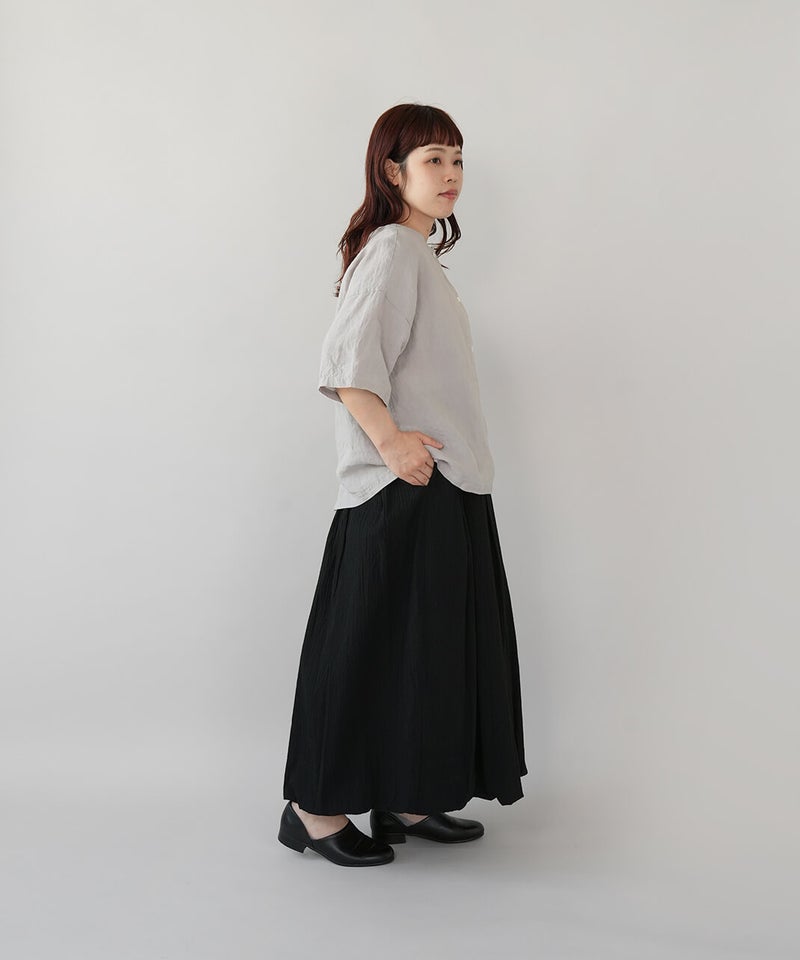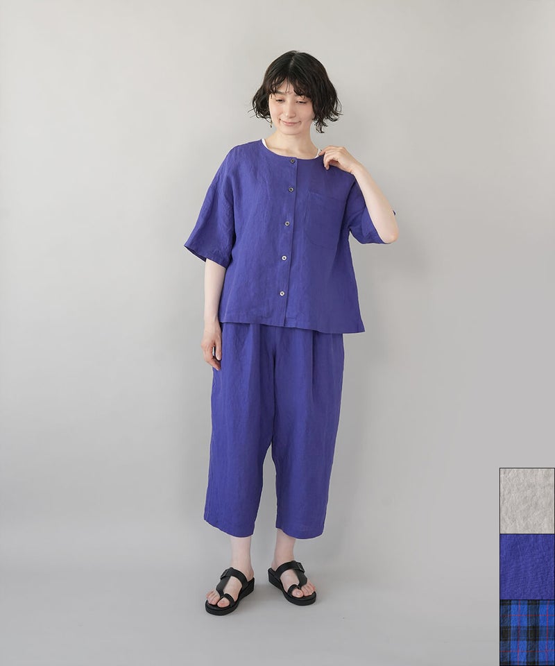 ブラウスとしてはもちろん、Tシャツなどと合わせた羽織りとしても活躍します。同素材のパンツとのセットアップもおすすめです。