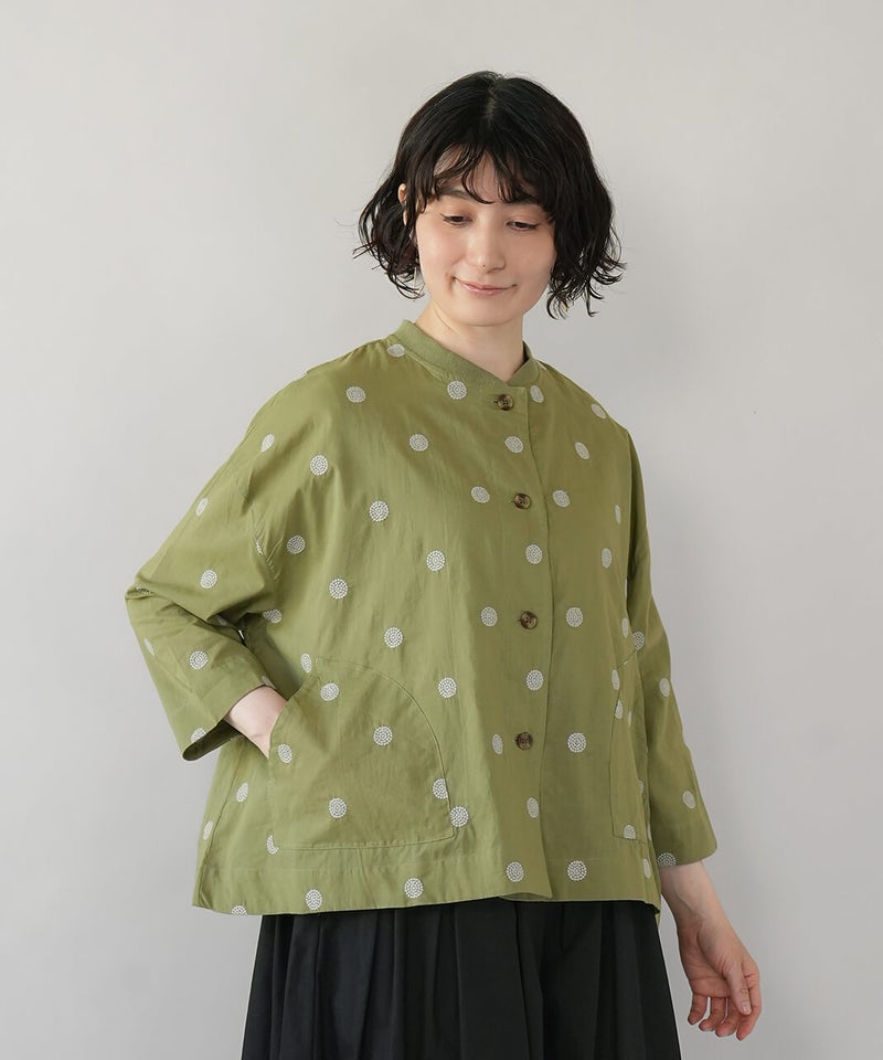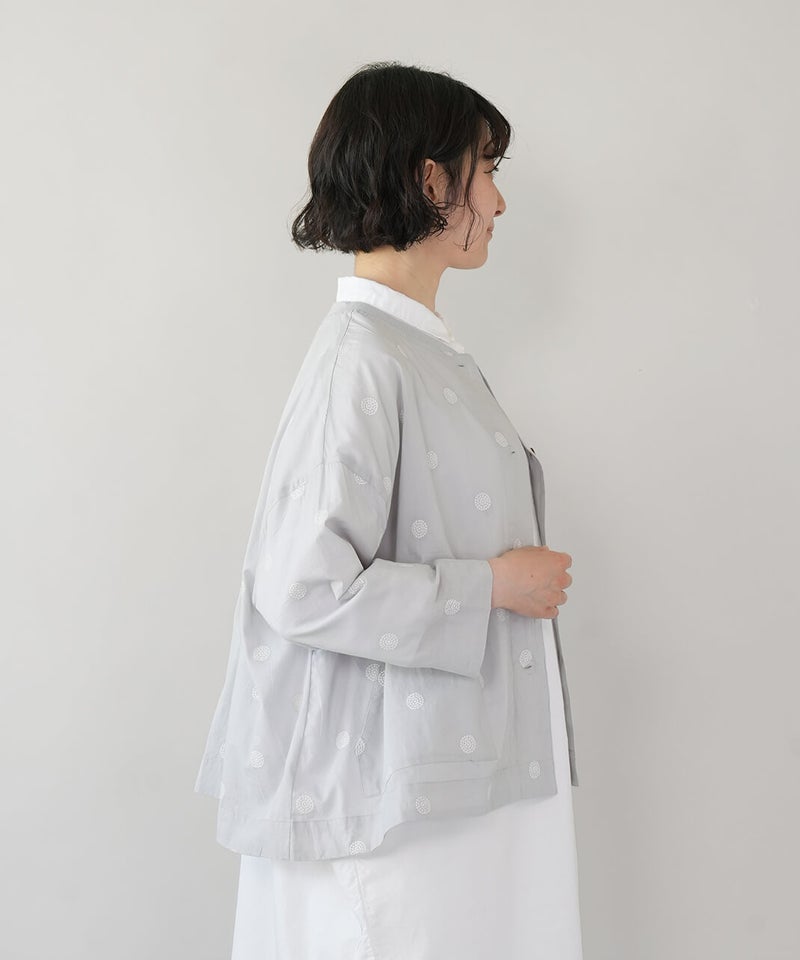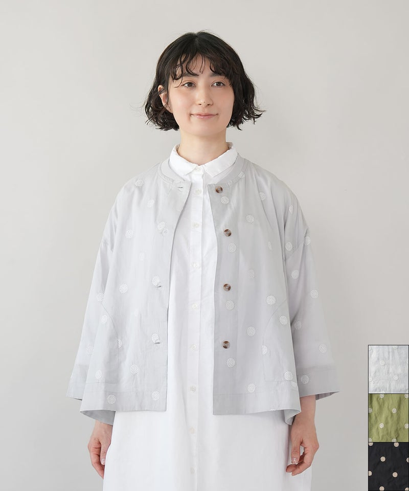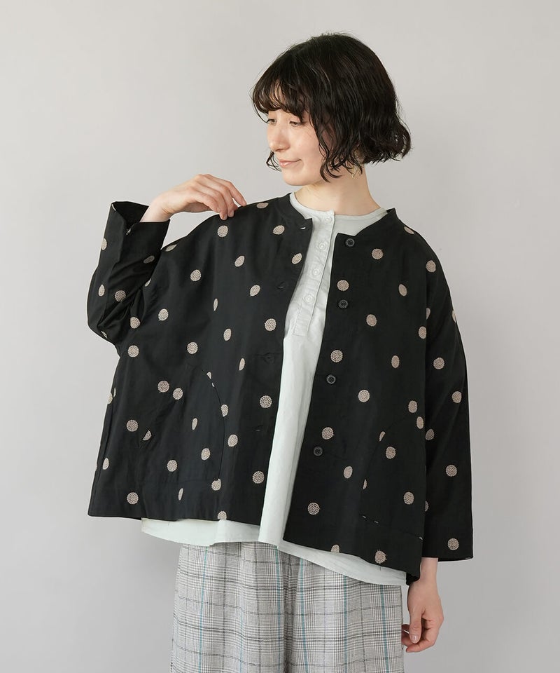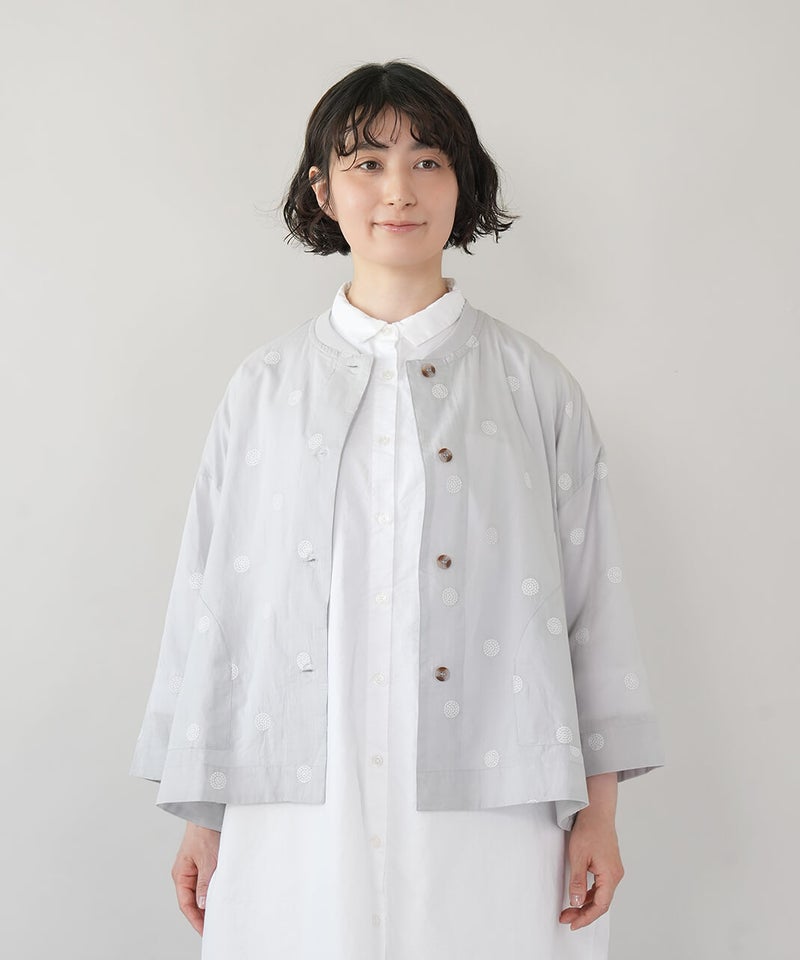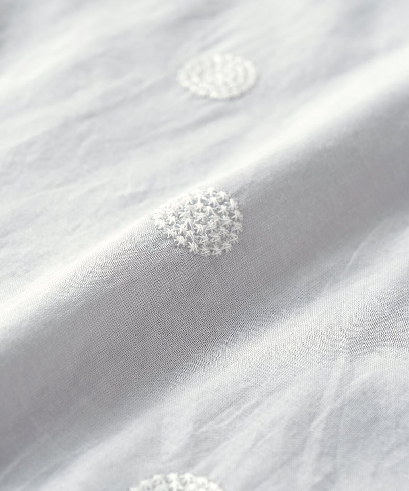 ドット刺繍が、装いにほどよい遊び心をプラス。
