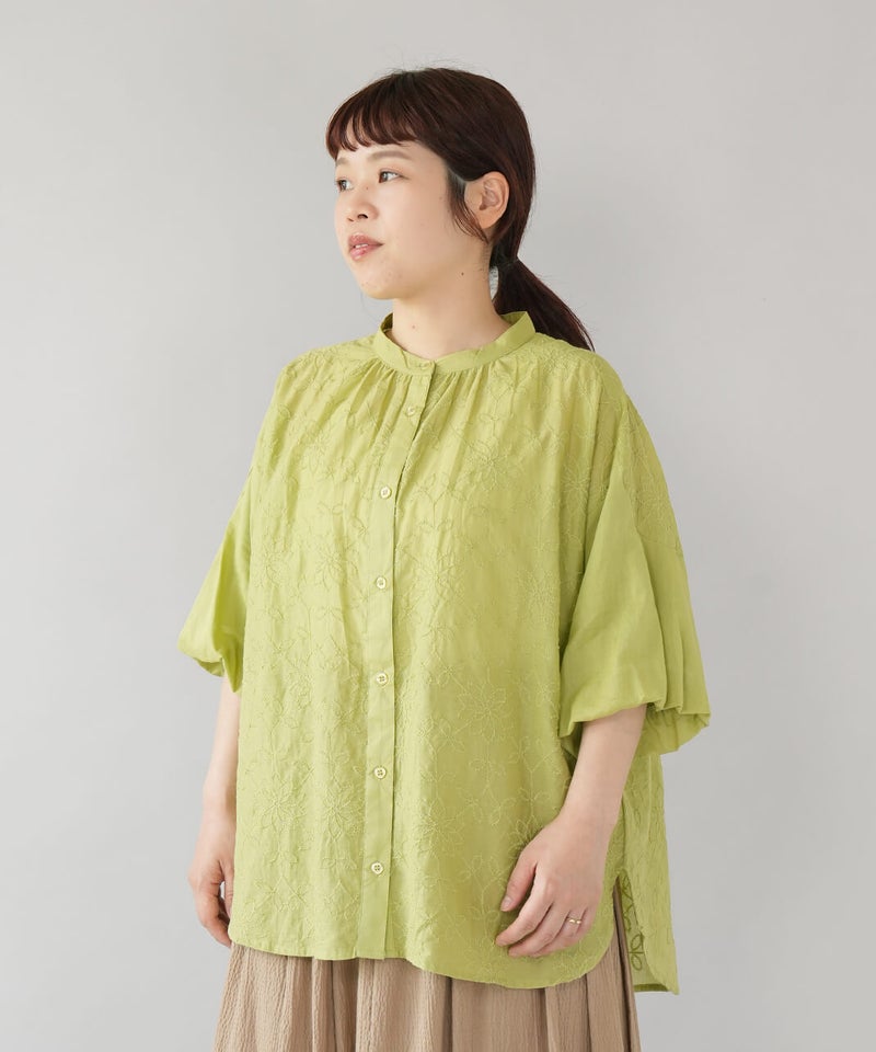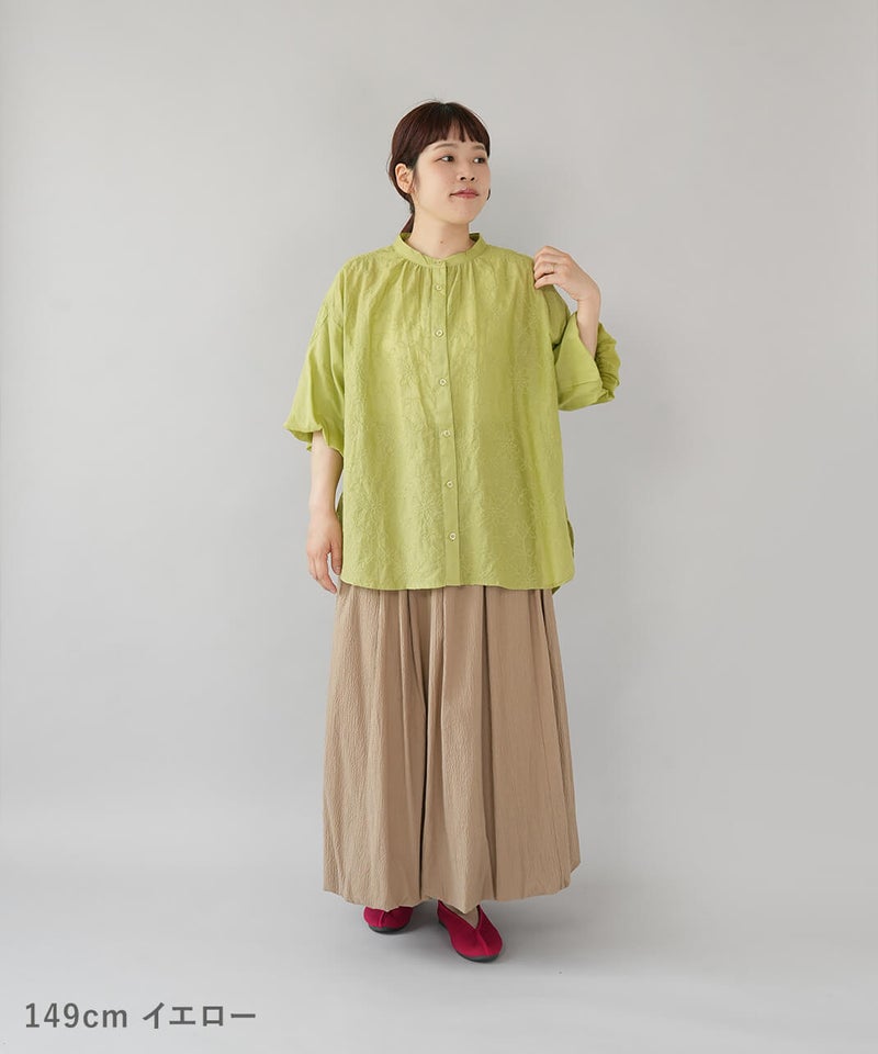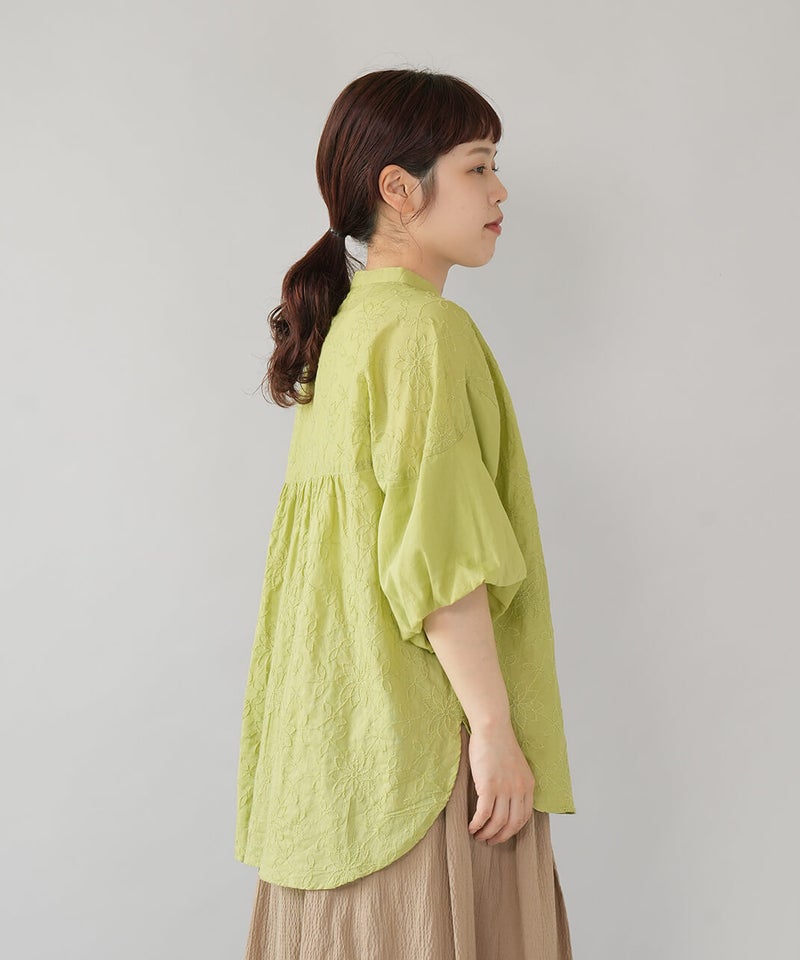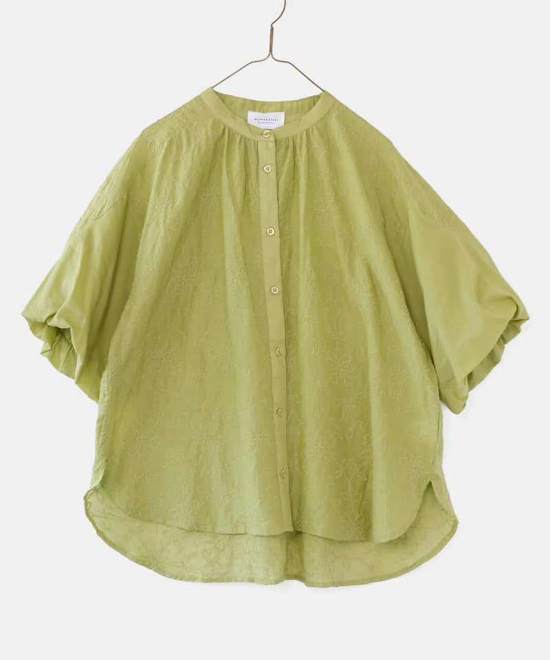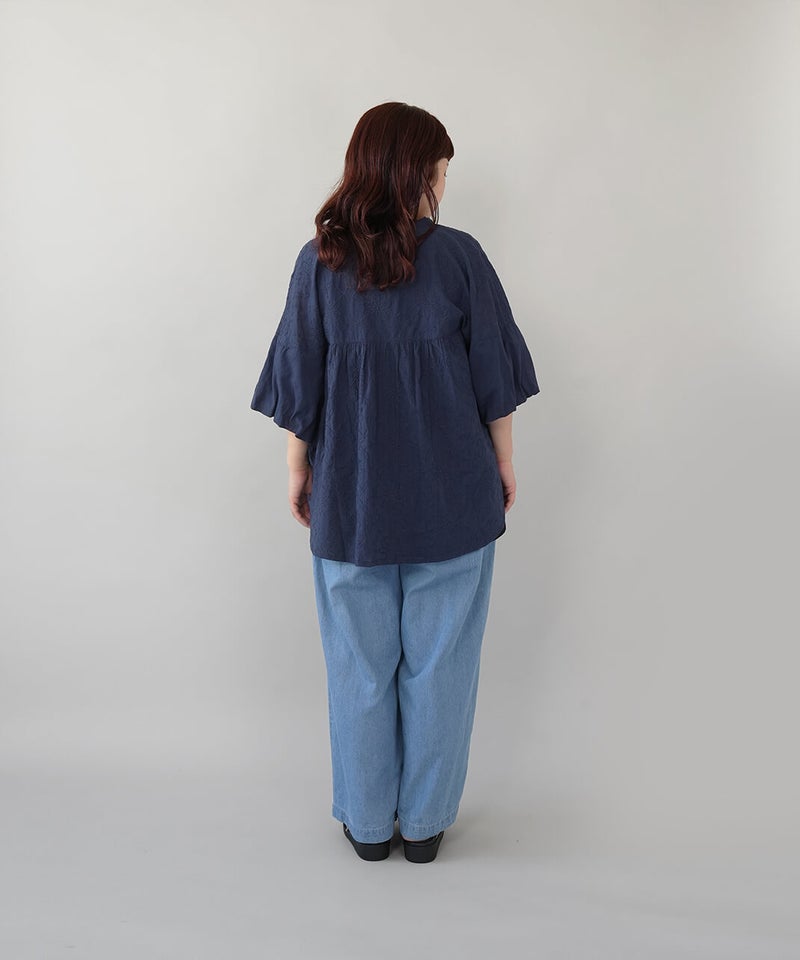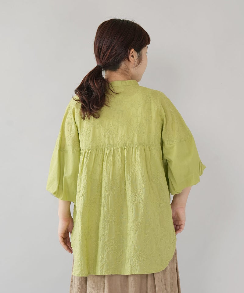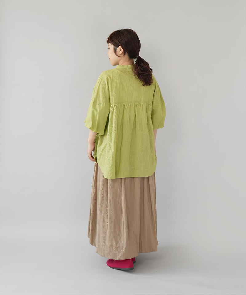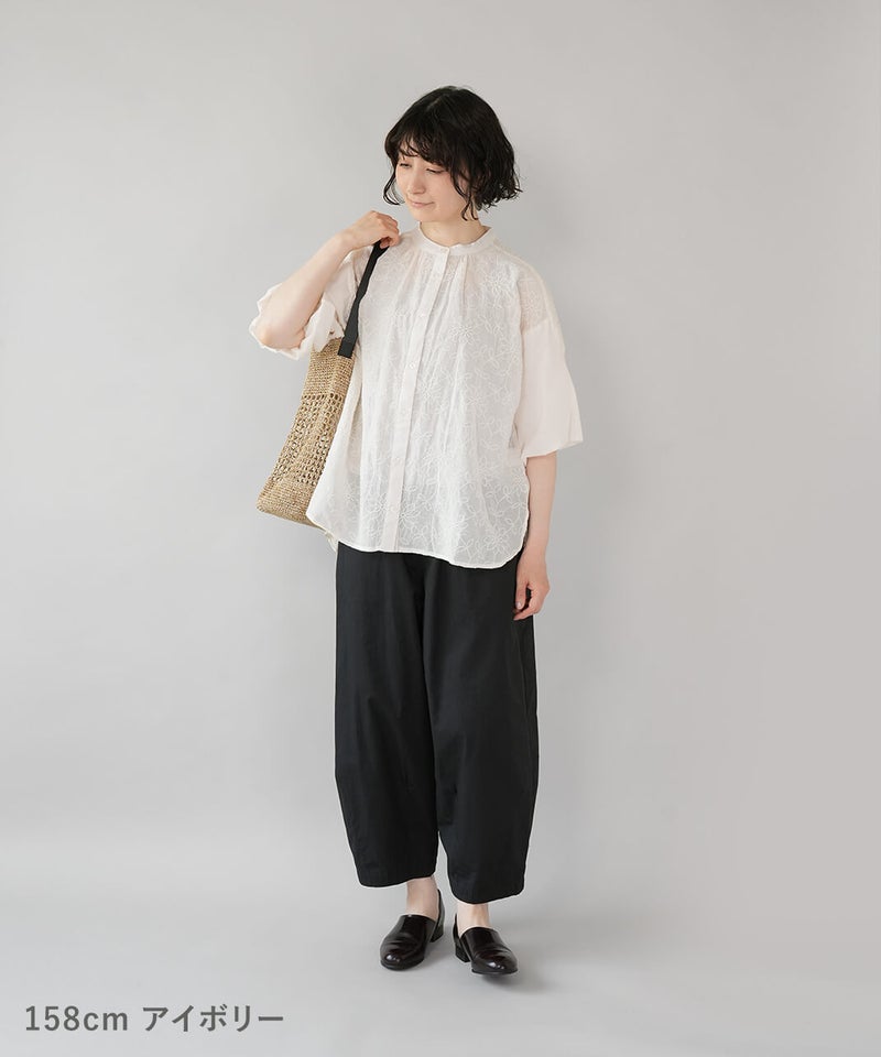 軽くてやわらかなコットンボイル生地で仕立てたブラウスです。