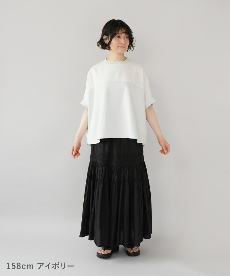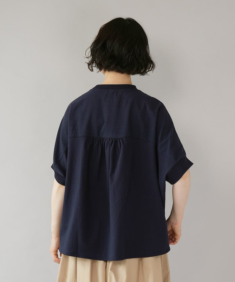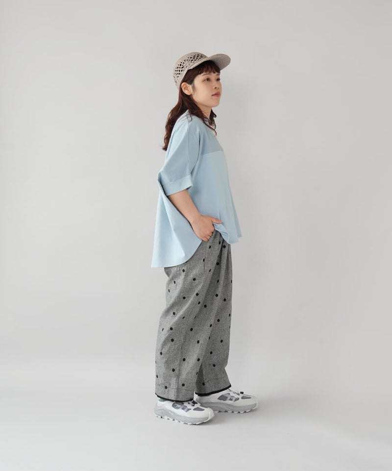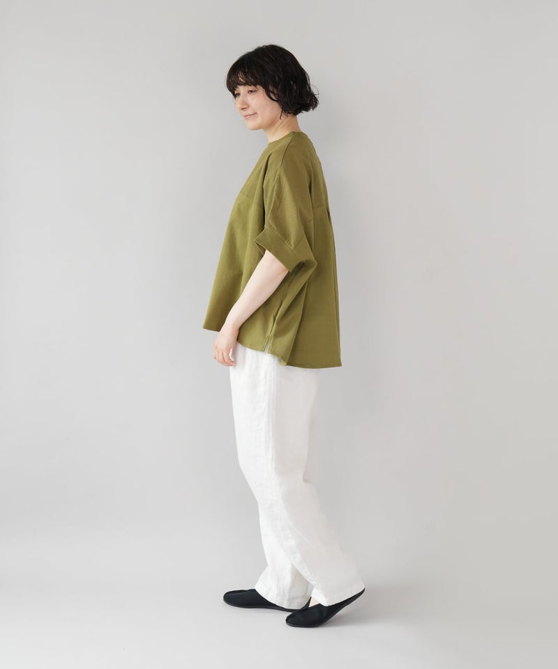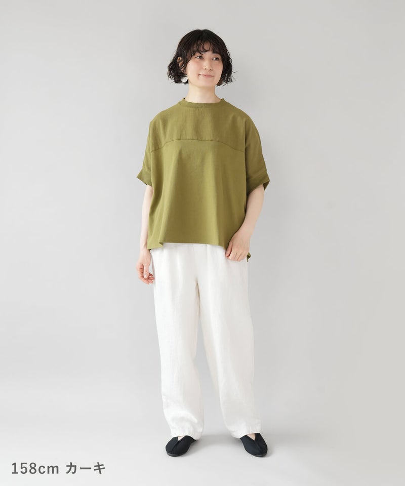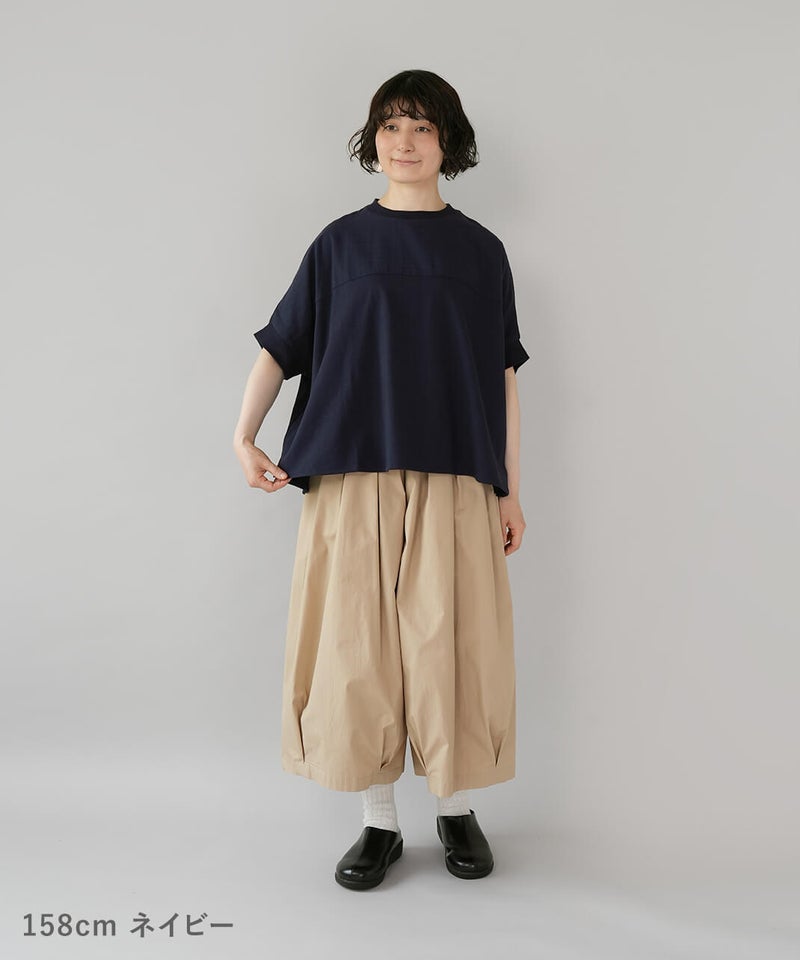 やわらかく肌なじみのよい天竺素材は、ほどよい厚みで丈夫。同色のさらりと軽い綿麻の布帛素材を組み合わせて、さりげないこだわりを込めました。