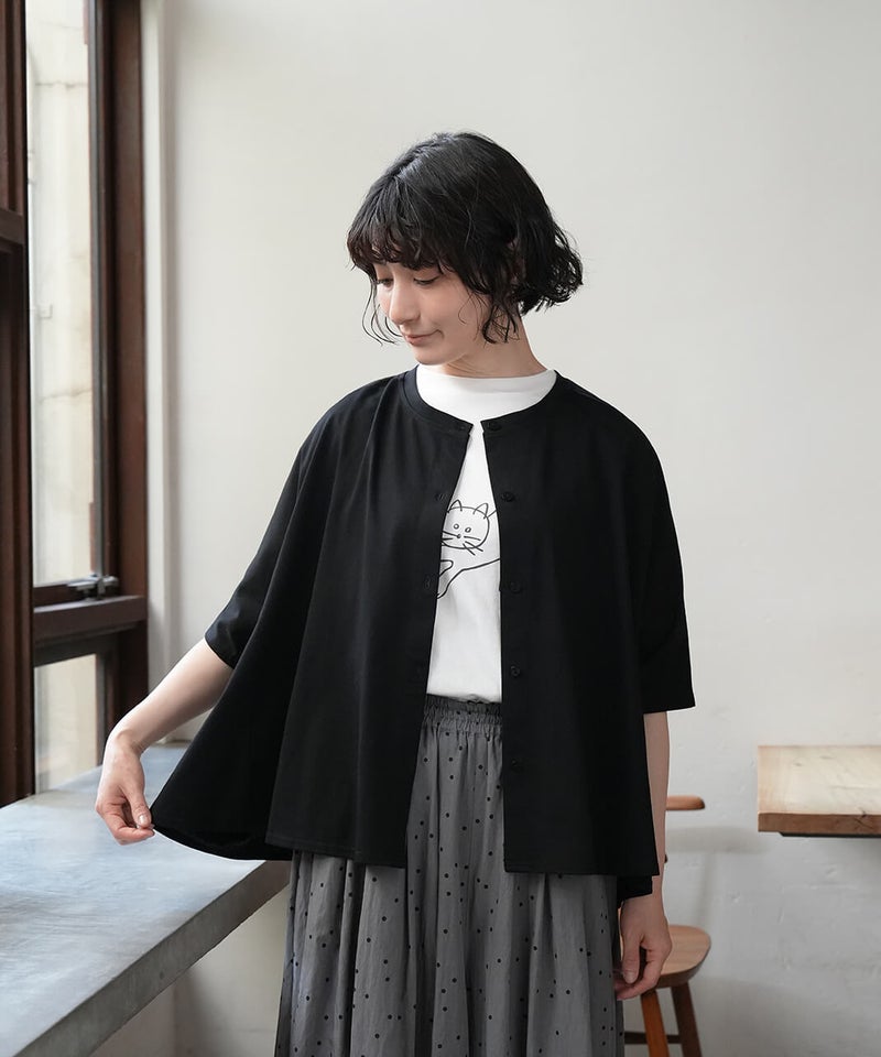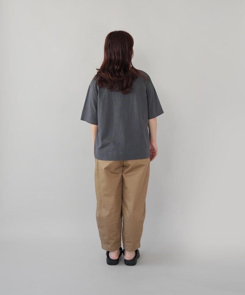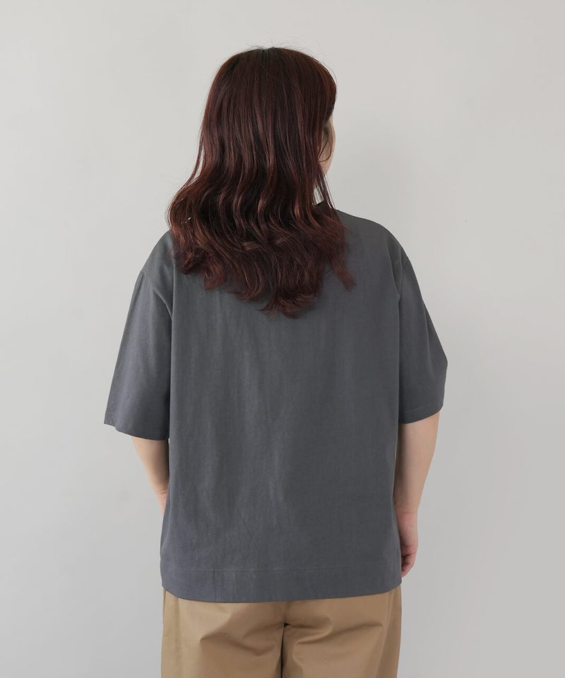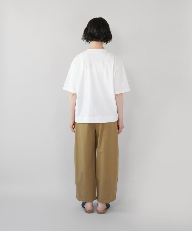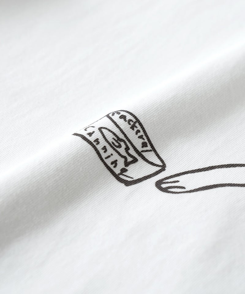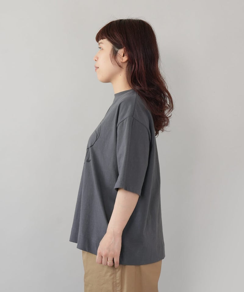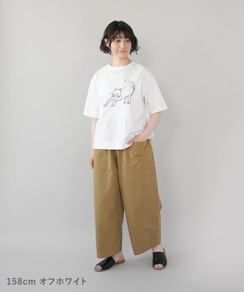 ふっくらとやわらかく、肌にやさしくなじむコットン素材のTシャツです。独特なムラ感やネップのある生地は、ほどよい表情があります。フロントには、手書き風の猫とサバ缶のモチーフのプリント。どこかとぼけた表情と、ゆるやかなタッチがさりげない遊び心を添えてくれます。伸縮性もあり、動きやすくリラックスした着心地。デニムやスカートに合わせて、肩の力を抜いて楽しめる大人のための猫Tシャツです。