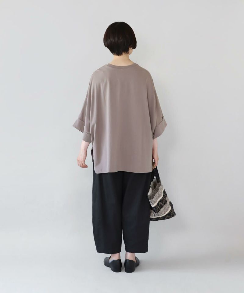 袖丈は長めに設計されており、気になる二の腕も自然にカバー。 さらに、袖先はさりげない折り返しデザインで、落ち感のあるシルエットが華奢見えを叶えてくれます。