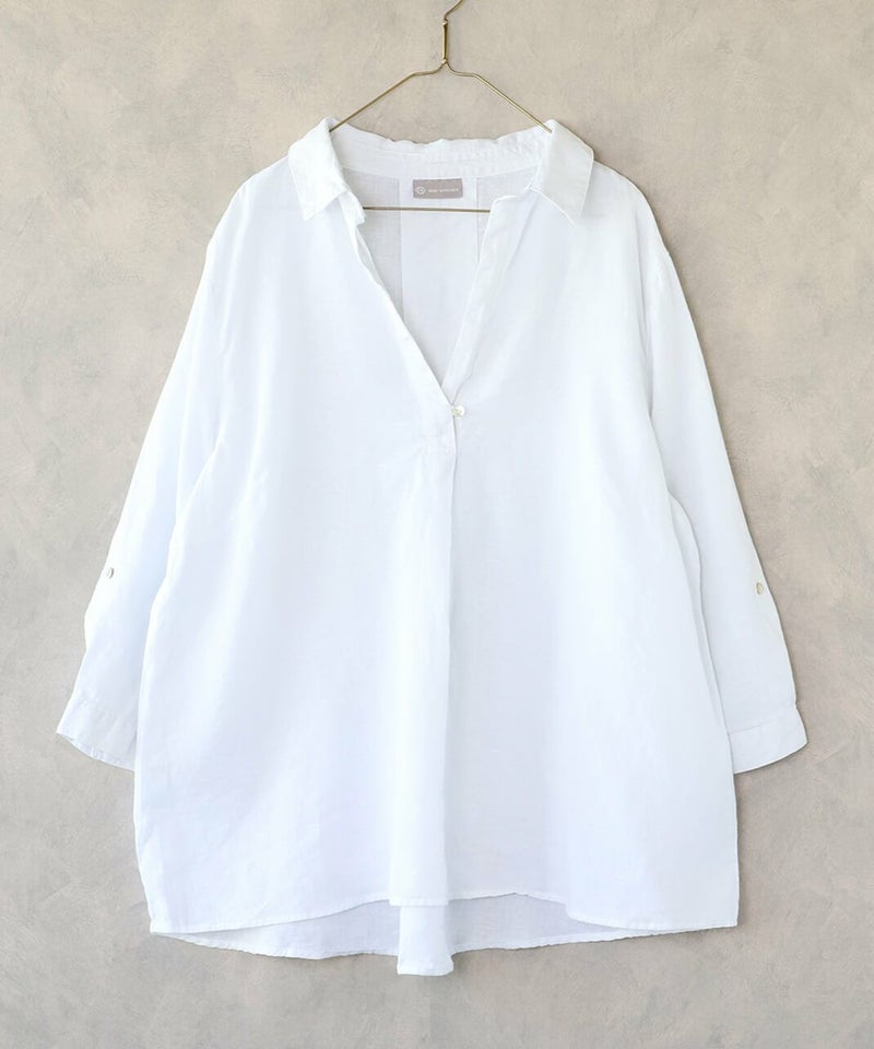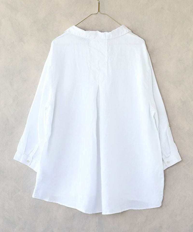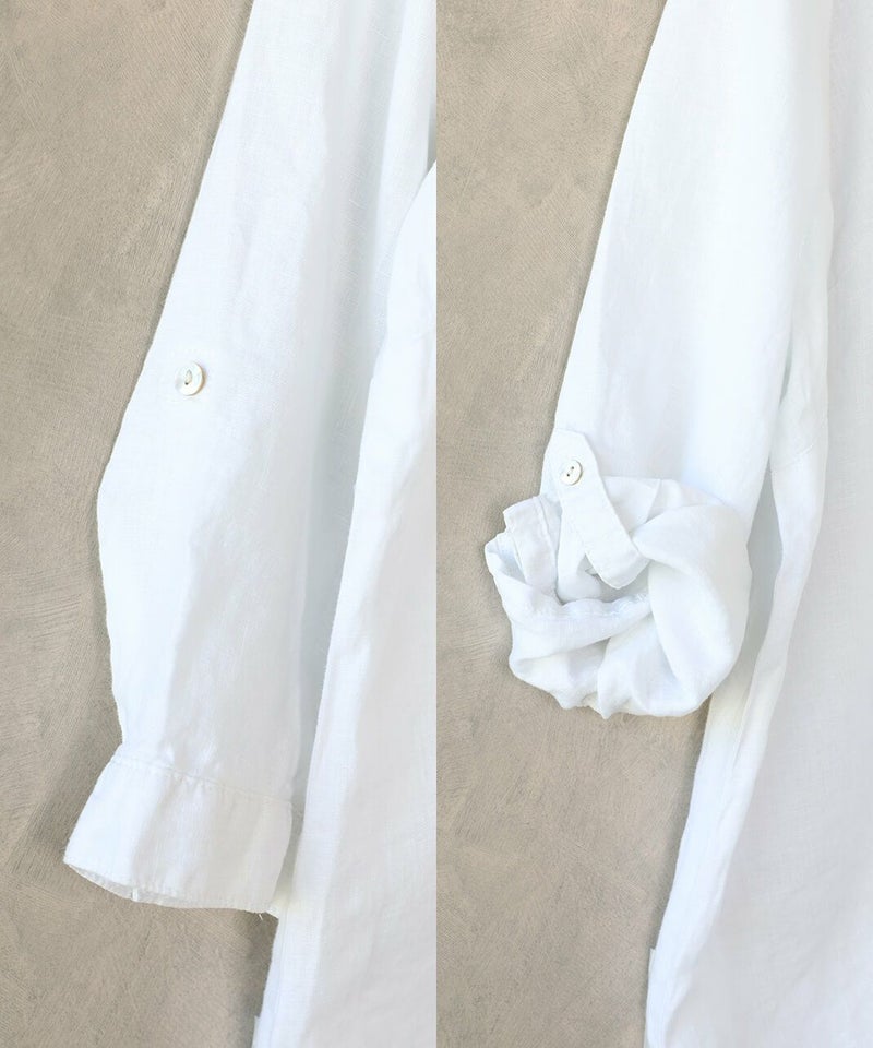 さらりとしたリネン素材のやさしい風合いが魅力の一枚。 無地ならではのシンプルなデザインが引き立ち、清潔感のある印象。 ナチュラルな質感と軽やかな着心地で、季節を問わず快適に着用いただけます。 古着ならではのやわらかな生地感と、一点物としての特別感をお楽しみください。