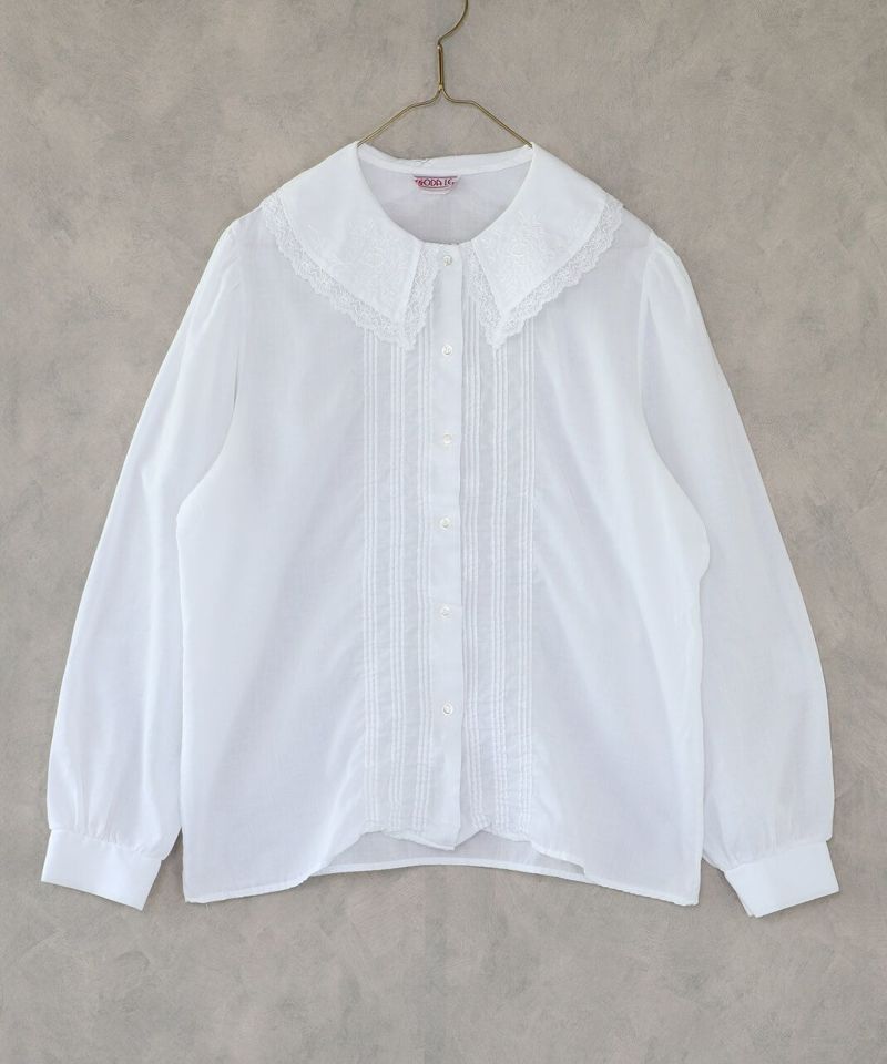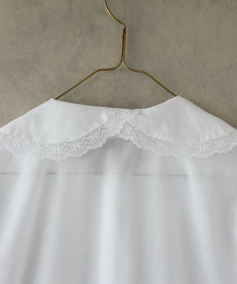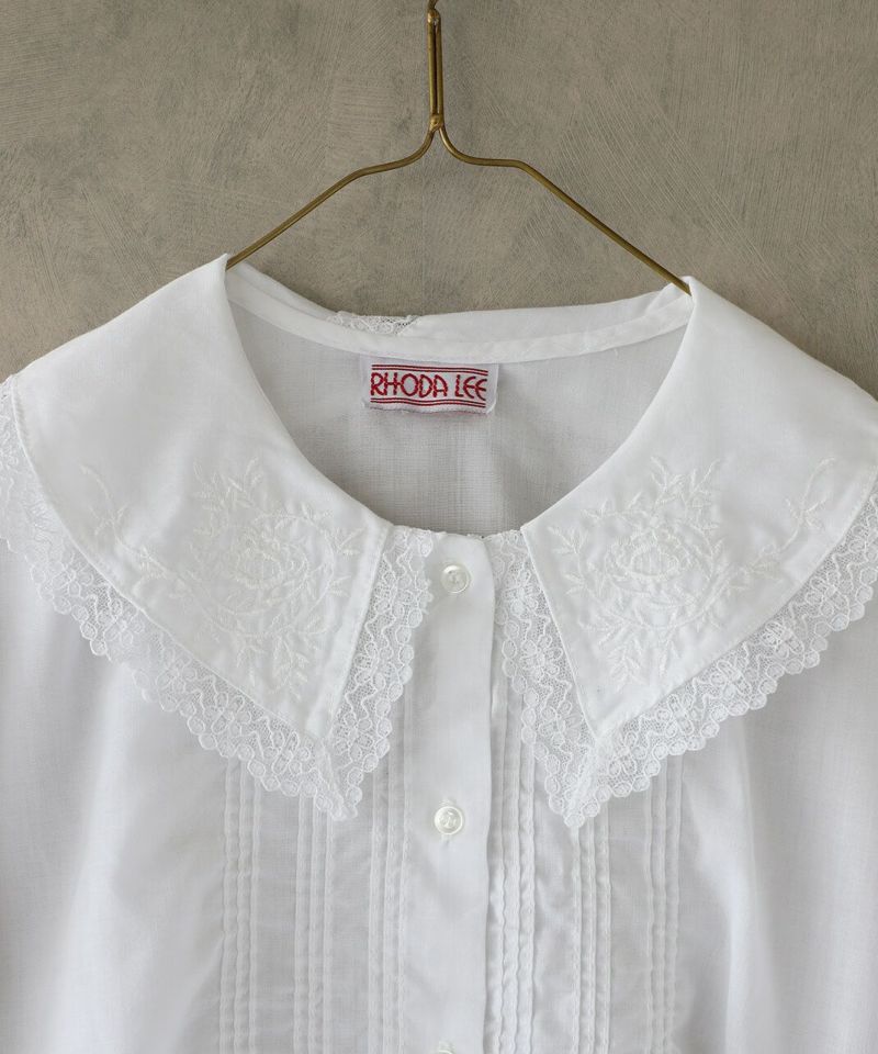 ホワイトコットンに、刺繍やレースの装飾が丁寧に施された、セーラーカラーのクラシカルなブラウスです。