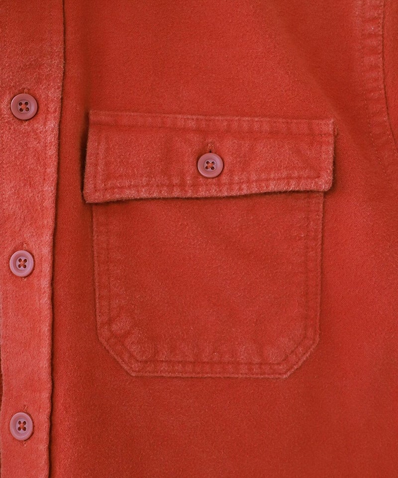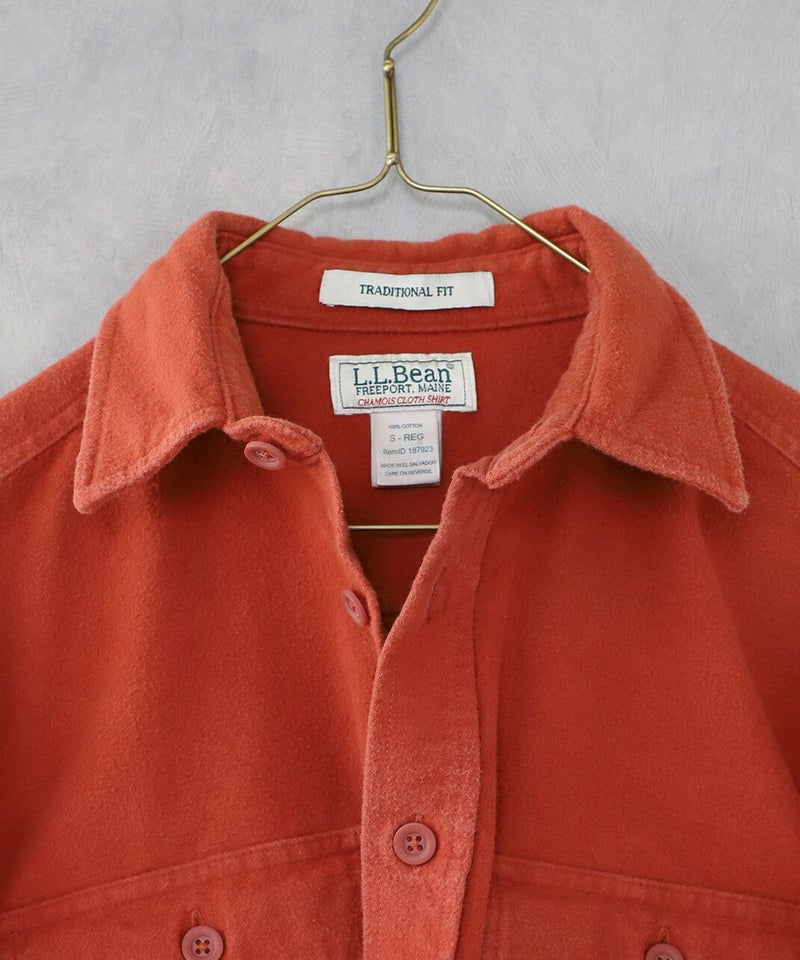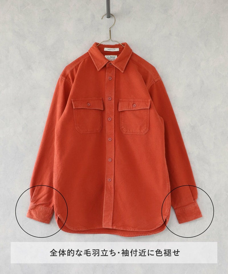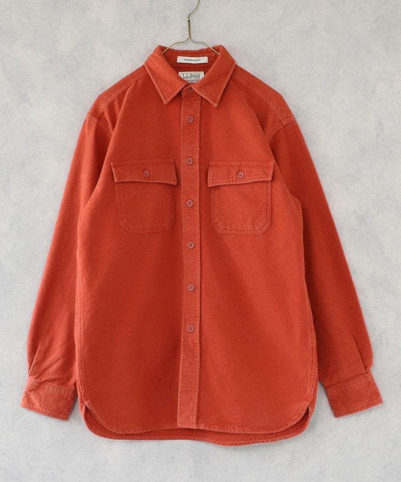 アメリカの老舗ブランド、L.L.Beanの古着厚手ネルシャツ。 しっかりとしたフランネル素材で保温性があり、アウトドアにも映えるタフな一枚です。 無地のシンプルなデザインが落ち着いた雰囲気を生み、デニムやワークパンツとも好相性。 少し袖をまくってラフに羽織れば抜け感のあるスタイルに仕上がります。