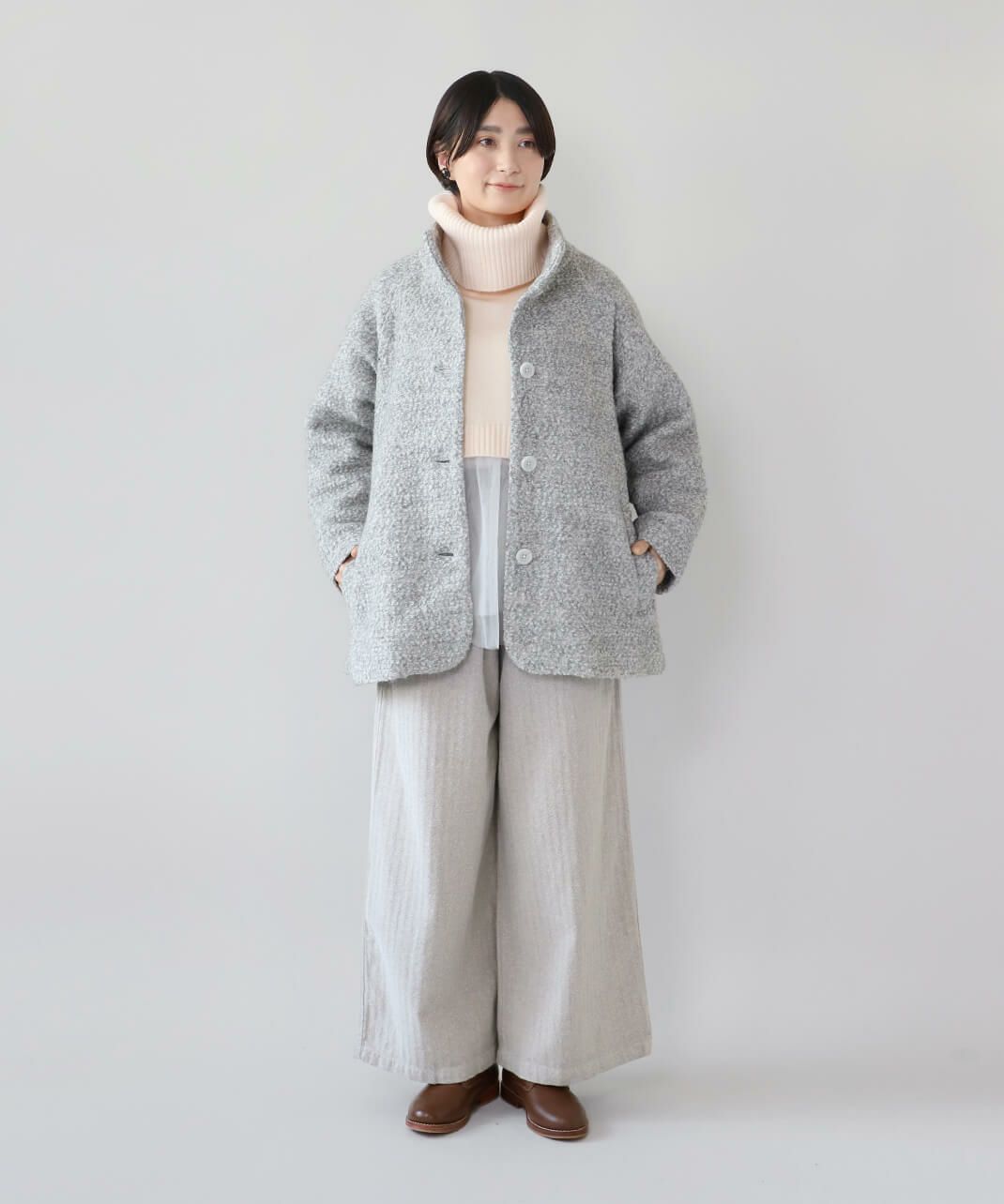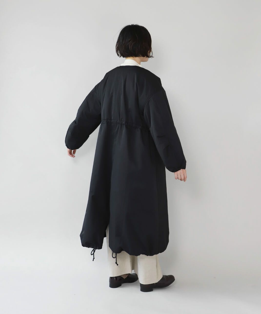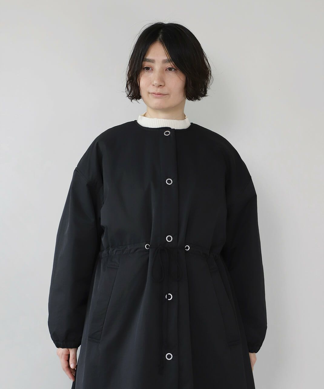 中綿入りノーカラーコート