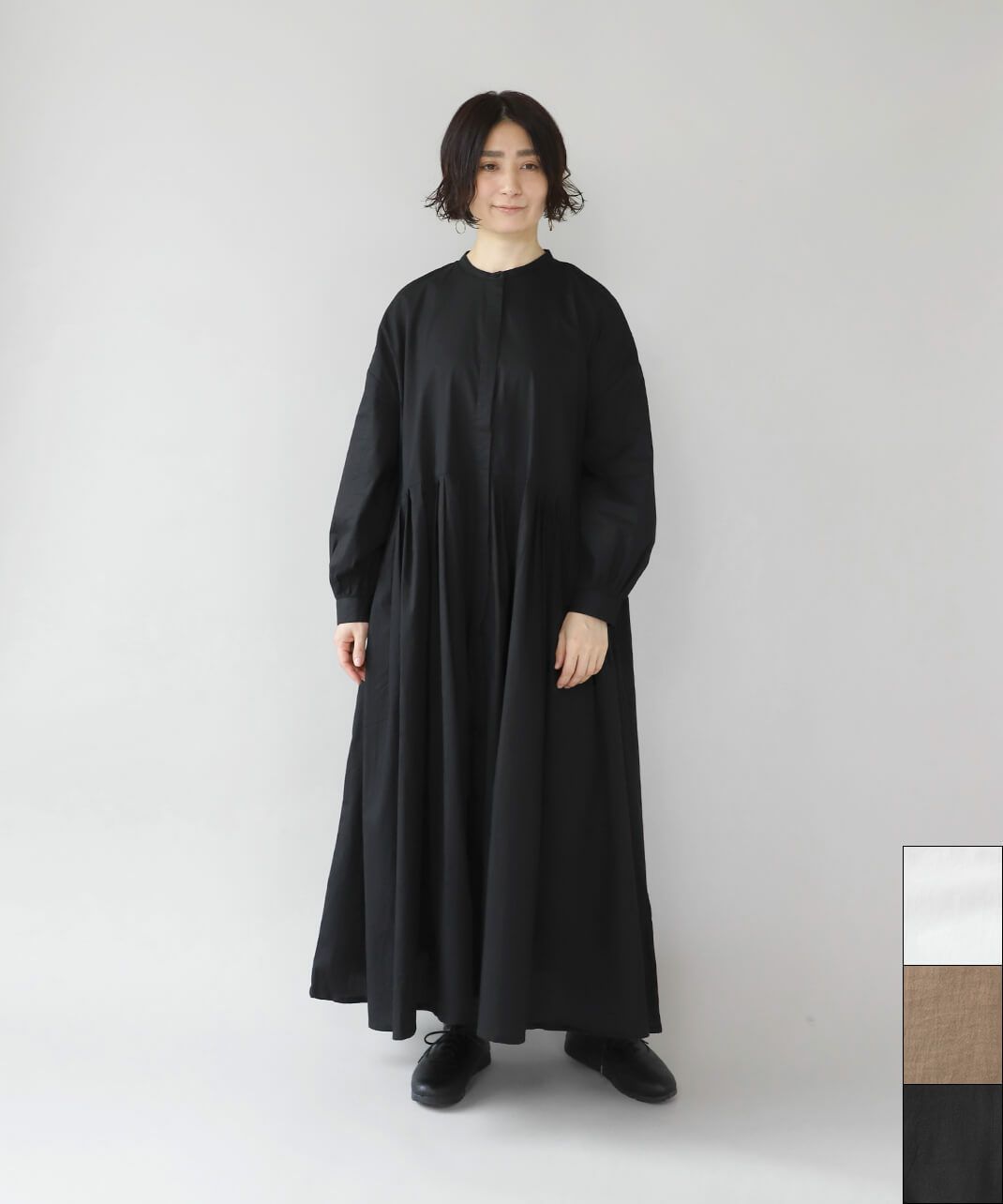 ノーカラータックワンピース