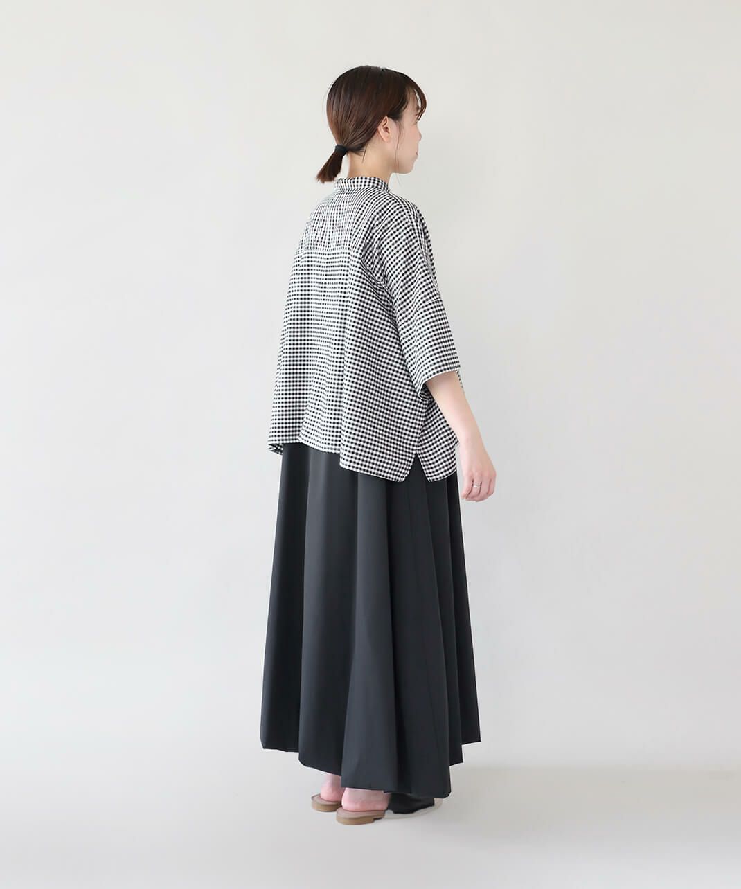バンドカラーのギャザーブラウス