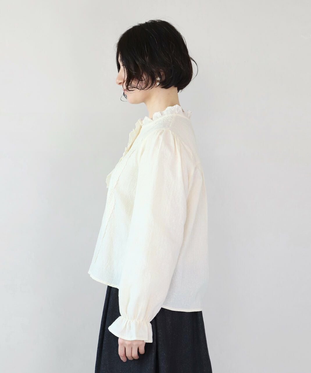 1枚でもインナーでも着られるシャーリングネックカットソー