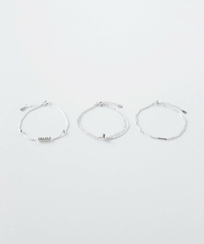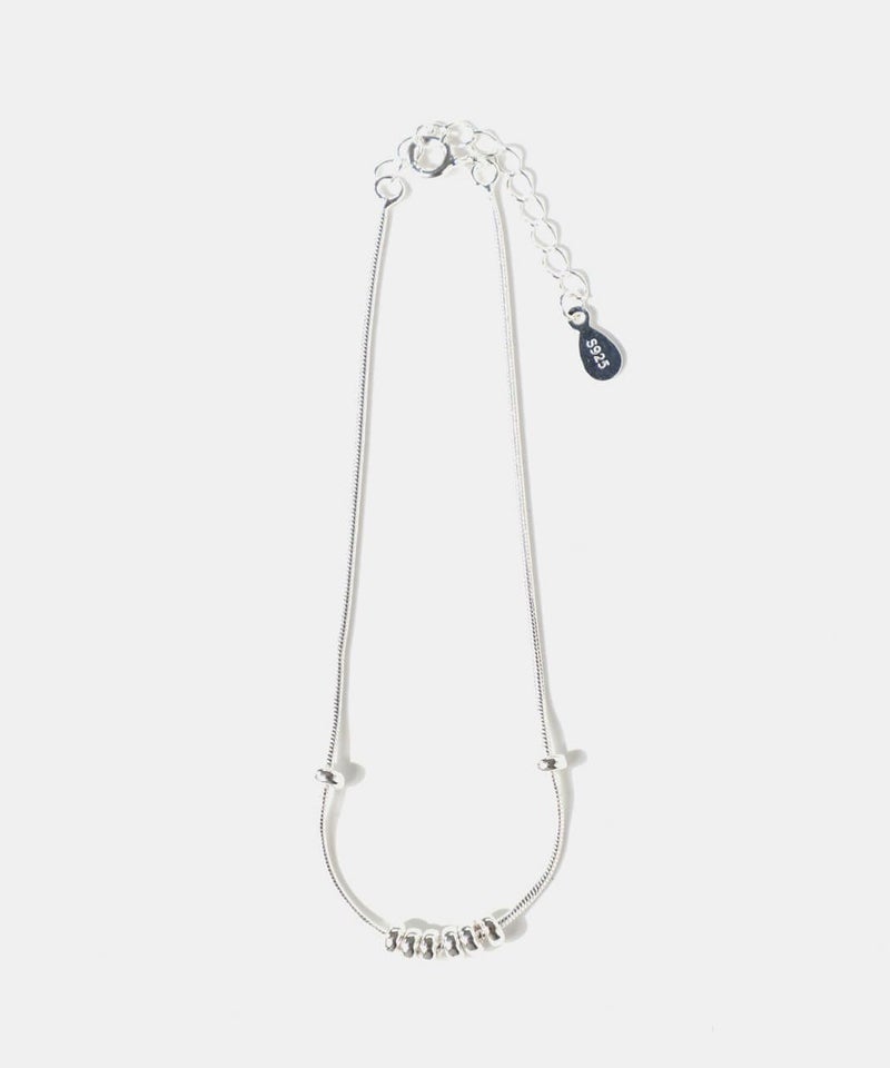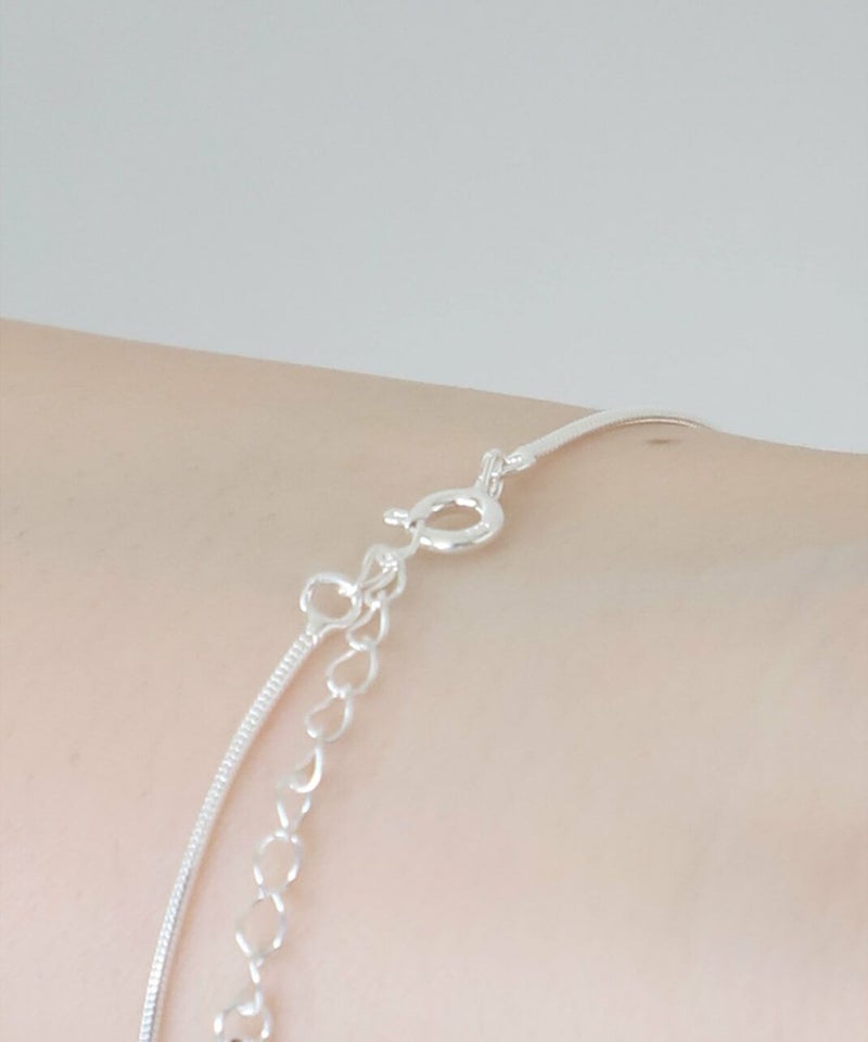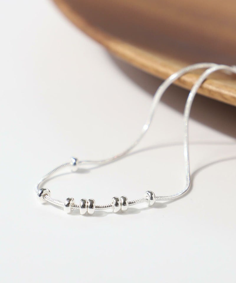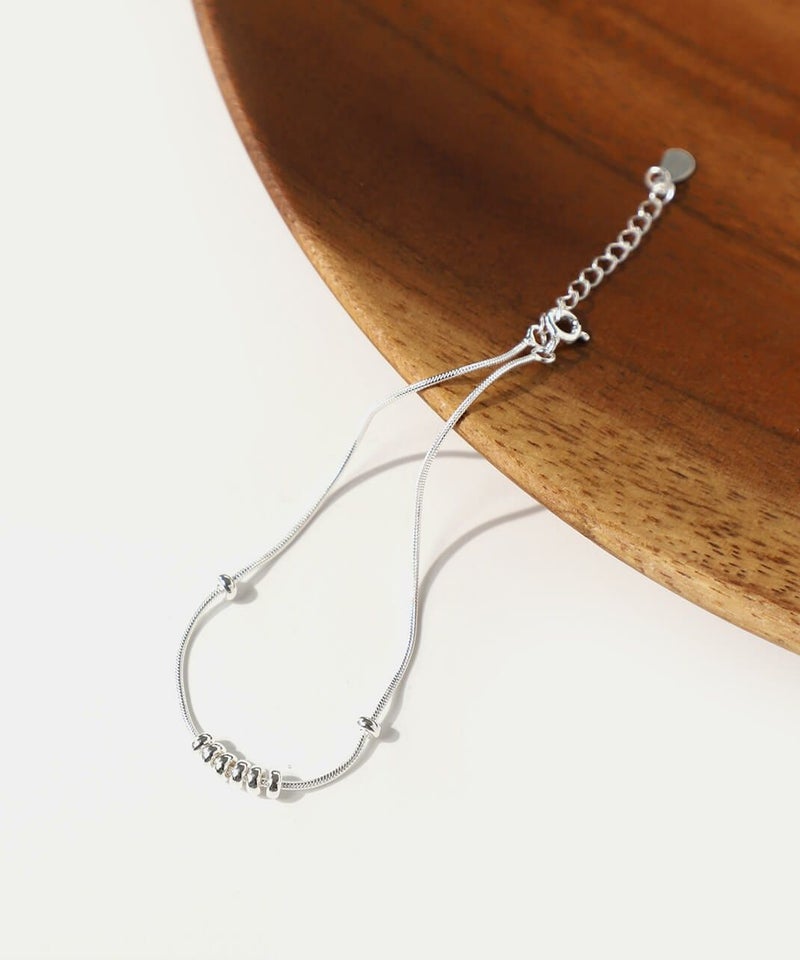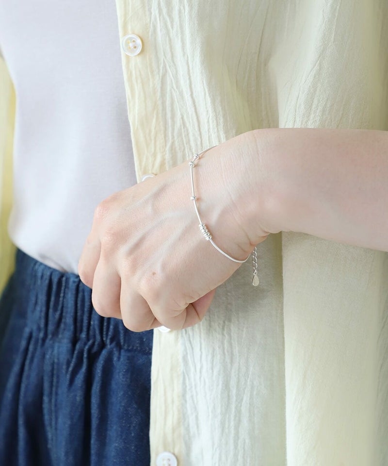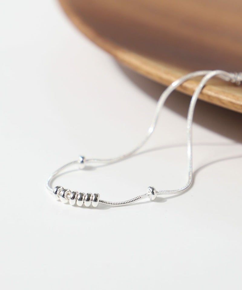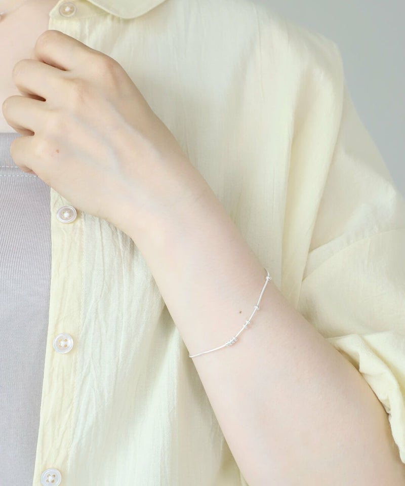 なめらかなスネークチェーンに小さなボールモチーフを通した、シンプルなデザインのブレスレットです。