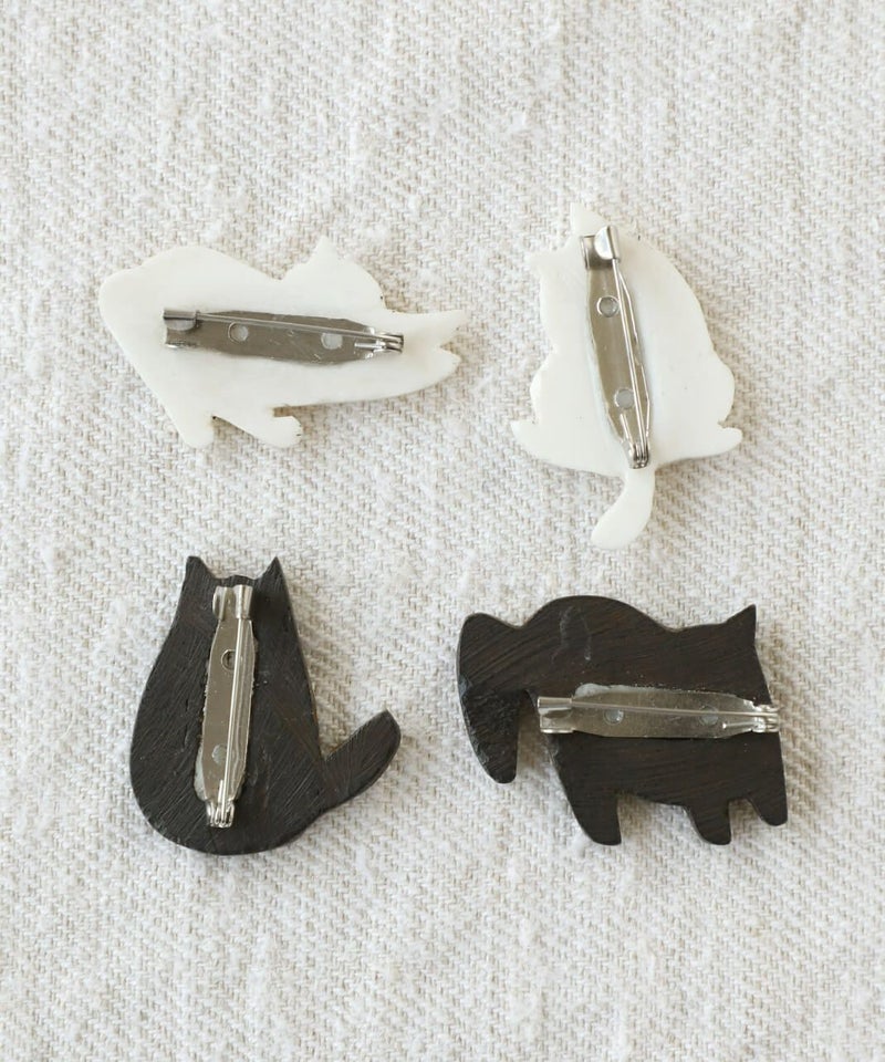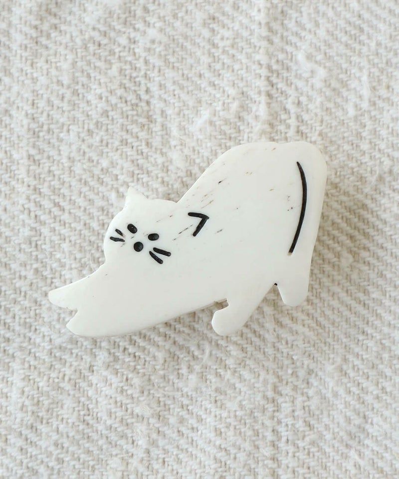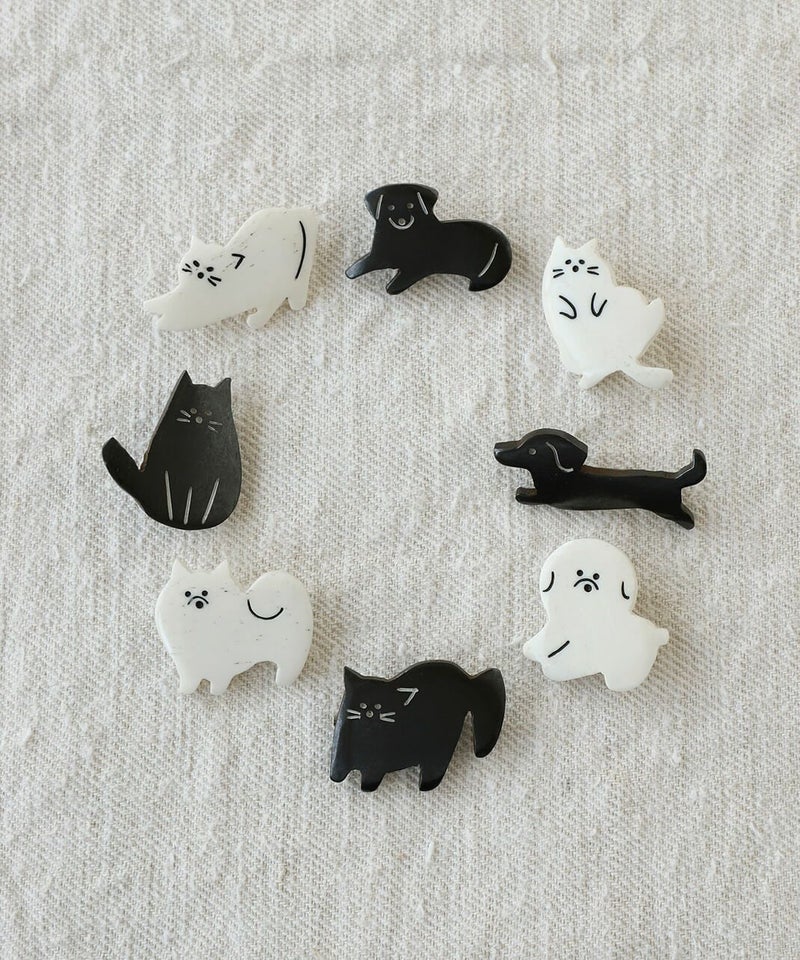 水牛の角を素材としたネパール製のハンドクラフトのブローチ。チャーミングな犬と猫の動きや仕草がゆるく表現されています。帽子やトートバックにつけたり、お部屋に飾ったり好きなように楽しんでください。
