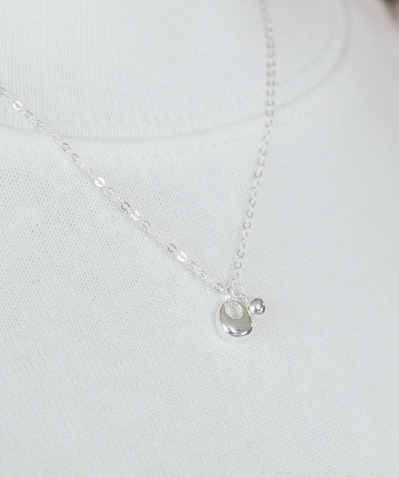 シンプルなチャームは控え目ながら、胸元に美しい輝きを添えてくれます。