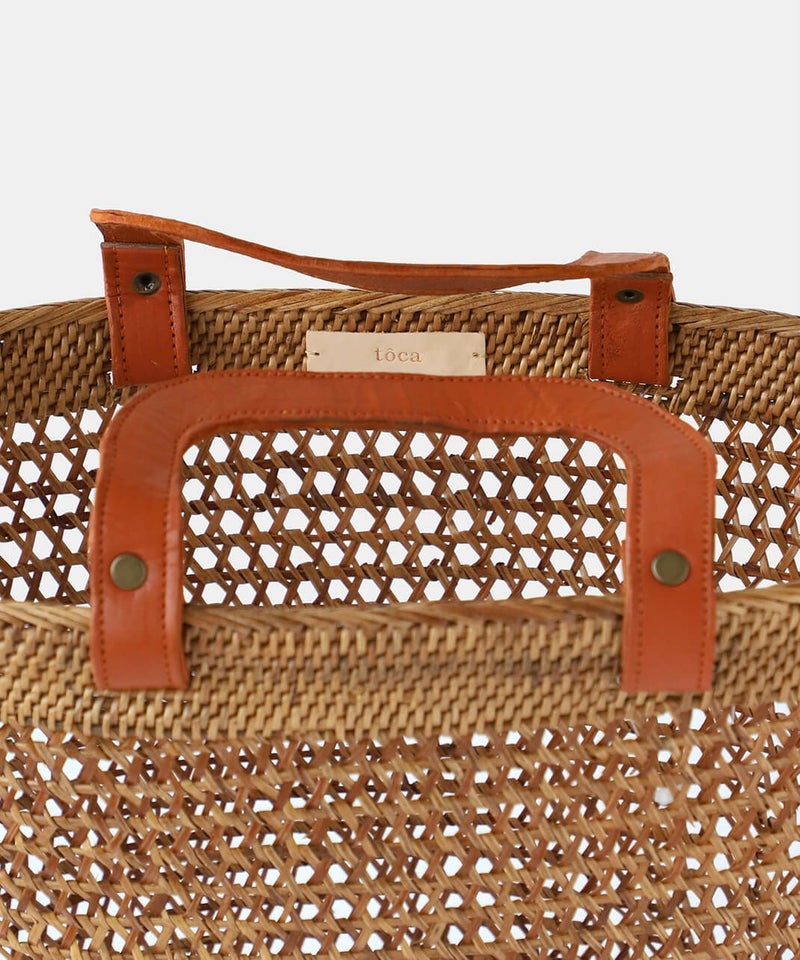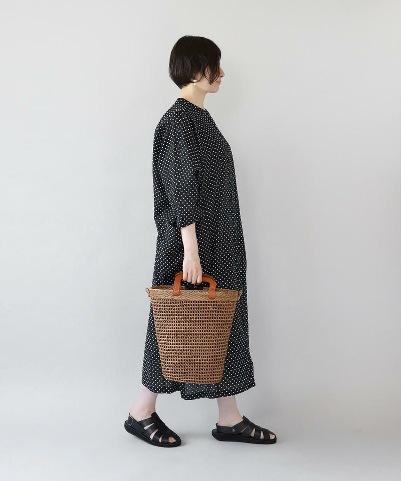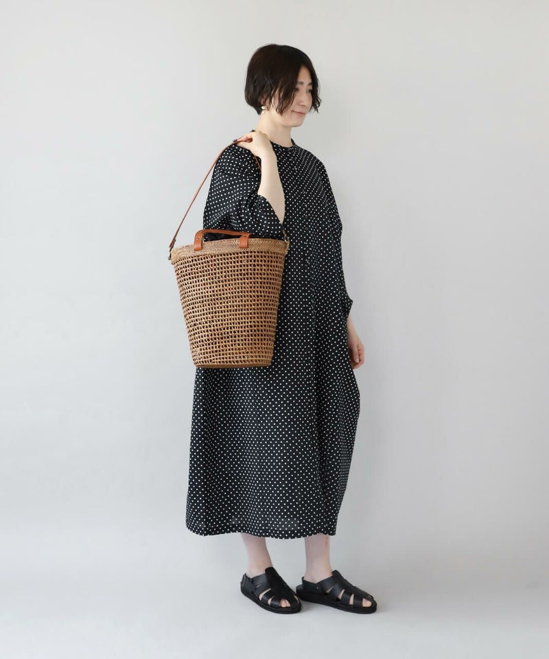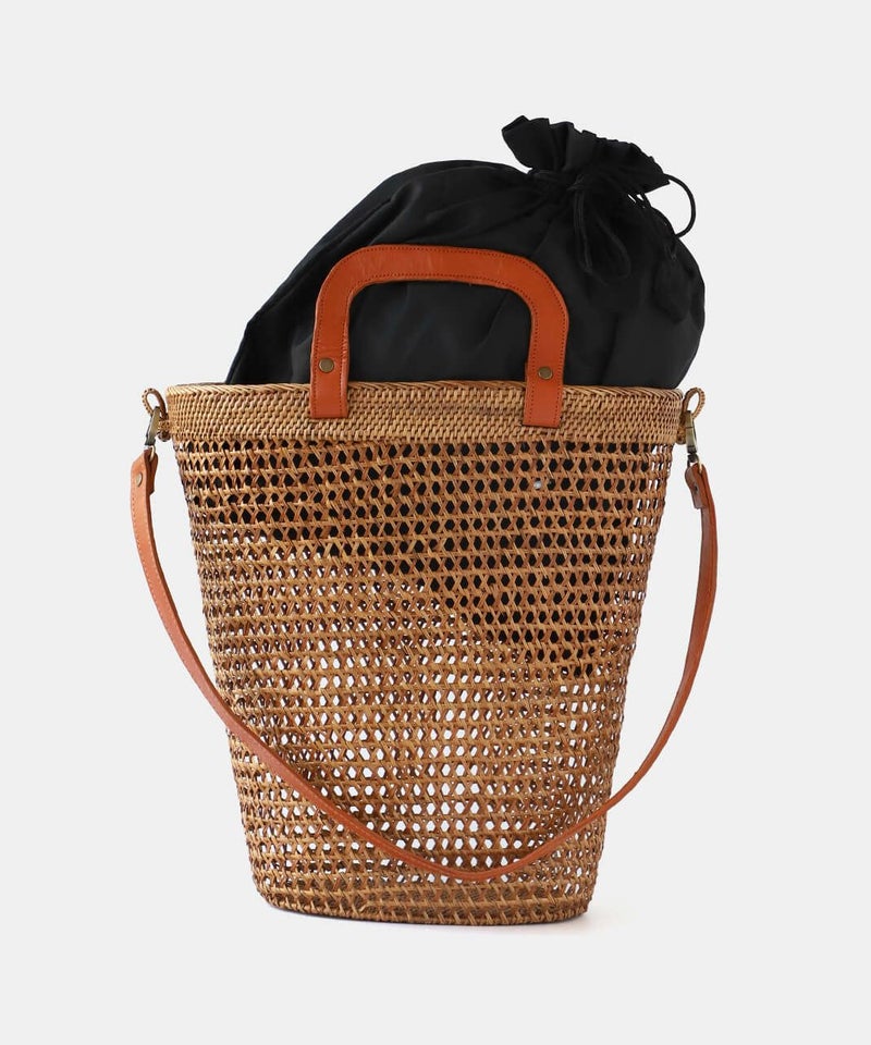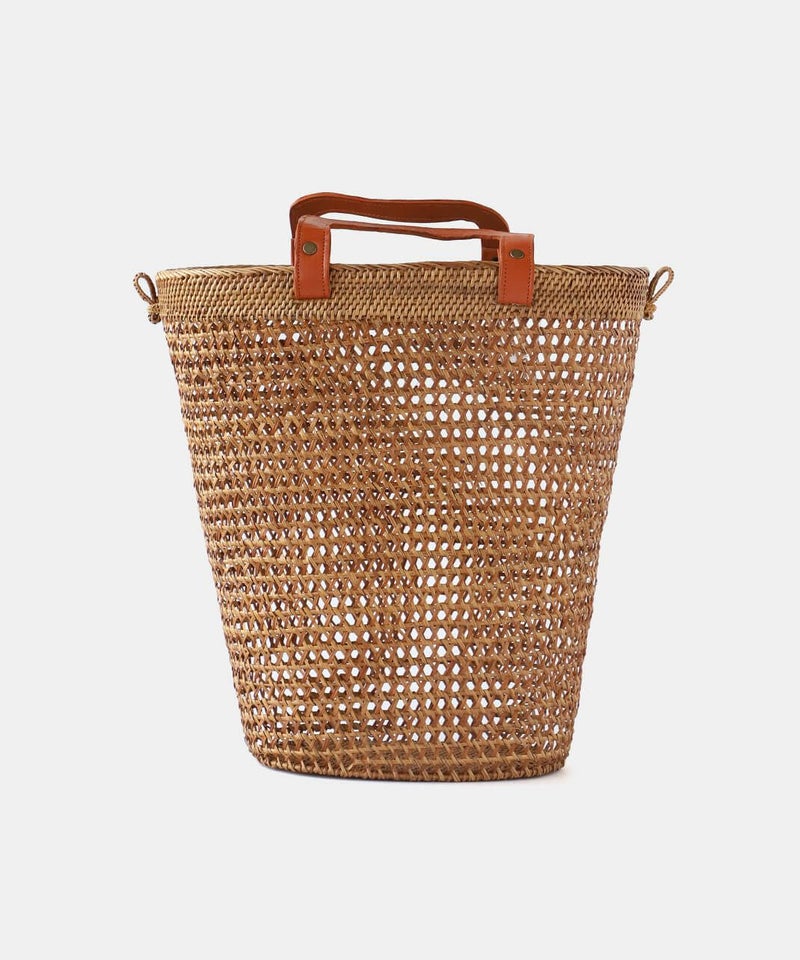 天然草木(アタ)を編み込んだバケツ型のかごバッグ。