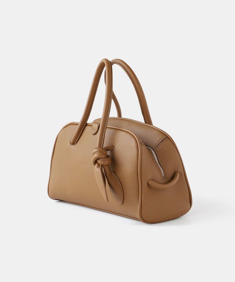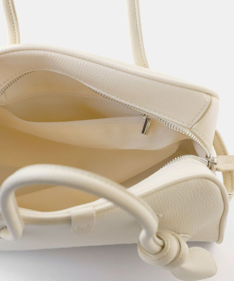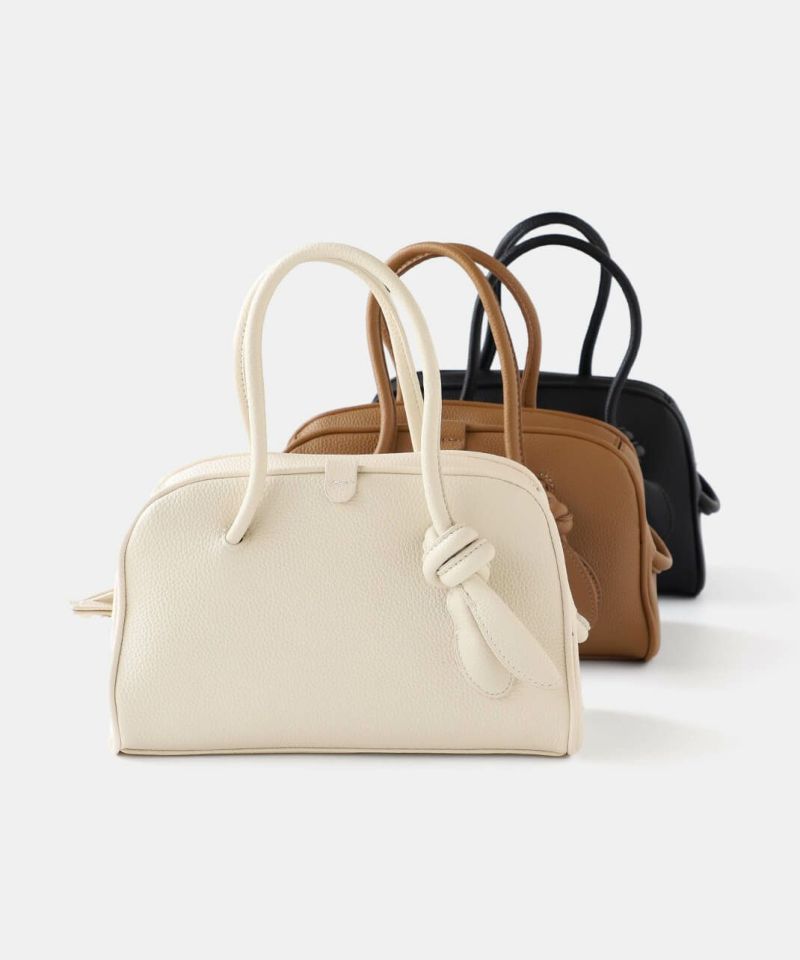 マットな合皮素材で落ち着いた雰囲気のボストンバッグ。 持ち手のリボンのようなデザインがワンポイントです。 牛革と違いバッグ自体が軽く、扱いやすいサイズ感〇 きれいめやカジュアルな装いにおすすめのバッグ。