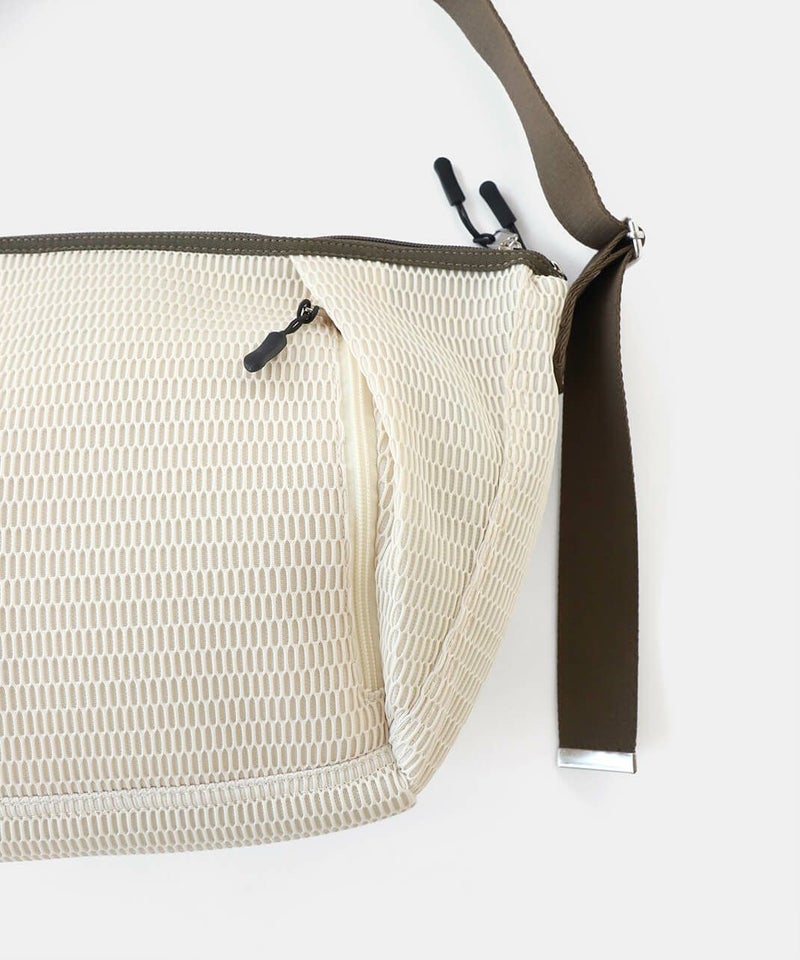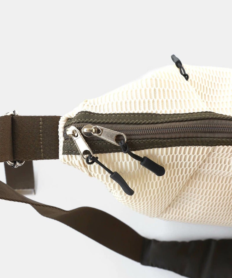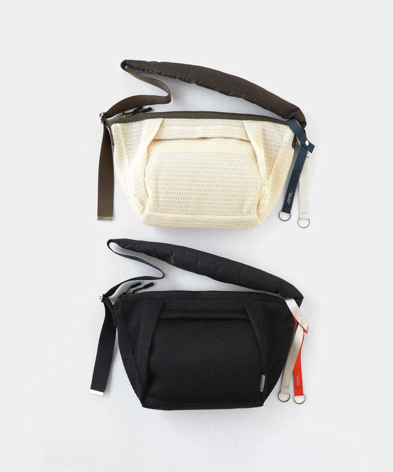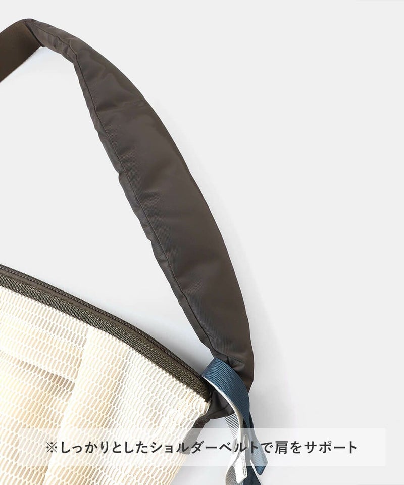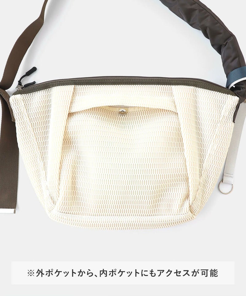 メッシュでできたウォッシャブルボディバッグ。