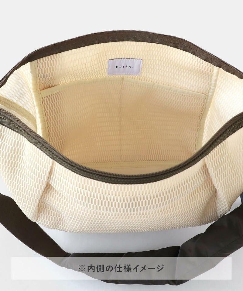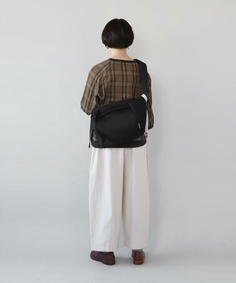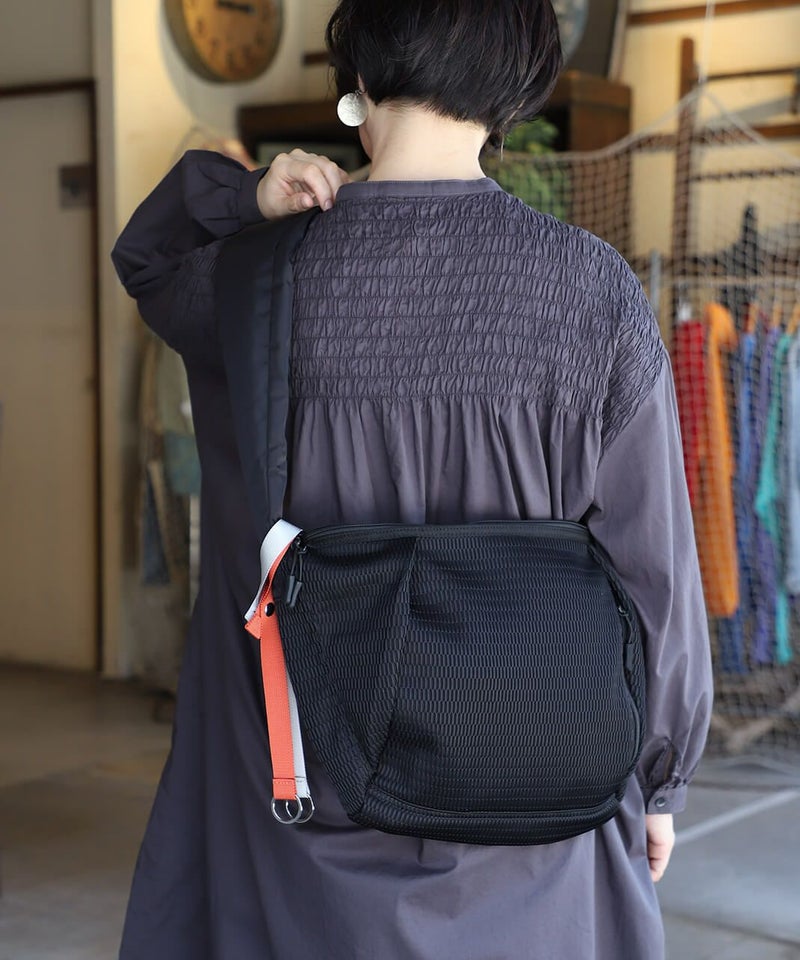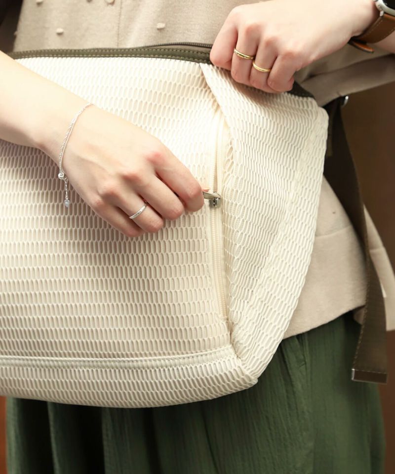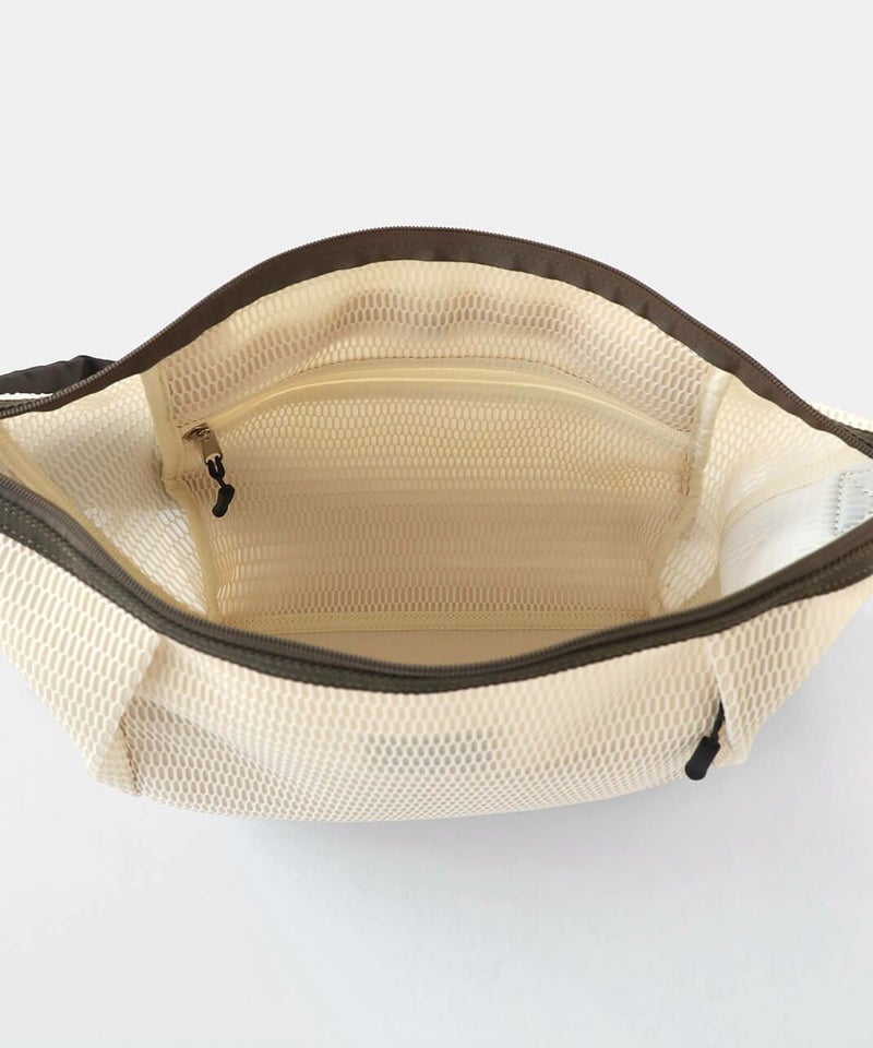メッシュでできたウォッシャブルボディバッグ。