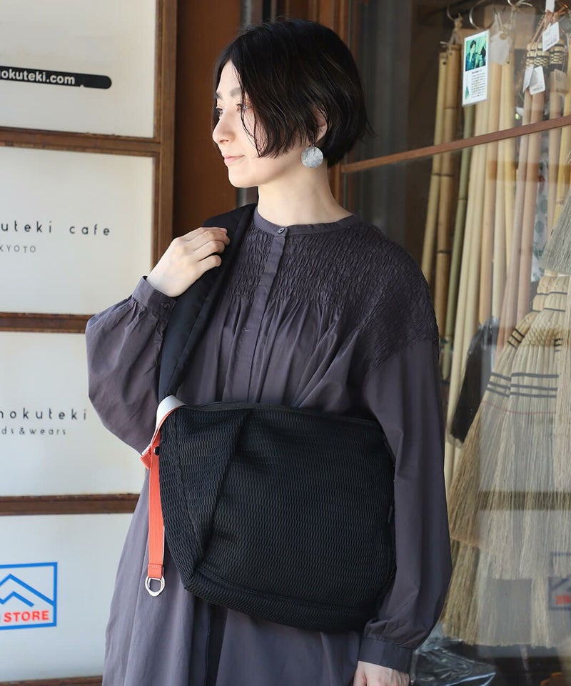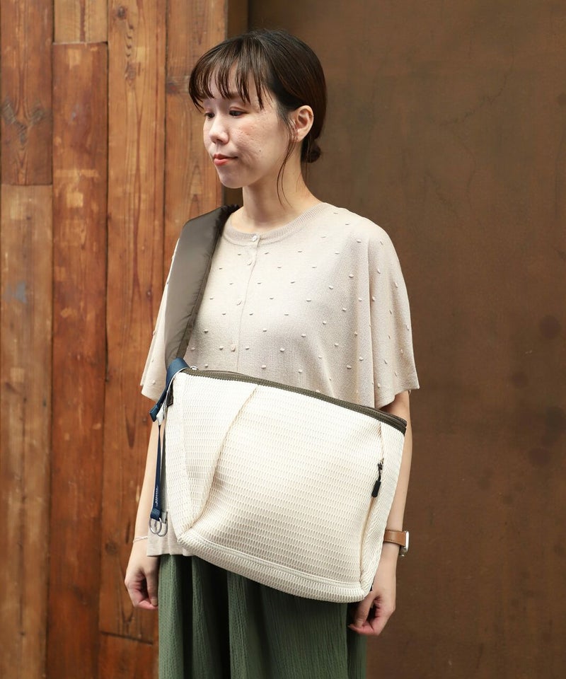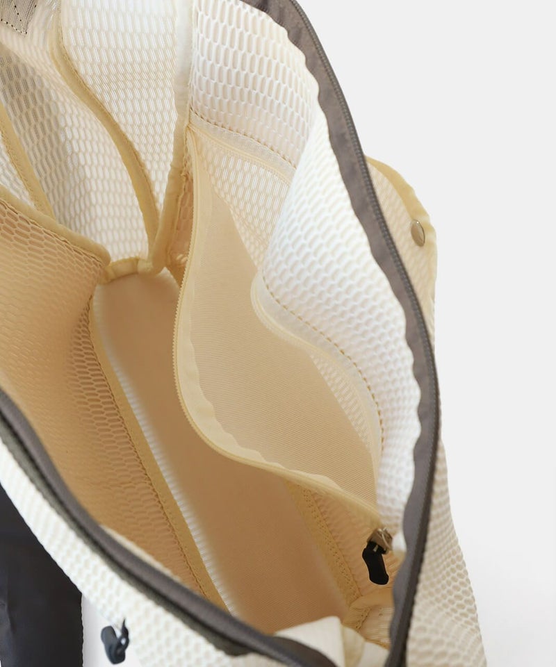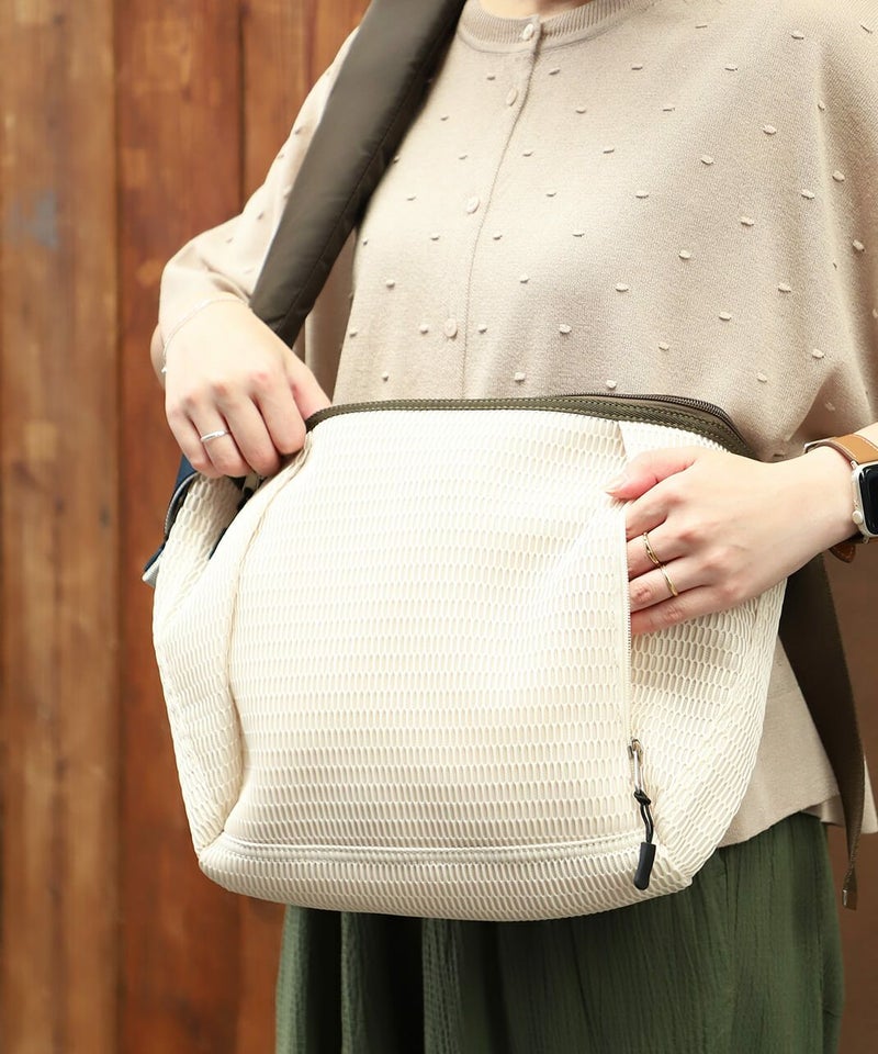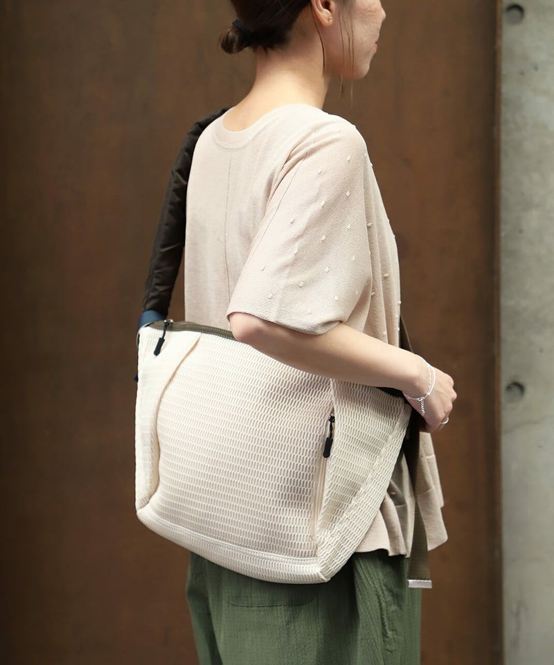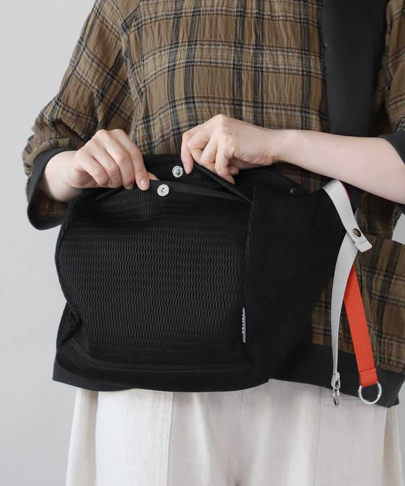 サンダルやオフィスチェアにも使用されるメッシュは柔らかくて畳みやすく、しわになりにくい生地感。