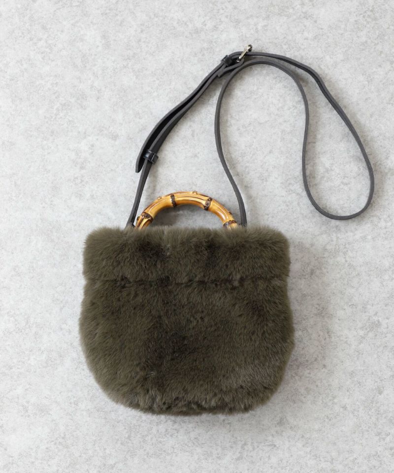 フェイクファーと竹の組み合わせが目を惹くショルダーバッグです。