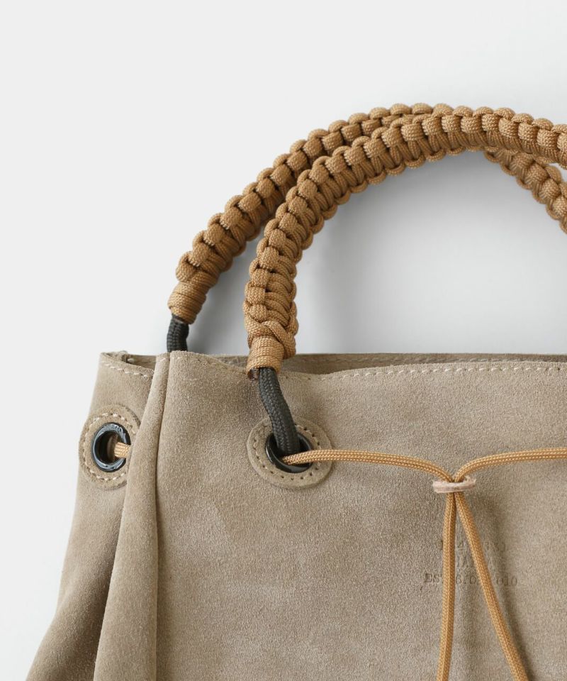 一つずつ編まれたハンドルが印象的な巾着タイプのHAIDA PRODUCTS新型コレクション。。