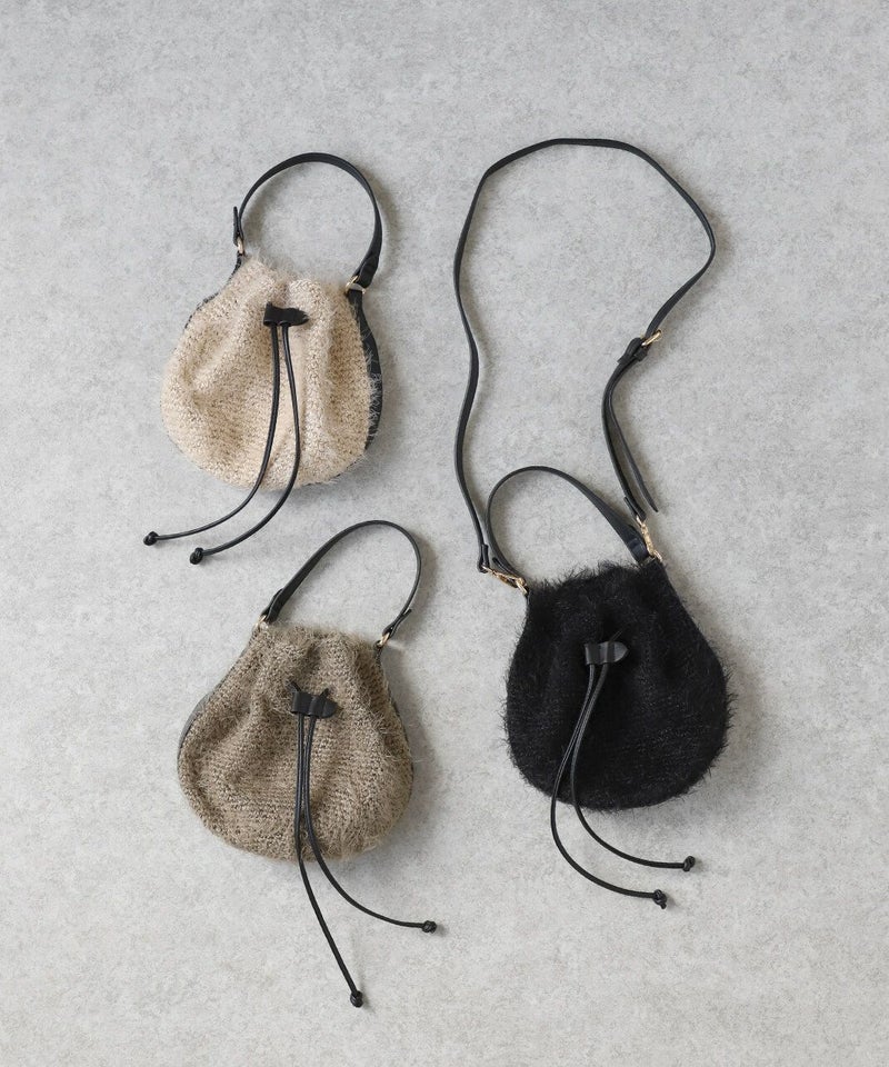 うっすらとシャギー加工されたニット生地のショルダーバッグです。