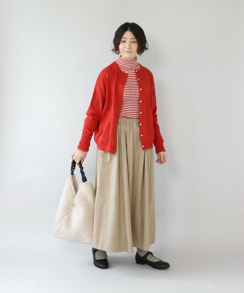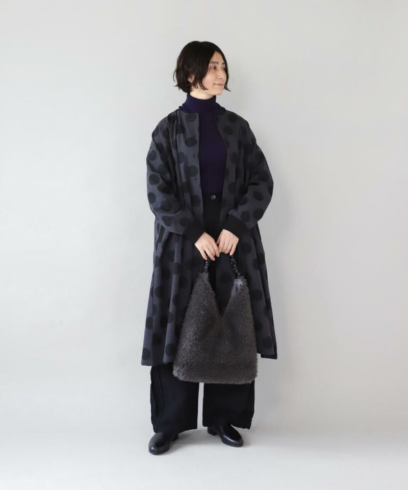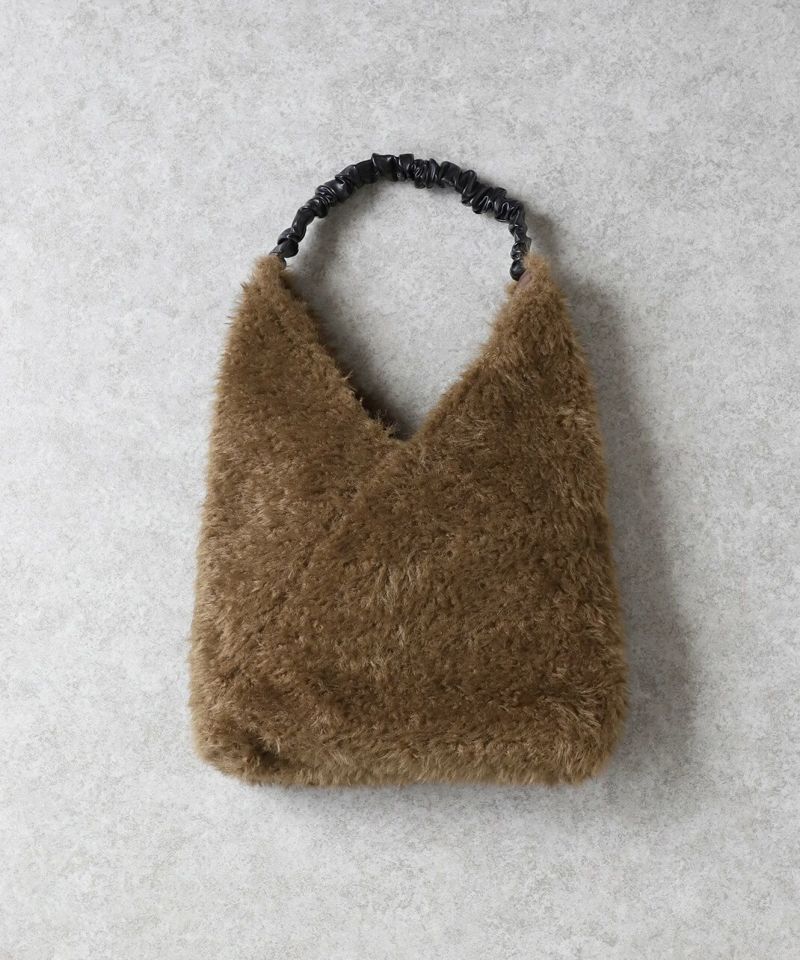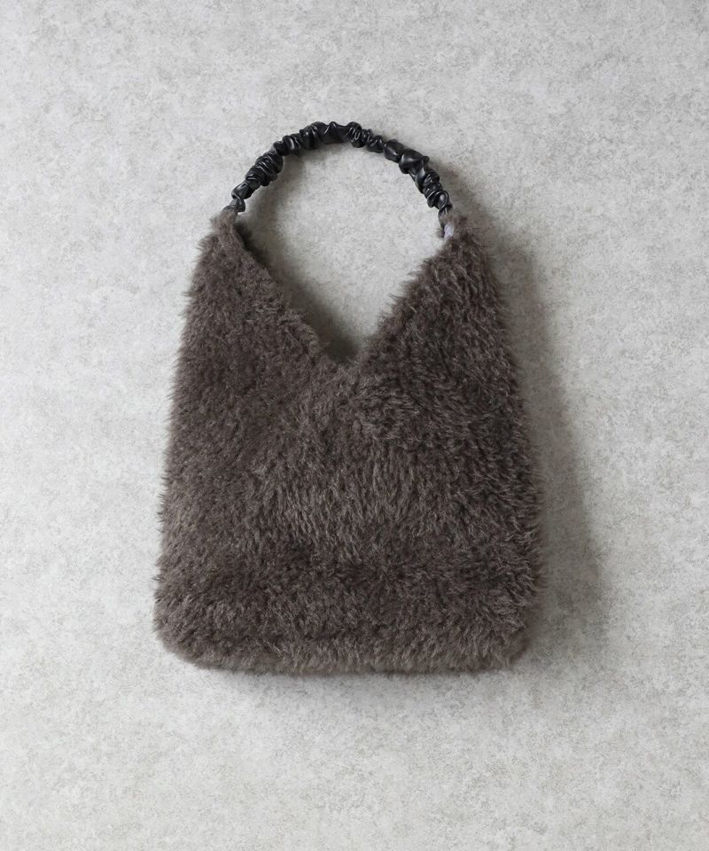 エコファーとギャザー加工されたPU素材の持ち手の異素材感が目を惹くトートバッグ。 肩掛けしやすい形で中身も見えにくいフォルムなので安心して使用できます。 カジュアルにもきれいなスタイルにも合わせられます。