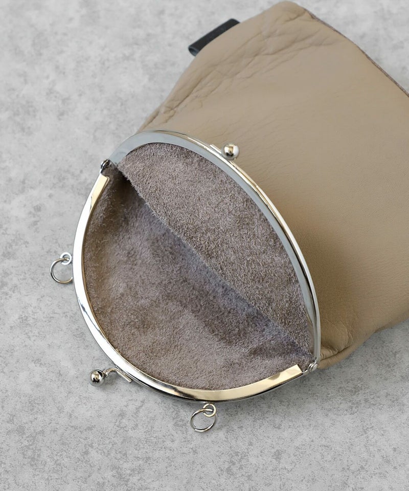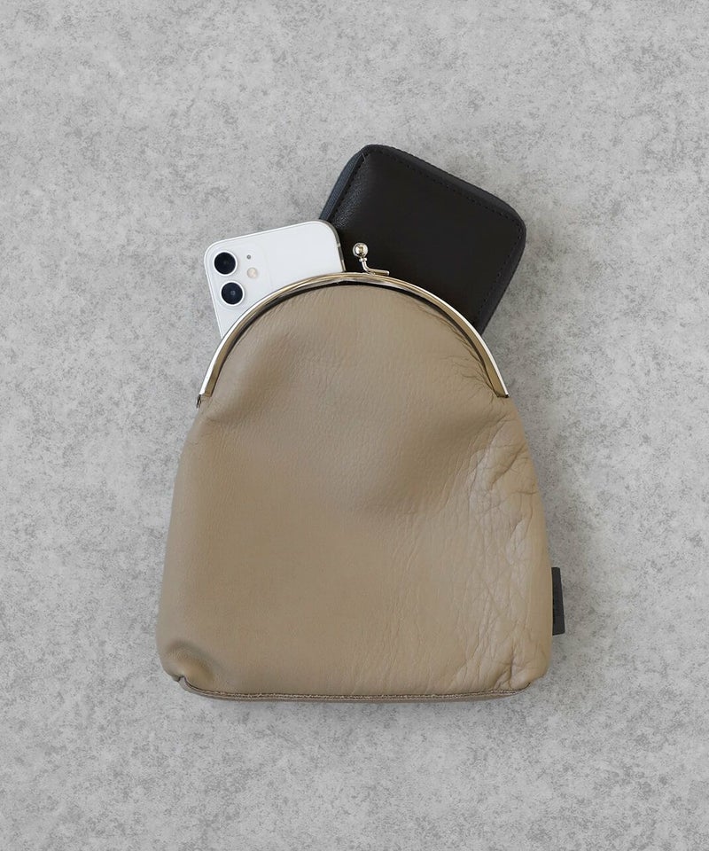 シンプルなデザインながら、がま口が可愛い牛革のショルダーバッグ。 まるで洗濯したてのシーツのような柔らかいレザーを使用し、柔らかさを活かしたデザインに落とし込んでいます。 一点取り入れるだけで少し上品で気分が変わるアイテムです。