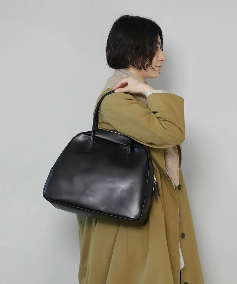 TIDEWAYオリジナルレザー「MOSS」。 独自のオイル調整により、厚みがありながらも柔らかくしなやかさを持ち合わせた革です。 職人の手で革1枚ずつを揉みほぐし、より深いツヤ感を出したこだわりの一品です。 無駄な装飾などをそぎ落とし、普遍的なデザインとして経年変化を楽しみながら長く愛用していただけます。 Lサイズは、容量たっぶりの大きさ。マチがしっかりとしていて自立するので、荷物の出し入れのしやすさもポイントです。 S、M、Lのサイズを展開しています。用途やシーンに応じてお好きな形とサイズをお選びください。