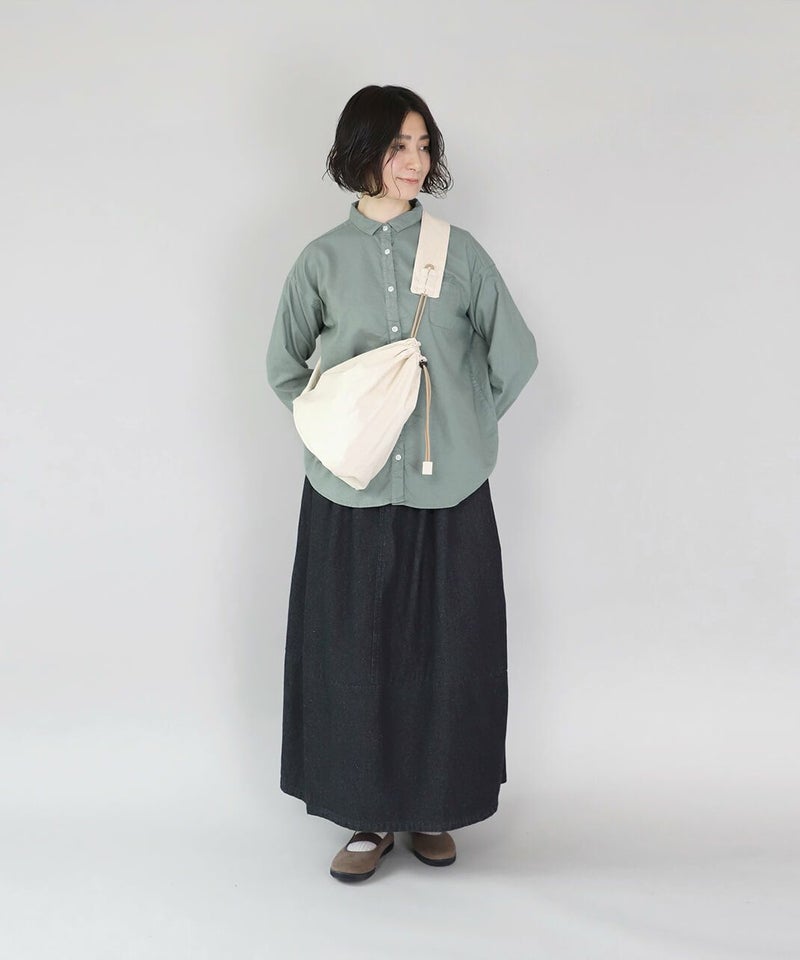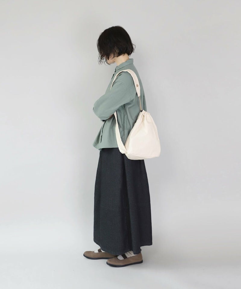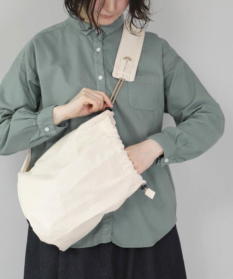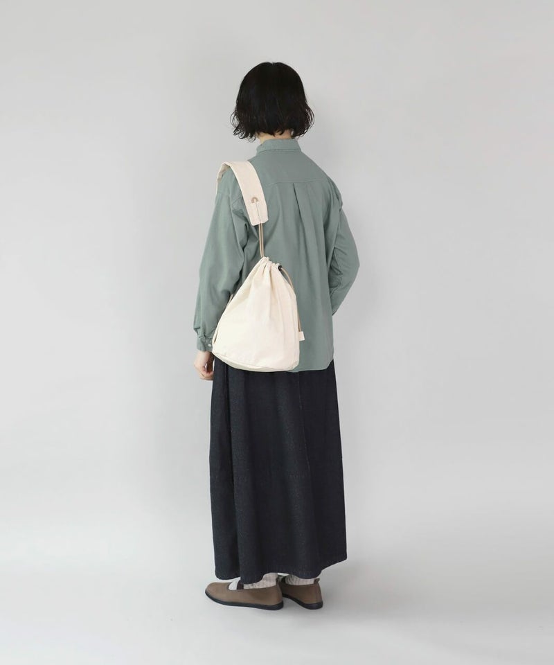 巾着型の個性的なフォルムがコーディネートのアクセントになります。