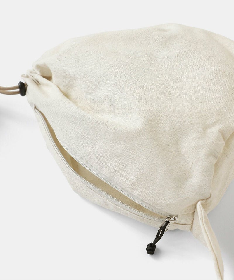 巾着タイプの開口部のほかにサイドファスナーがついているので荷物の出し入れがしやすくなっています。