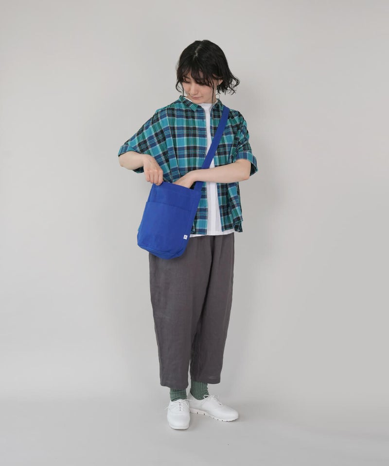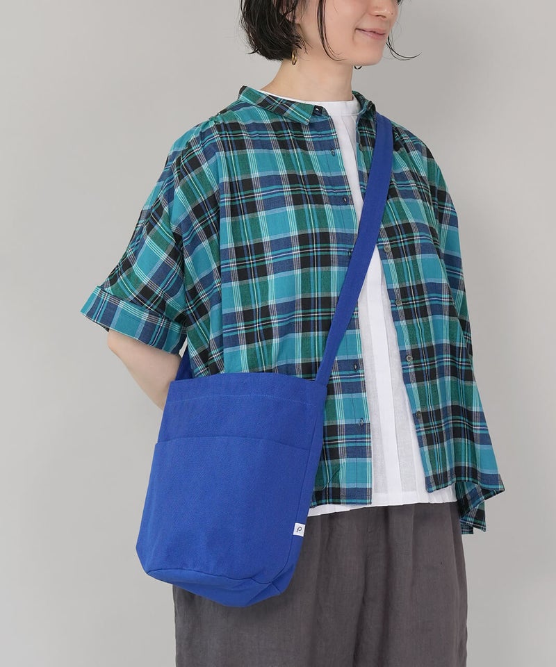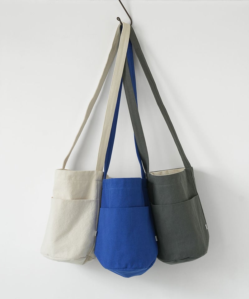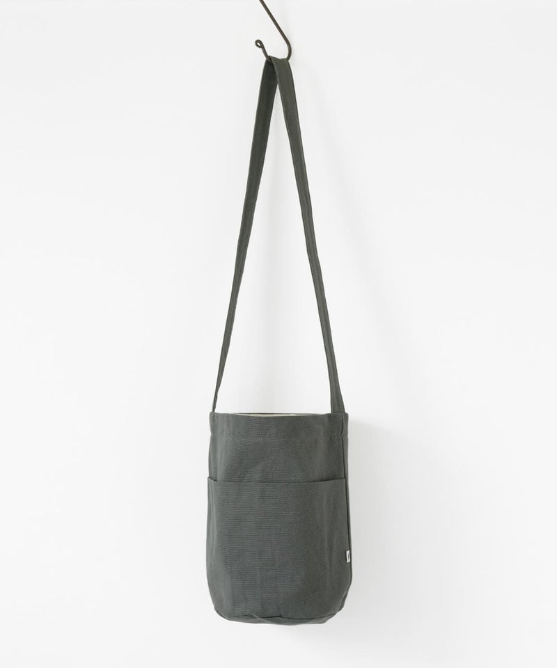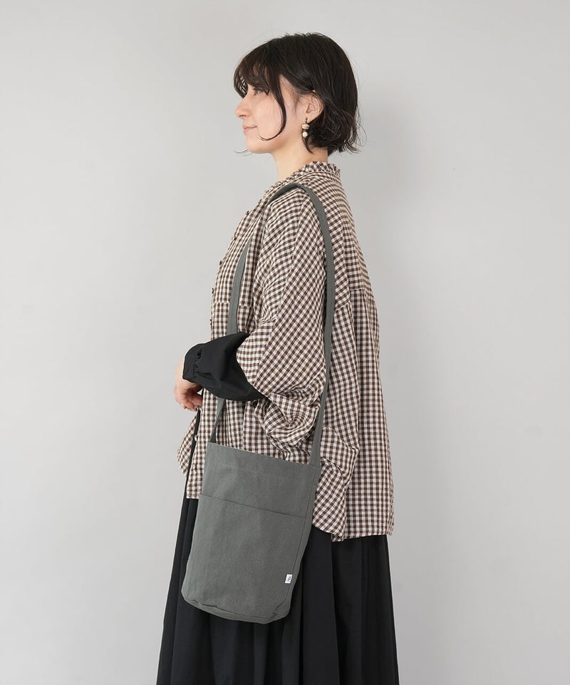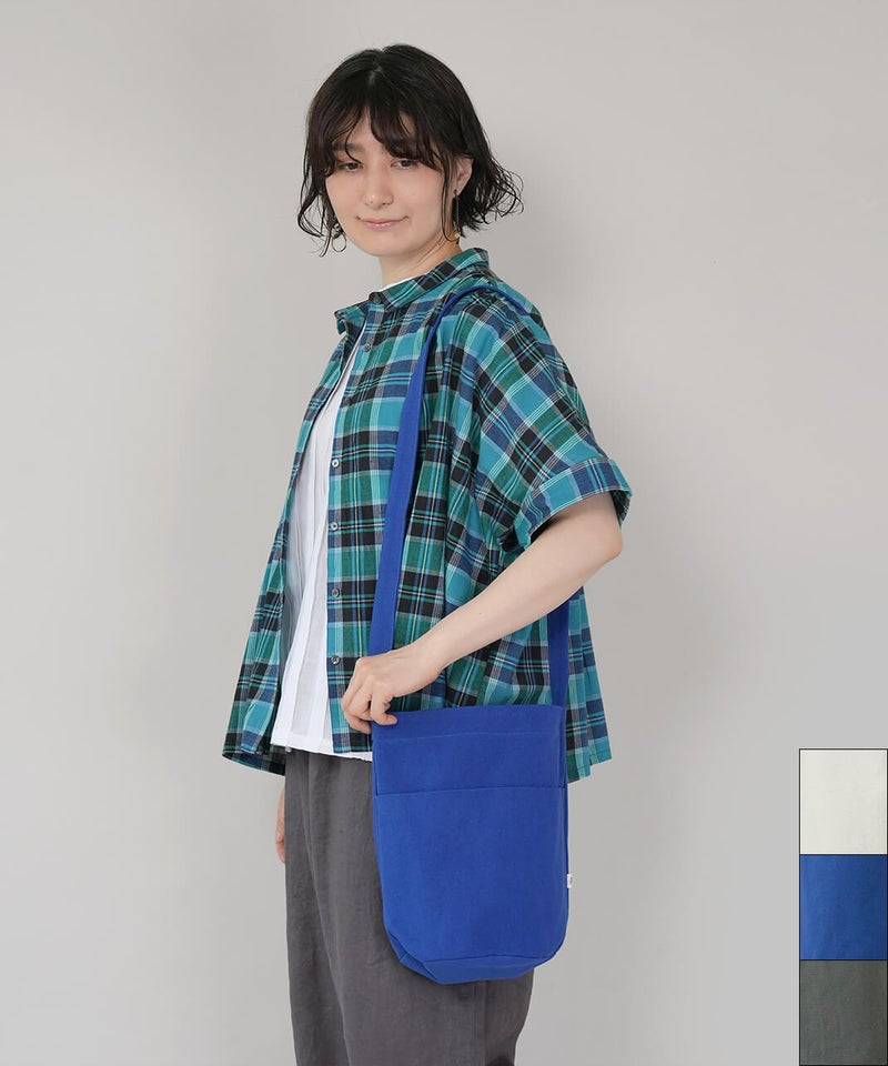 日常に溶け込む、キャンバスショルダーバッグ。斜め掛けが出来る長さのショルダータイプで、すっと日常に溶け込んでくれるシンプルな形です。使用している12oz帆布は、ほどよいやわらかさと強度を持ちつつ、軽いのが特徴です。マチをたっぷりと取っているため、コンパクトな見た目ながら収納力も備えています。