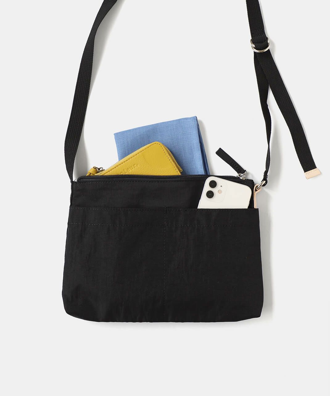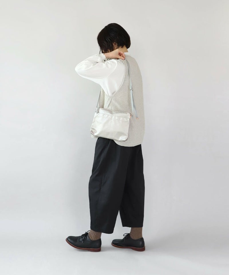 ナイロン素材なので汚れがつきにくく、お手入れが苦手な方にもおすすめです。 軽いのでバッグの中に忍ばせてポーチとして活用も。必要な時だけサッと取り出して、ポーチからサコッシュに早変わりなんて使い方もできます。