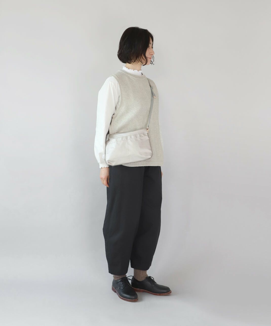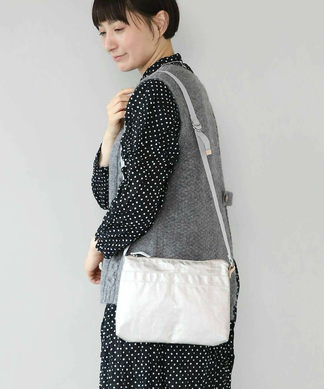 ポイントでヌメ革をあしらっており、気軽なのに安っぽくない、毎日使える定番バッグ。肩や首に負担をかけにくく、水や雨、汗に濡れても乾きやすいので普段使いはもちろん、お散歩やアウトドアシーンでも重宝するアイテムです。