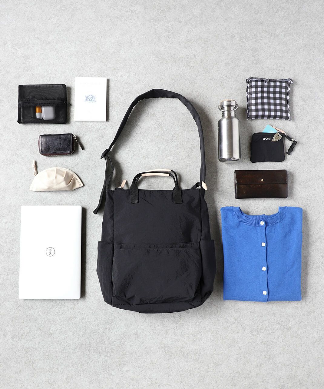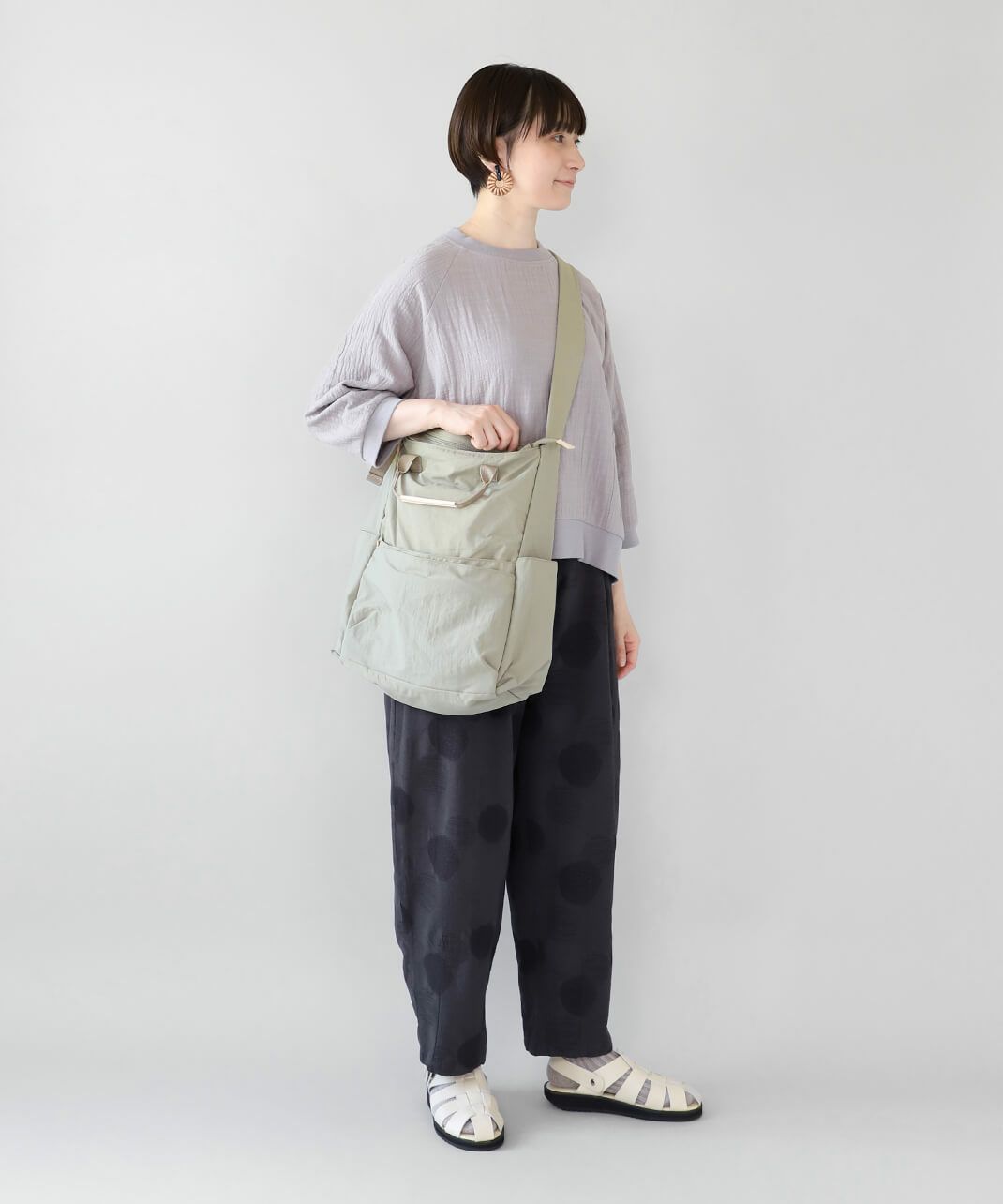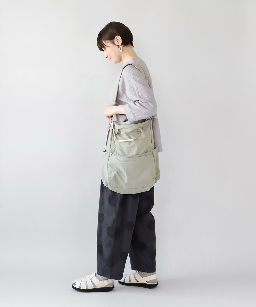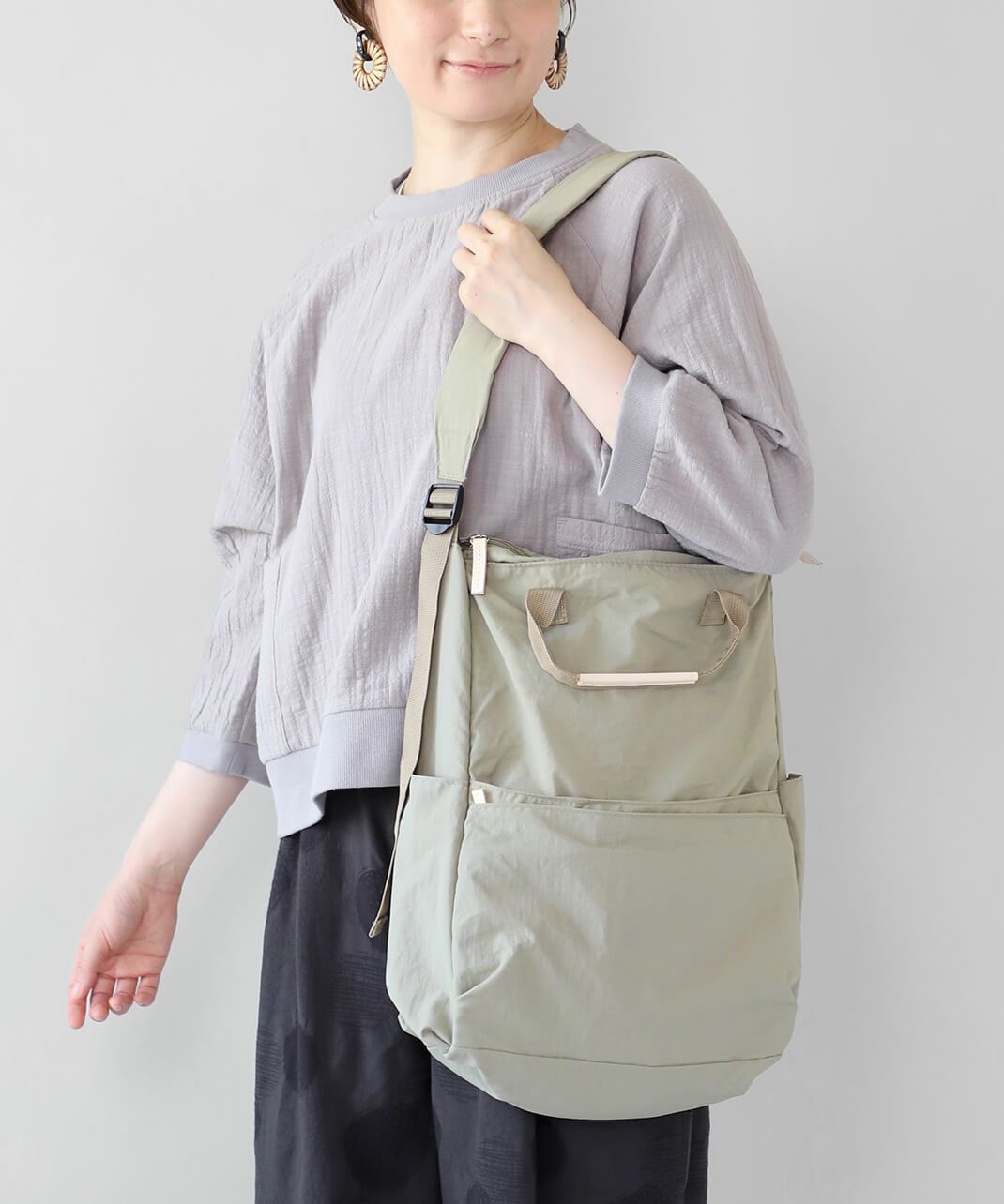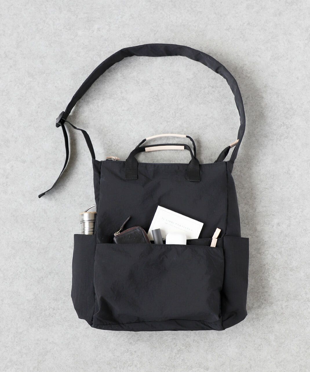 柔らかくさらっとしたナイロン素材を使用しており、バッグ自体が軽いのが特徴です。