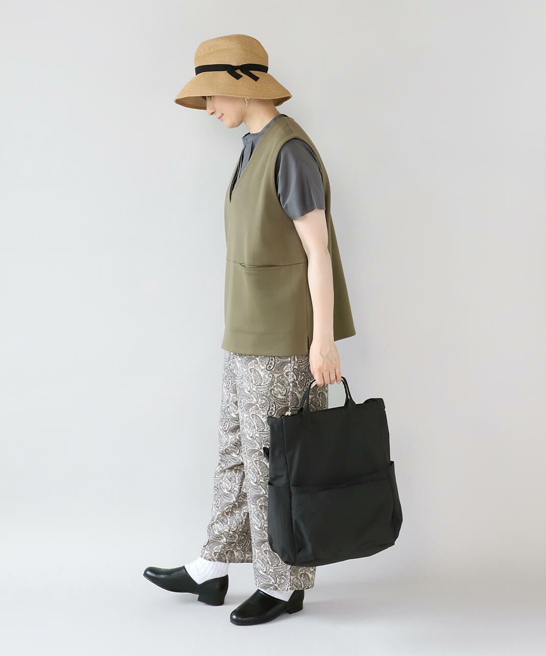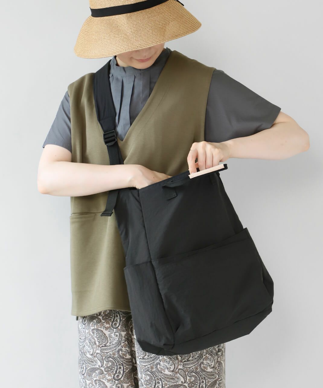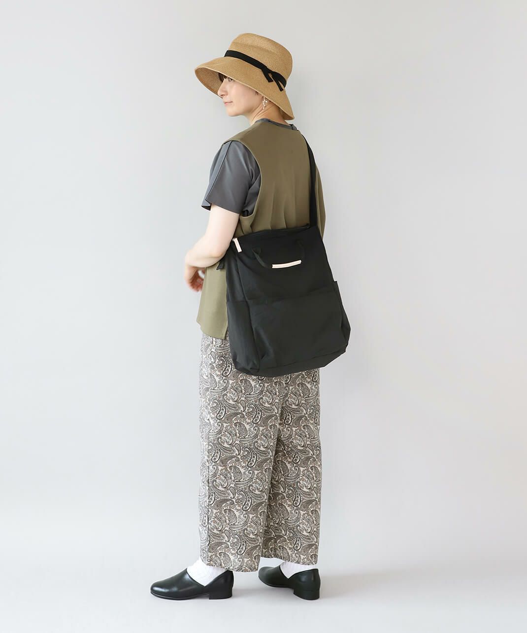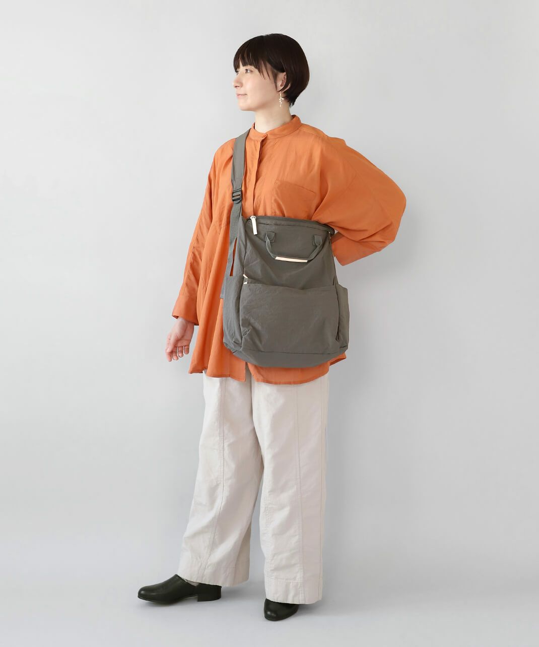 持ち手も付いて、トートバッグとしても使える仕様で、コーディネートやシーンに合わせて使い分けできます。